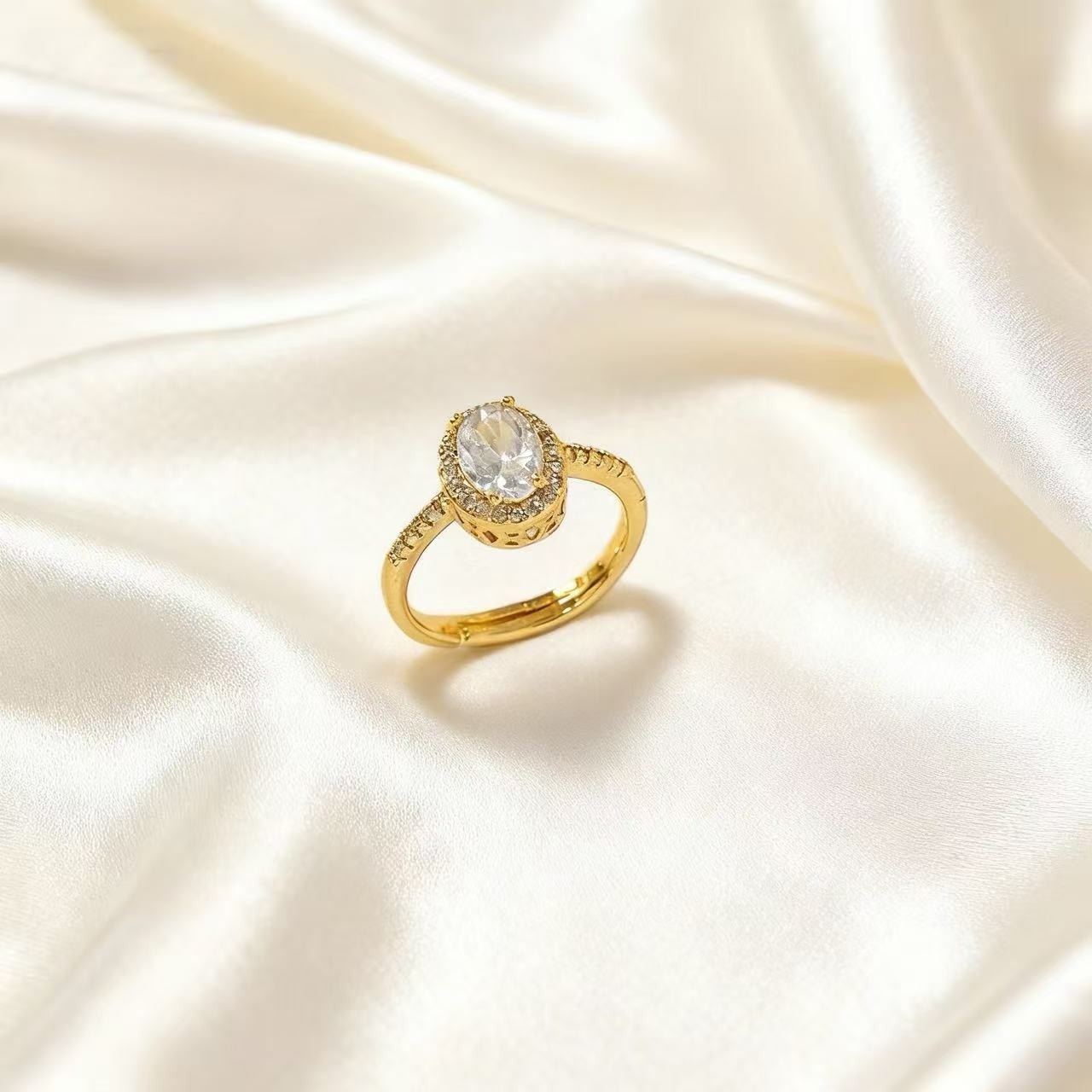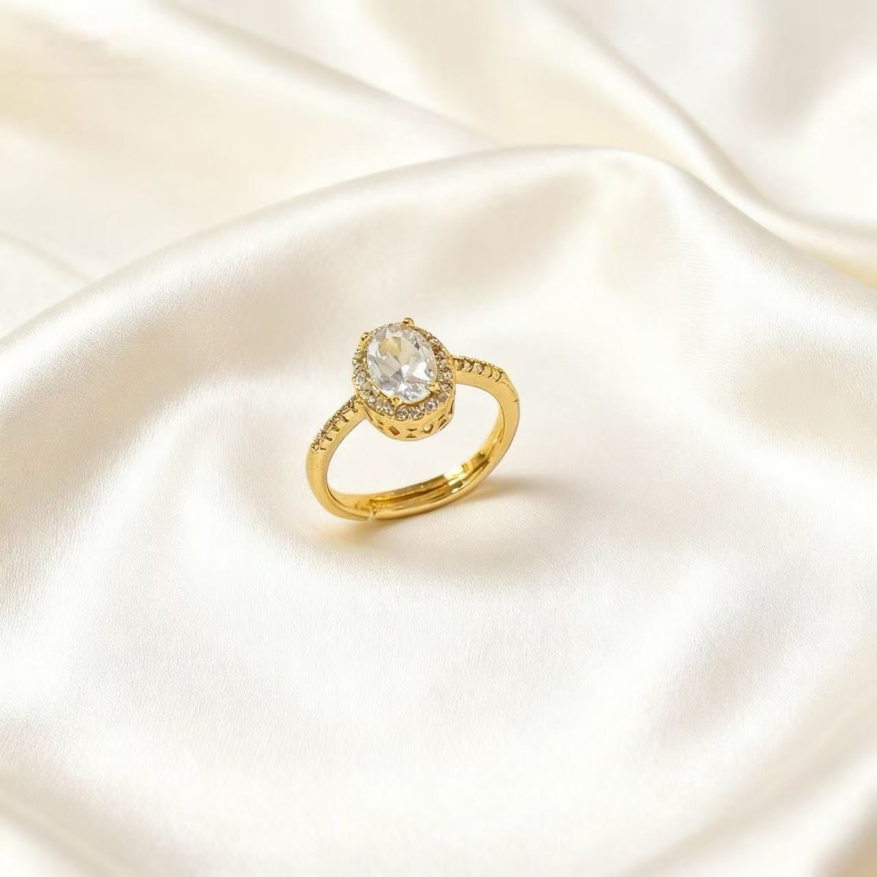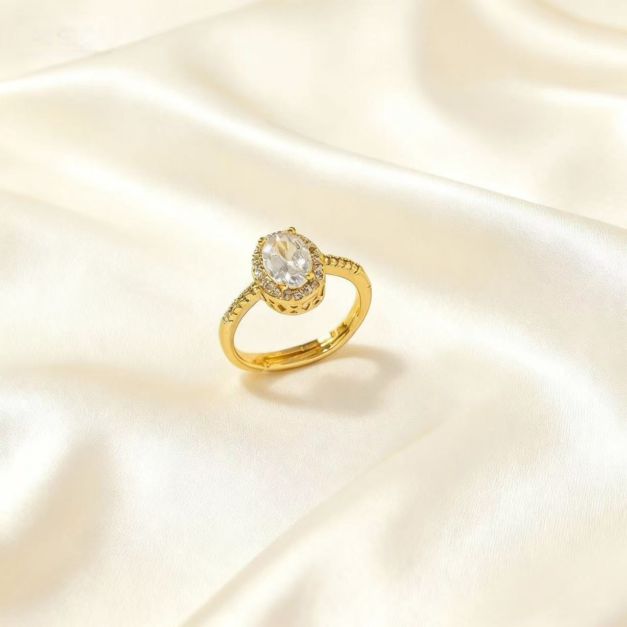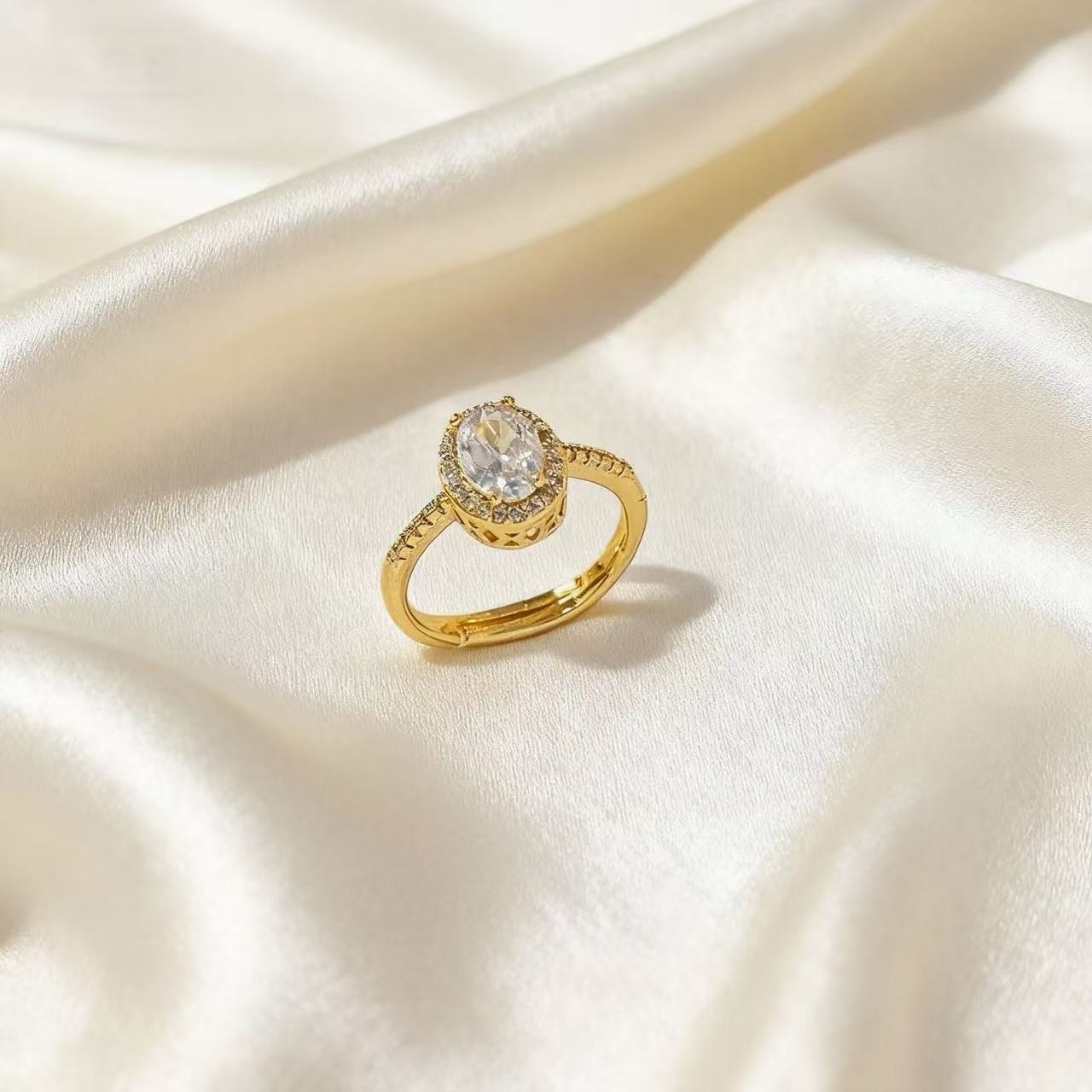 轻奢设计感鸽子蛋镶钻开口戒指高级感气质精致百搭时尚可调节指环