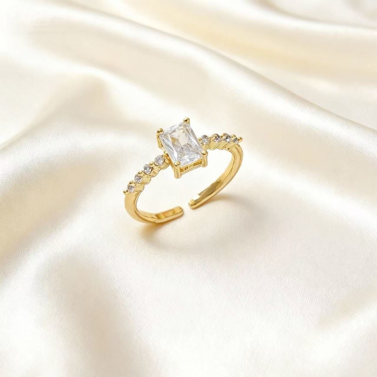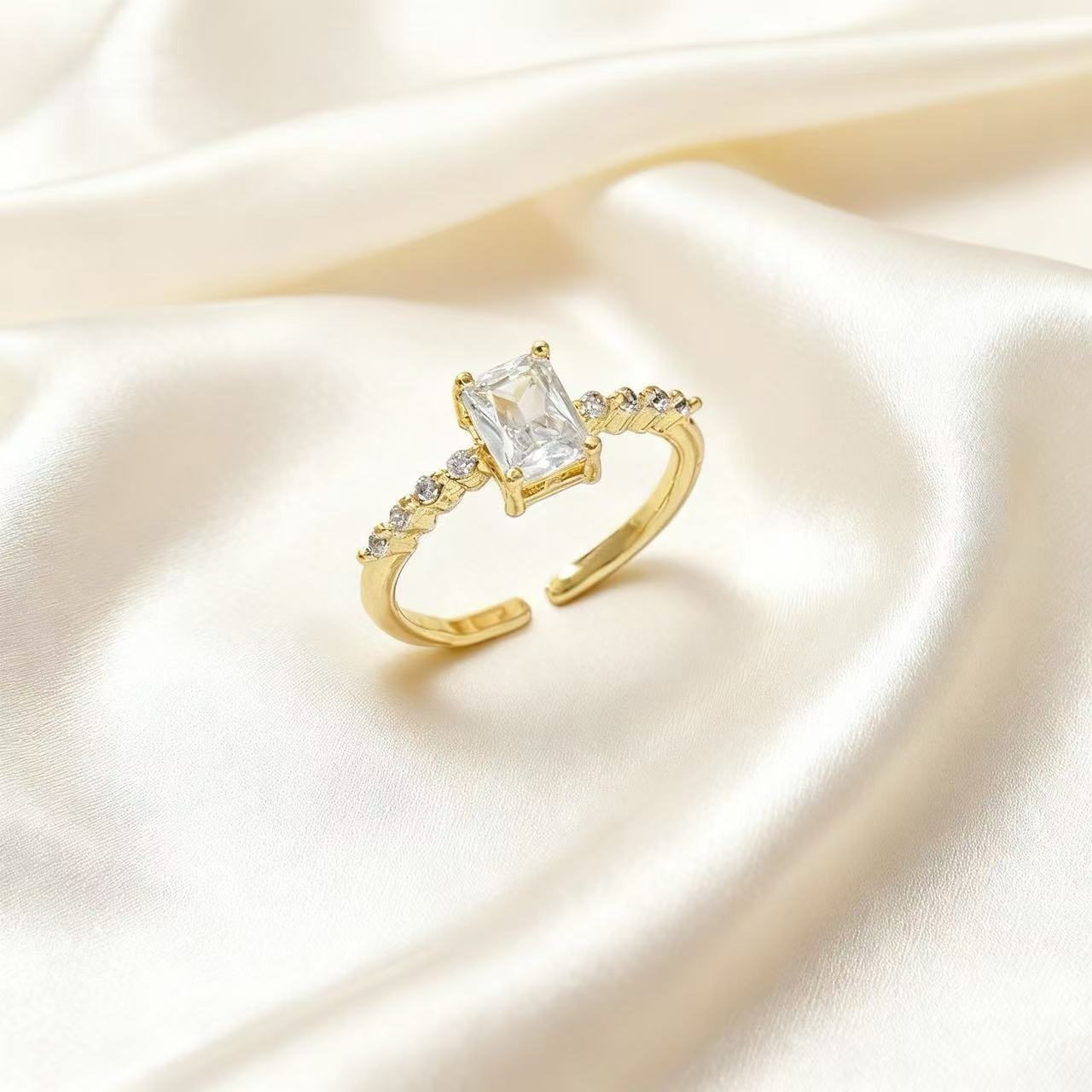 高级感切面方钻开口戒指轻奢高级感小众设计气质可调节食指戒指环
