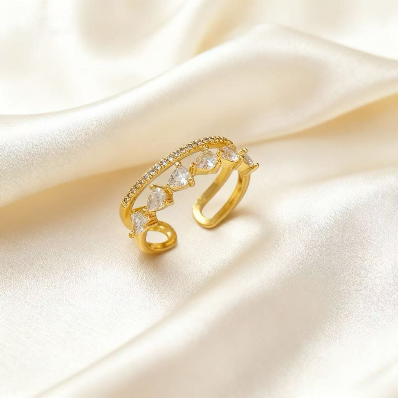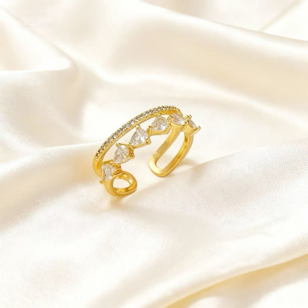法式双层锆石戒指精致时尚小众高级感不掉色设计感开口可调节指环