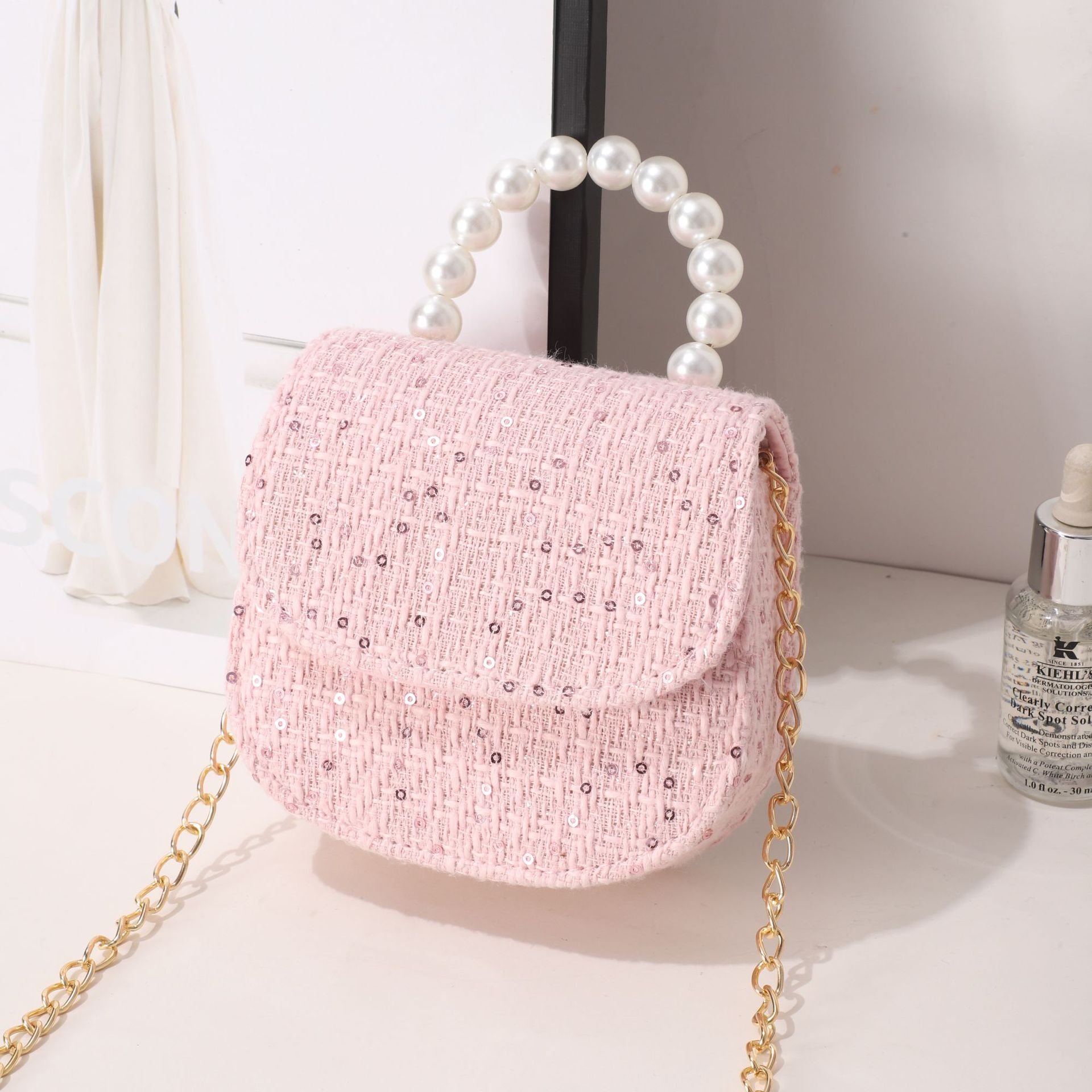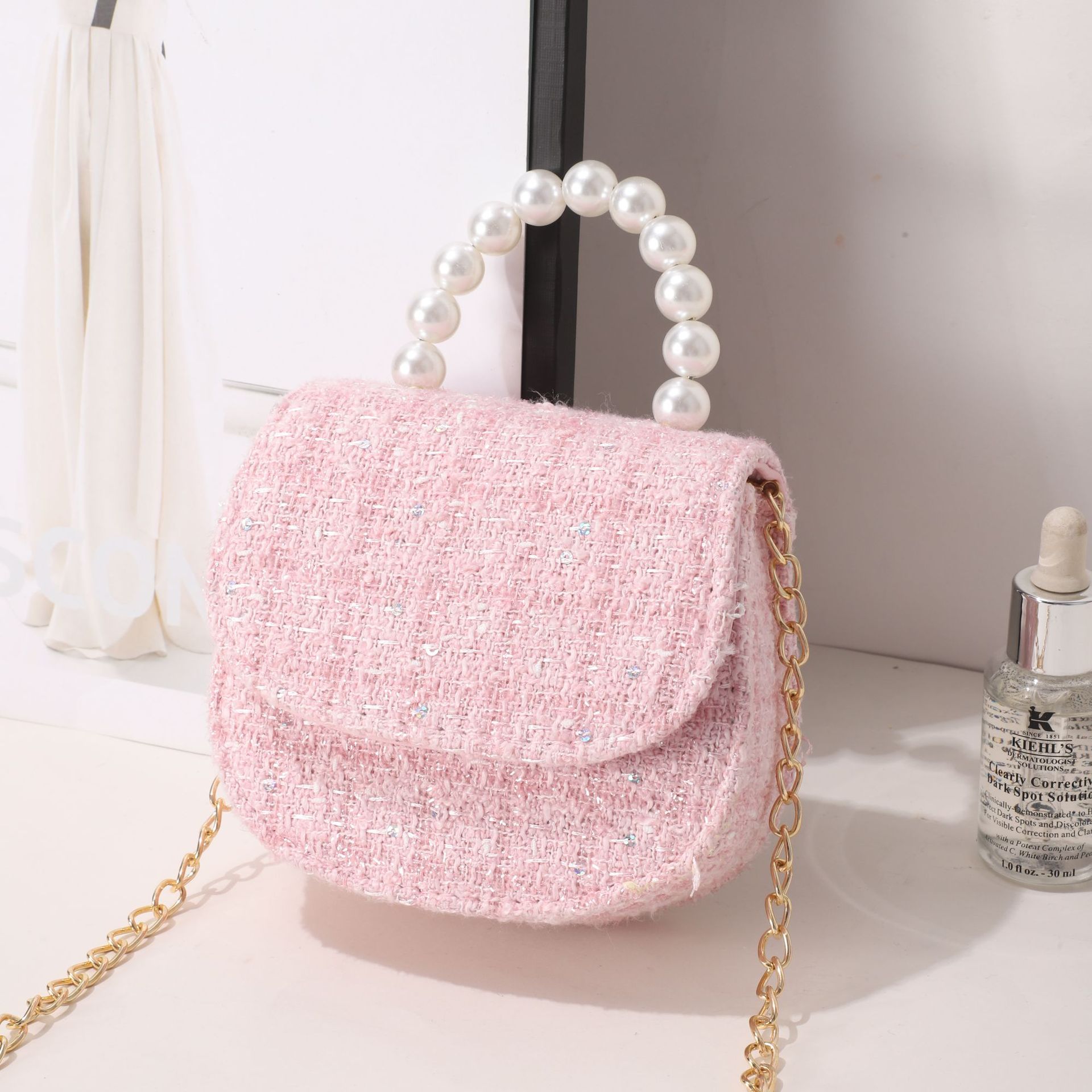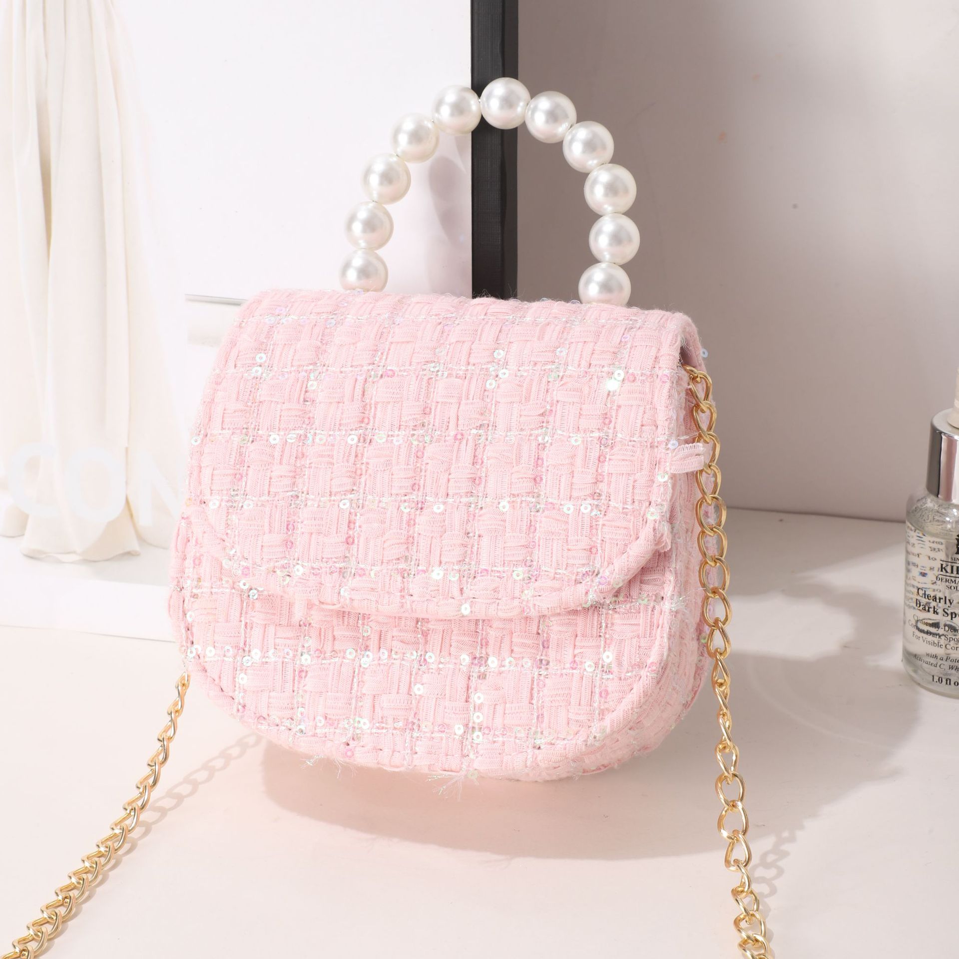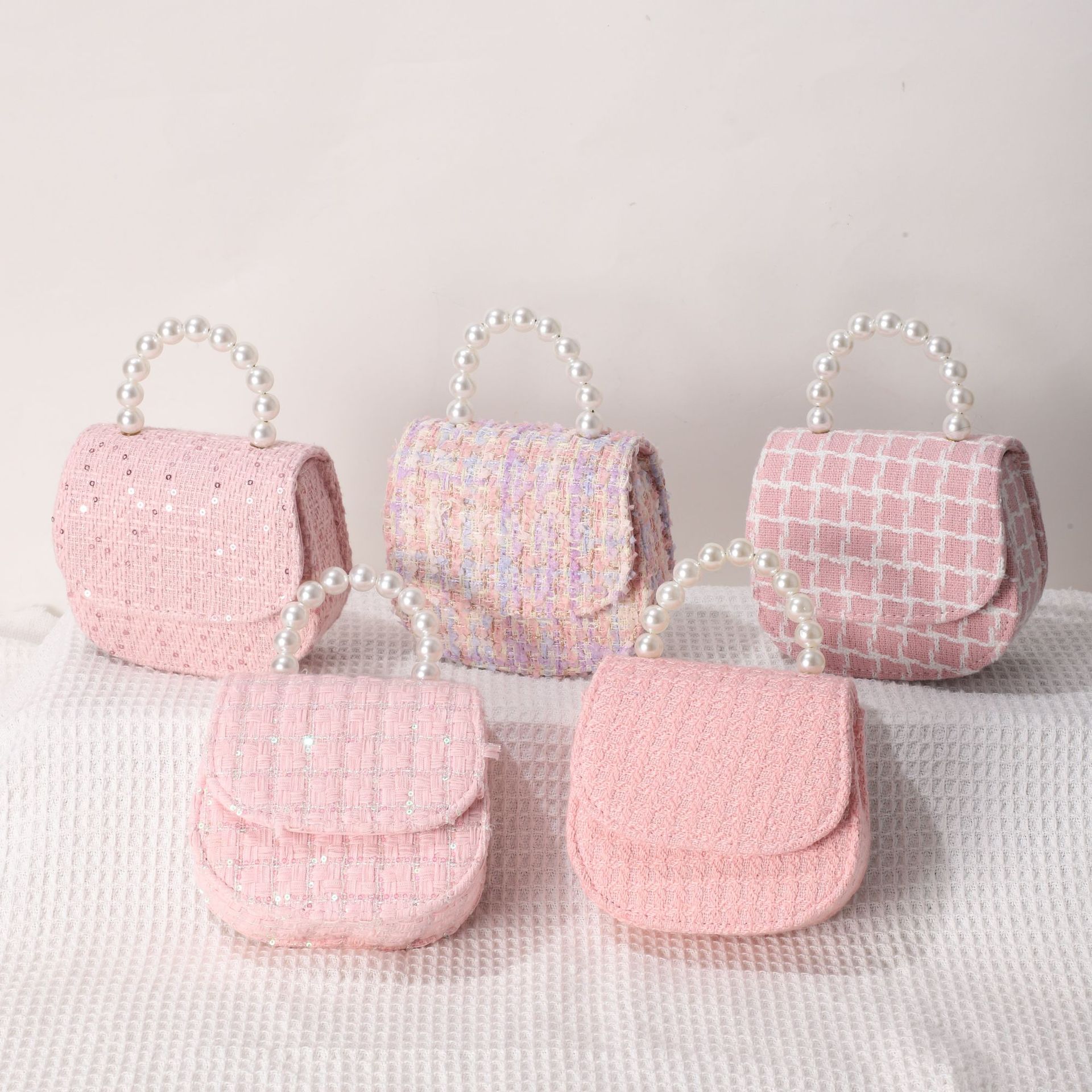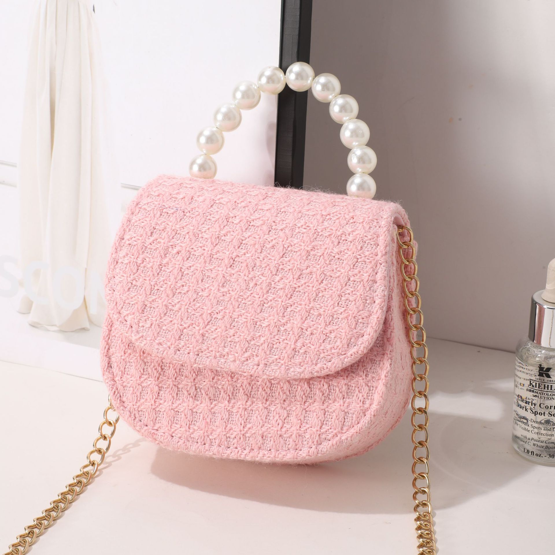 女式包包小皮包秋冬格子小香风女士斜挎包小众设计珍珠手提小方包
