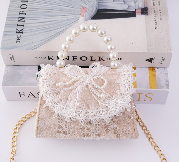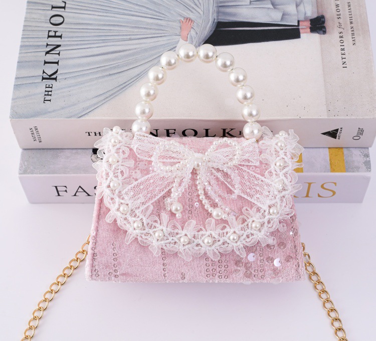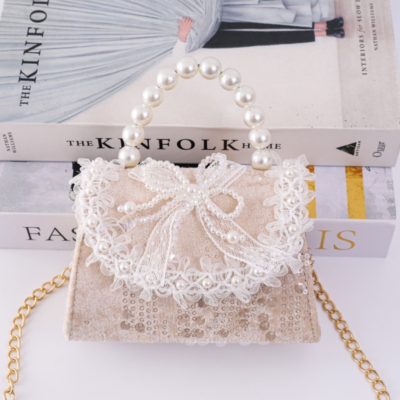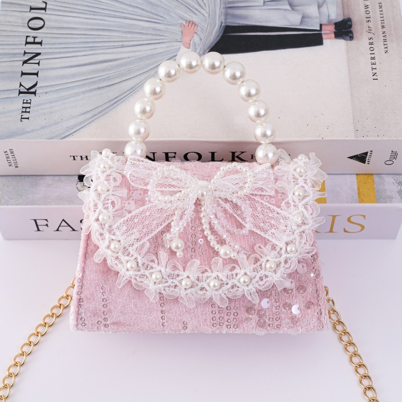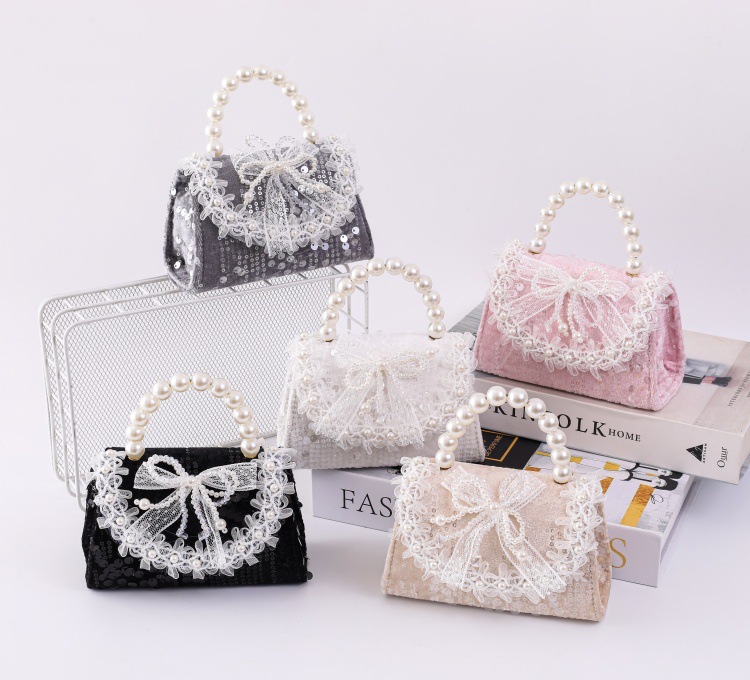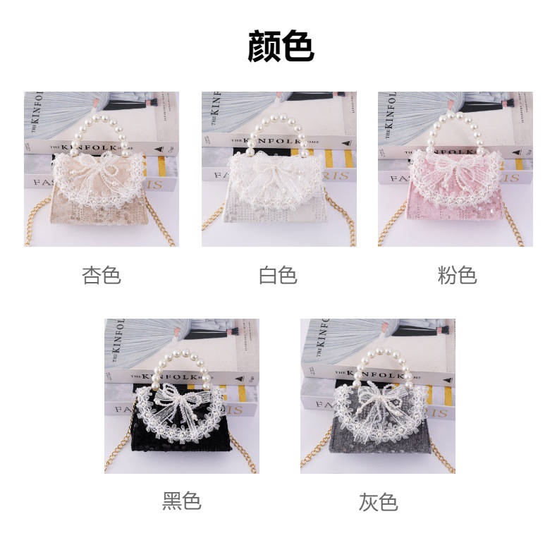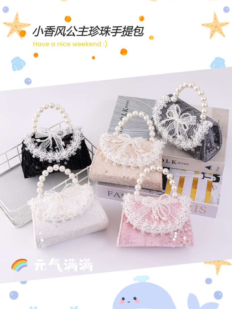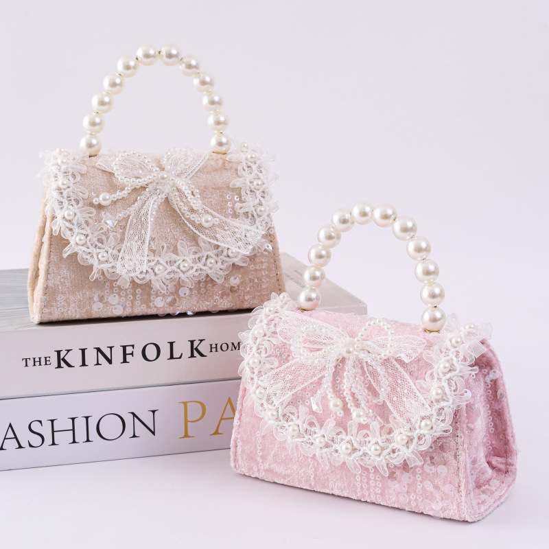 女孩洋气珍珠手提包2026新款小香风儿童零钱包甜美蝴蝶结斜挎包包