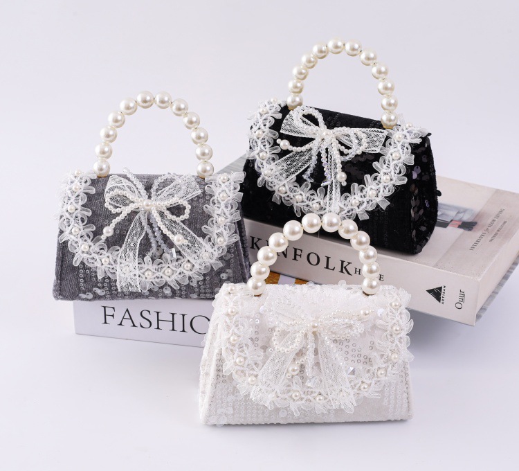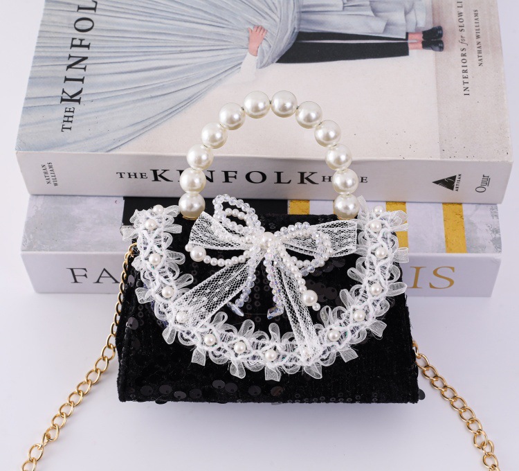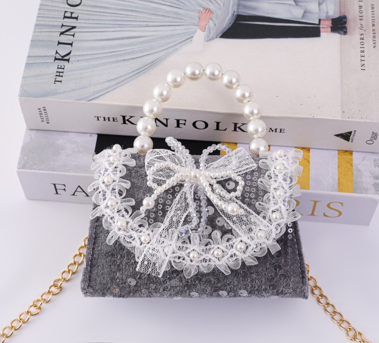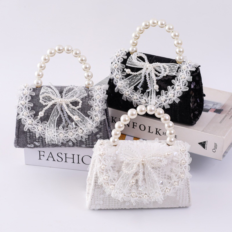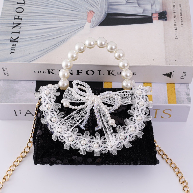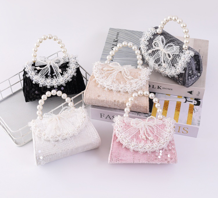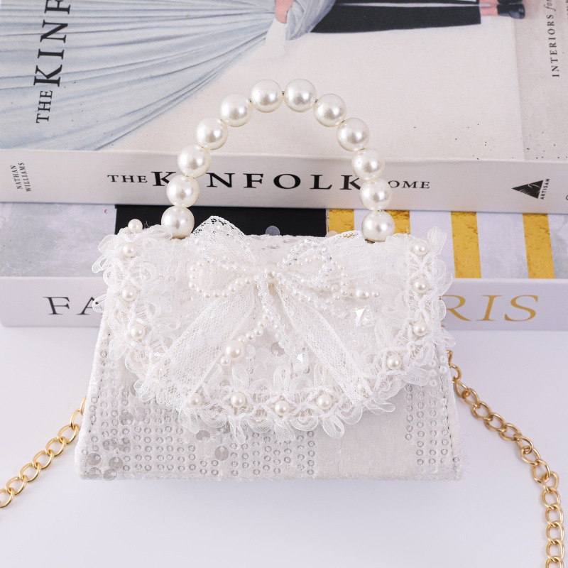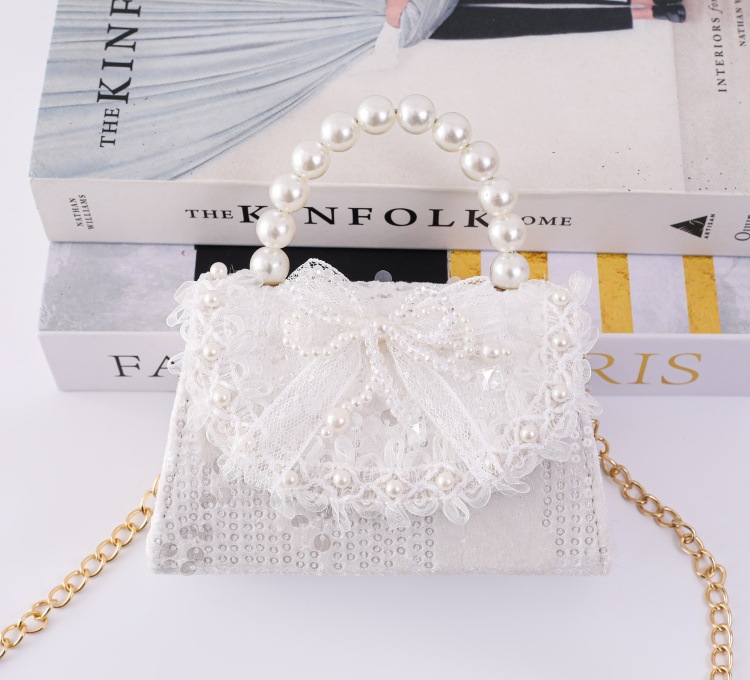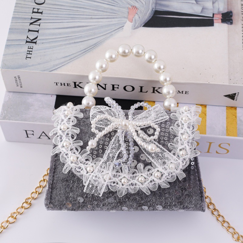 女孩洋气珍珠手提包2026新款小香风儿童零钱包甜美蝴蝶结斜挎包包