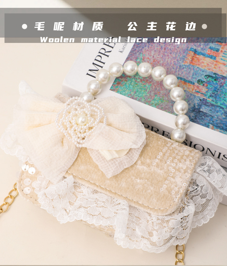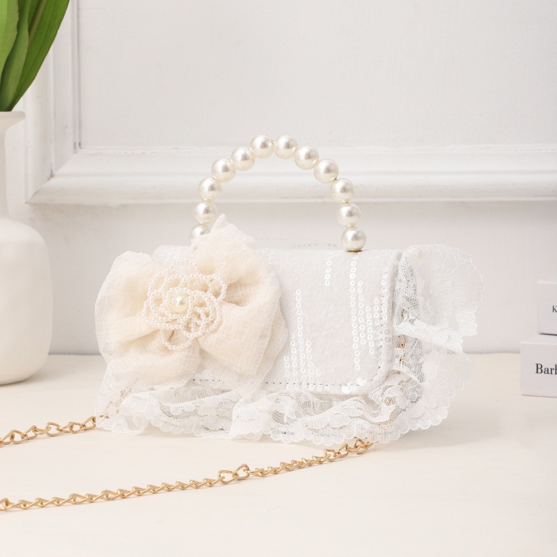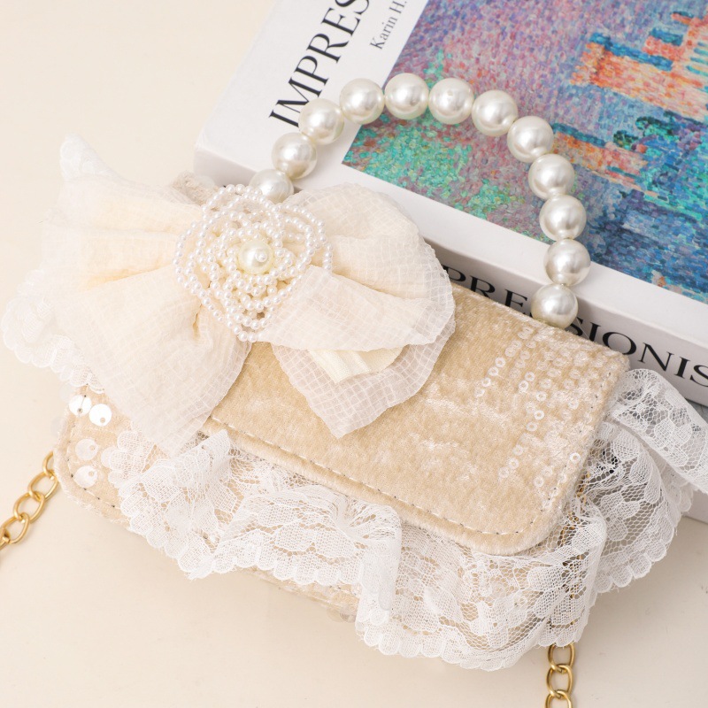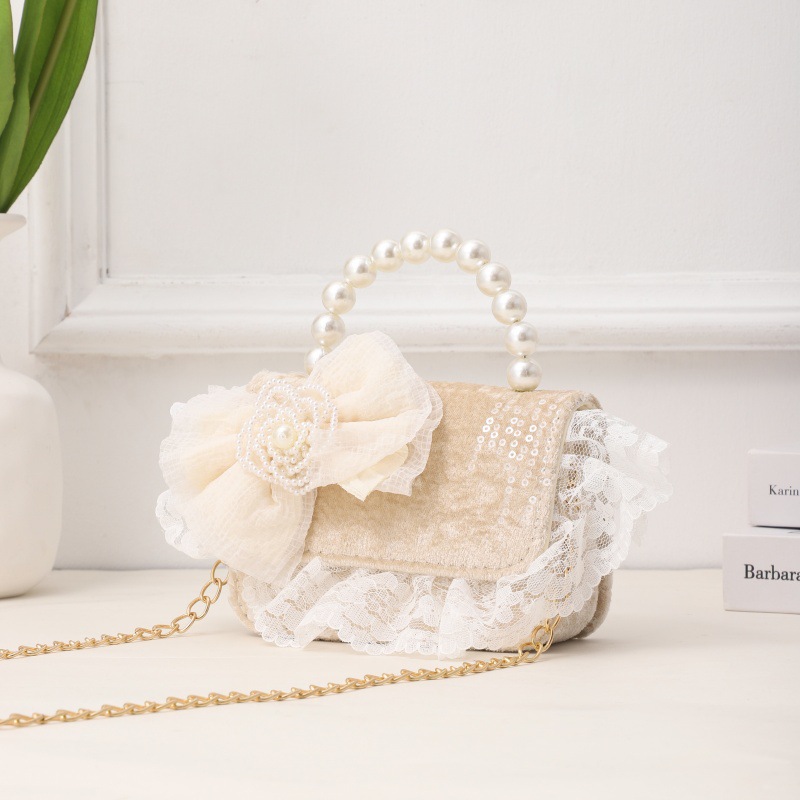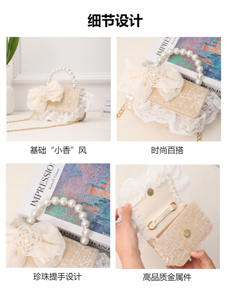新款时尚蕾丝花边香风包珍珠手提斜挎包可爱蝴蝶结单肩公主包批发