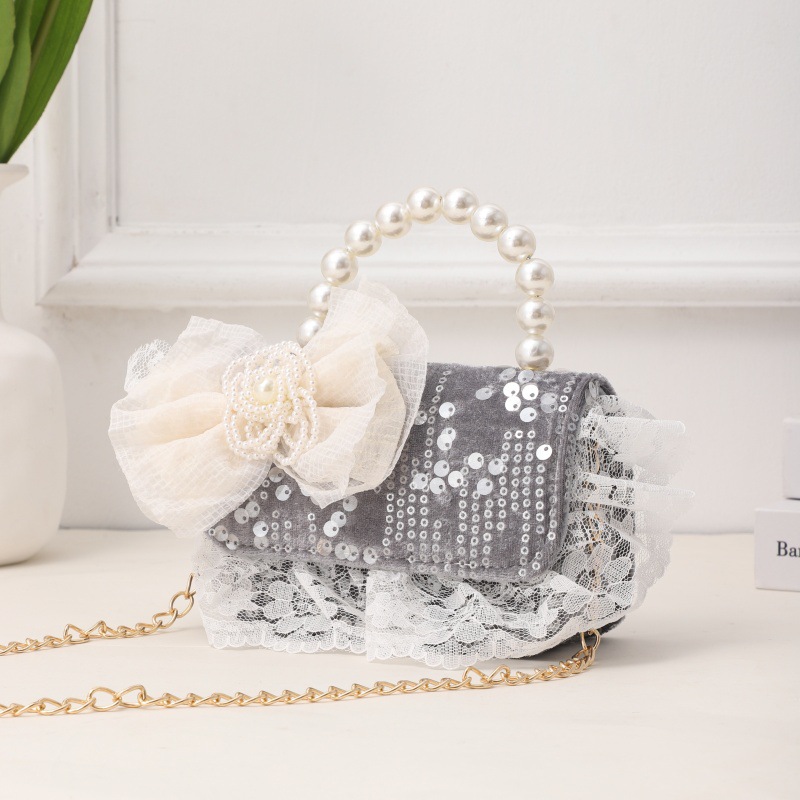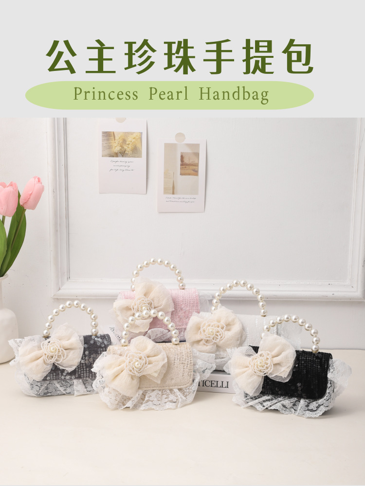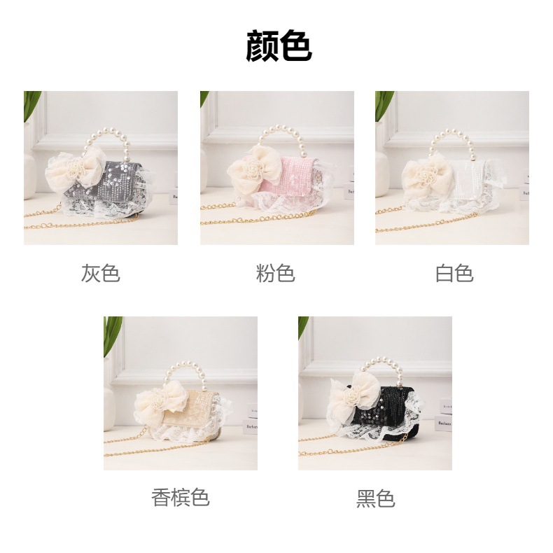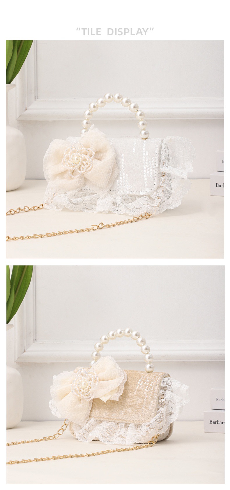 新款时尚蕾丝花边香风包珍珠手提斜挎包可爱蝴蝶结单肩公主包批发