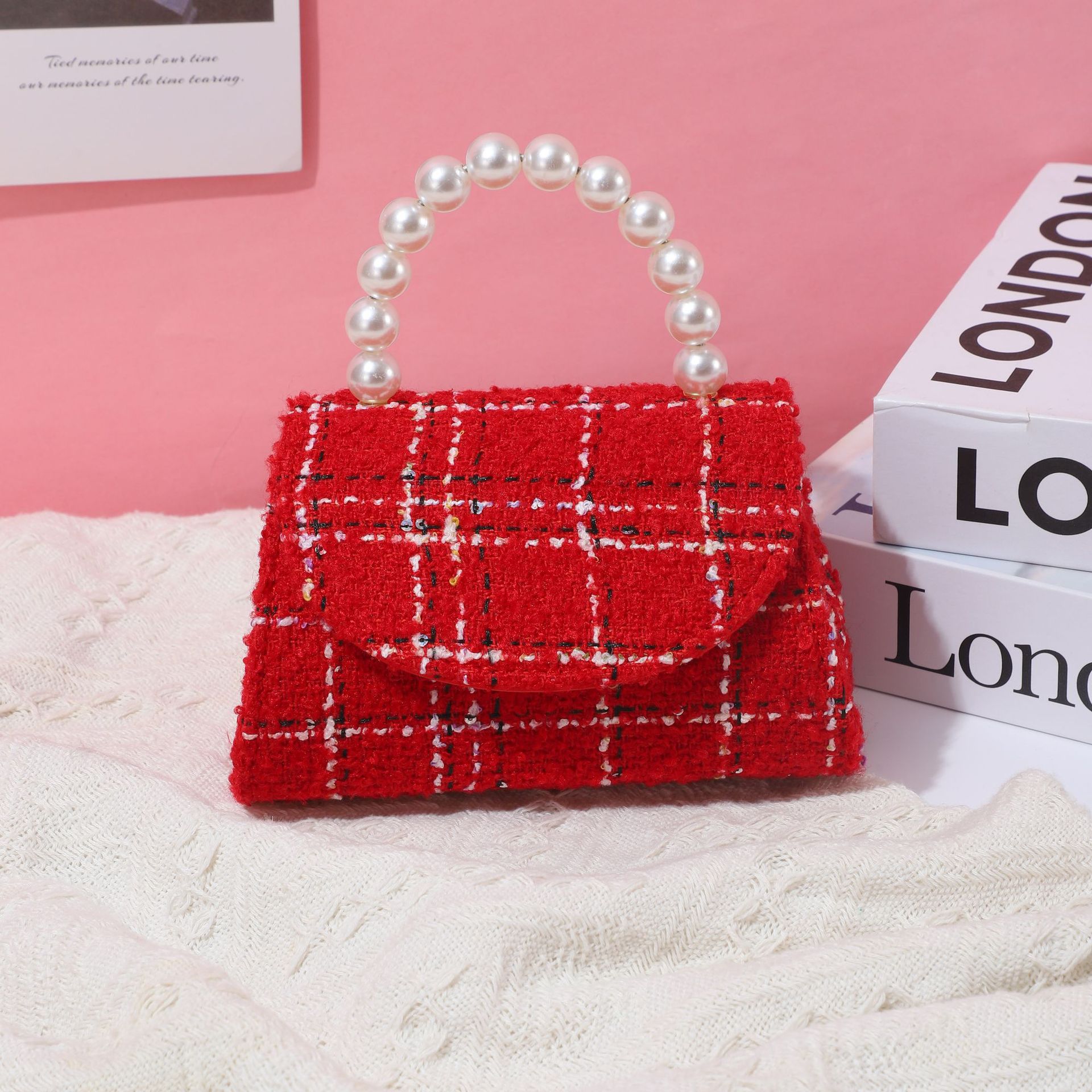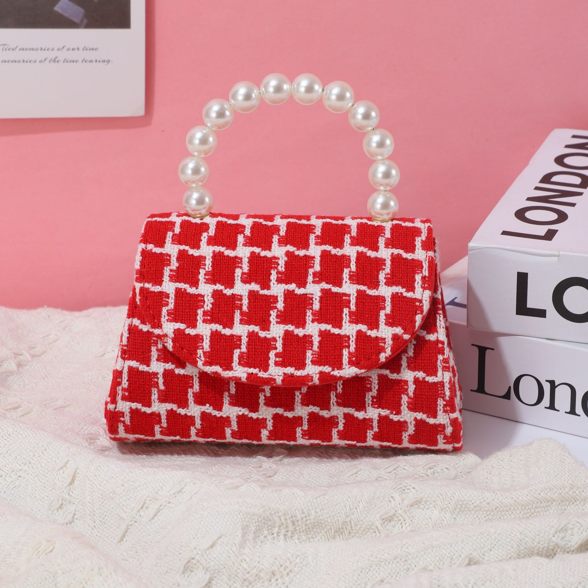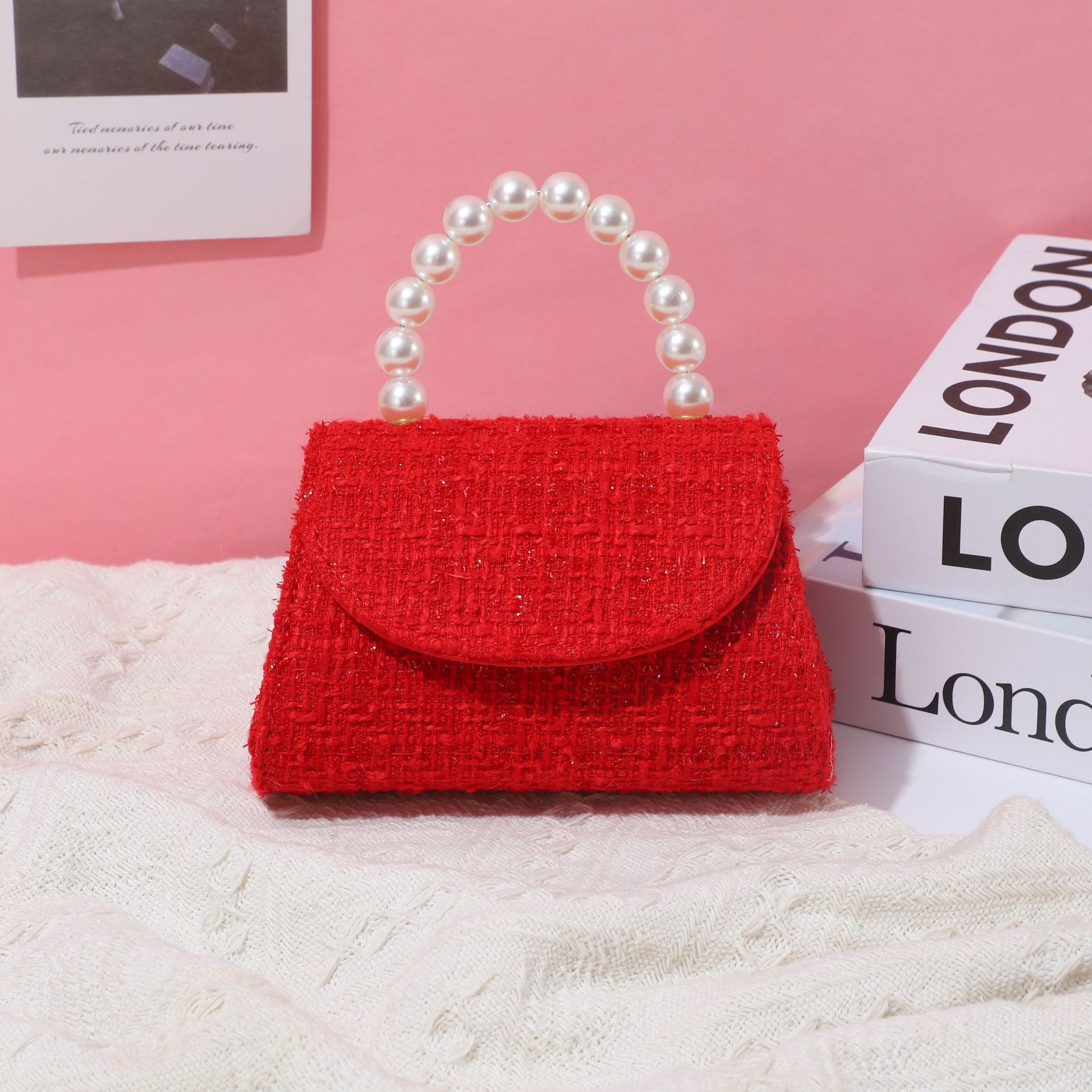 秋冬新款儿童公主包红色小方包女童小香风手提包珍珠手拎零钱包