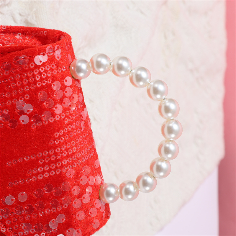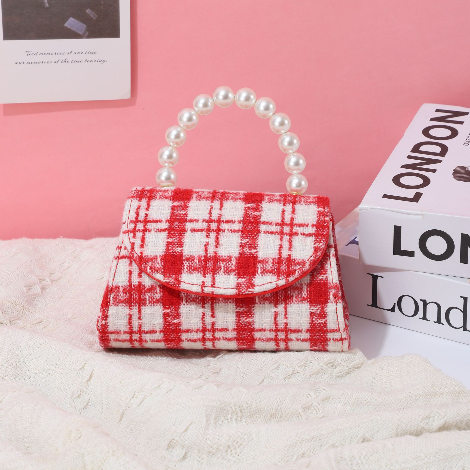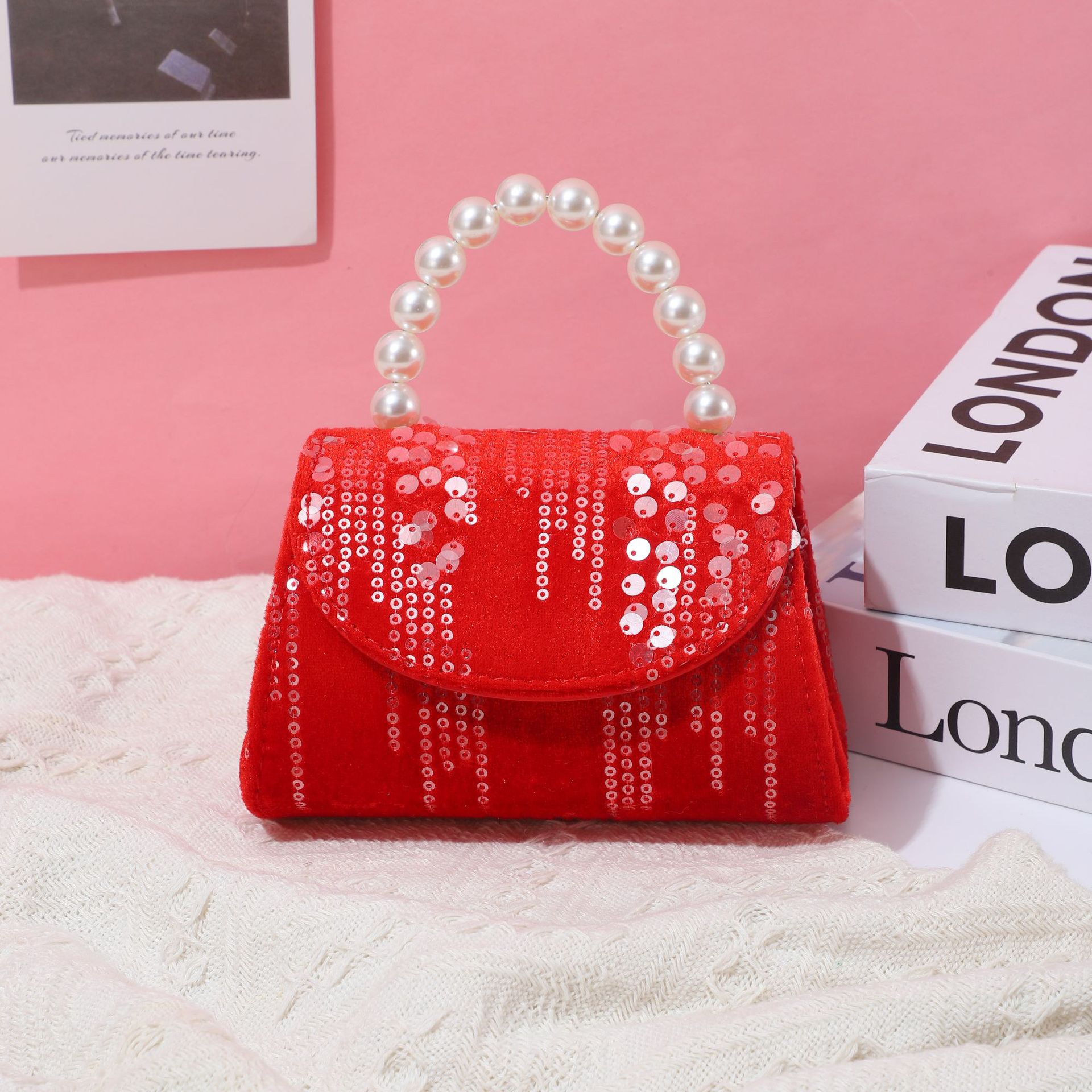 秋冬新款儿童公主包红色小方包女童小香风手提包珍珠手拎零钱包