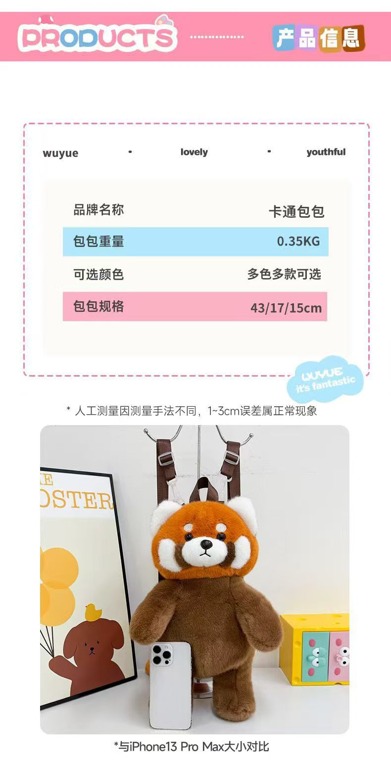 卡通毛绒动物挎包熊猫浣熊豹子老虎单肩包动物园纪念品新款定LOGO