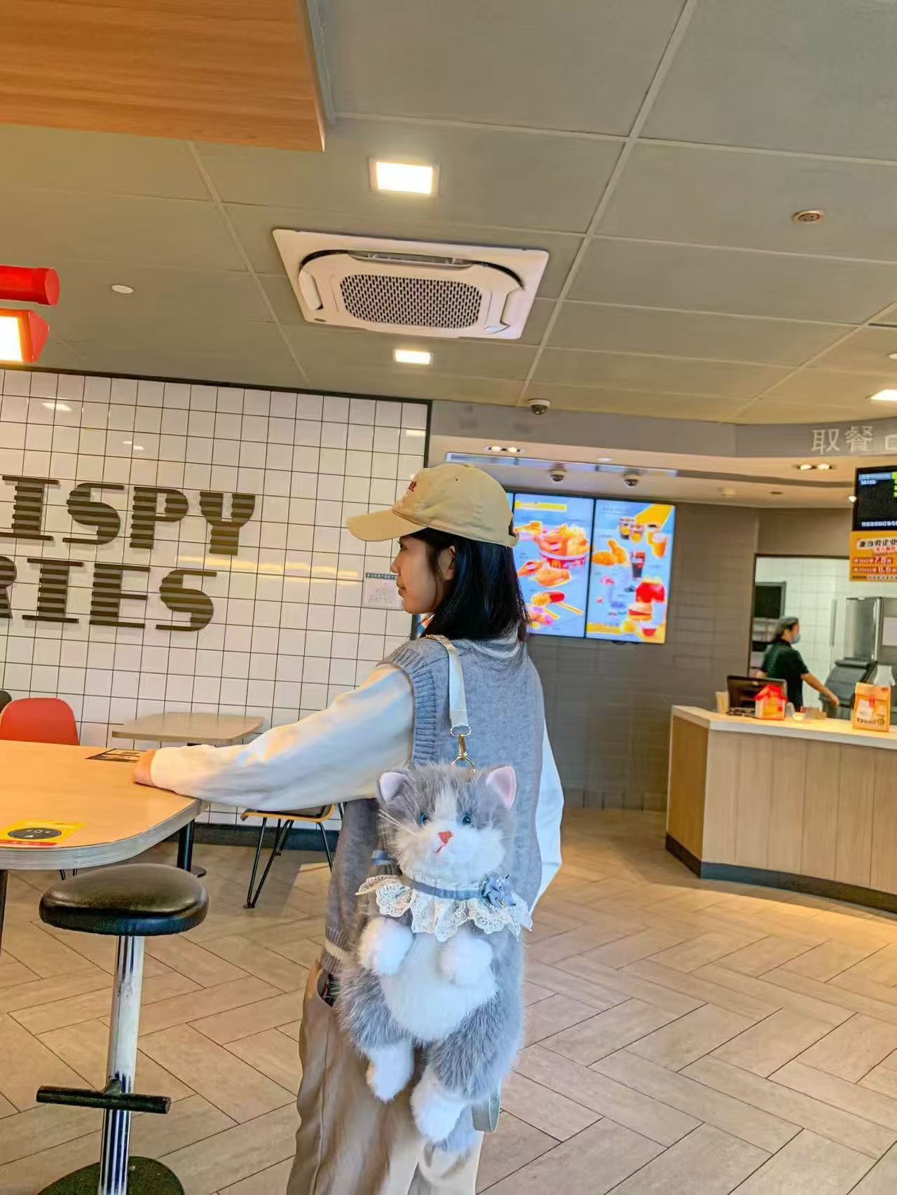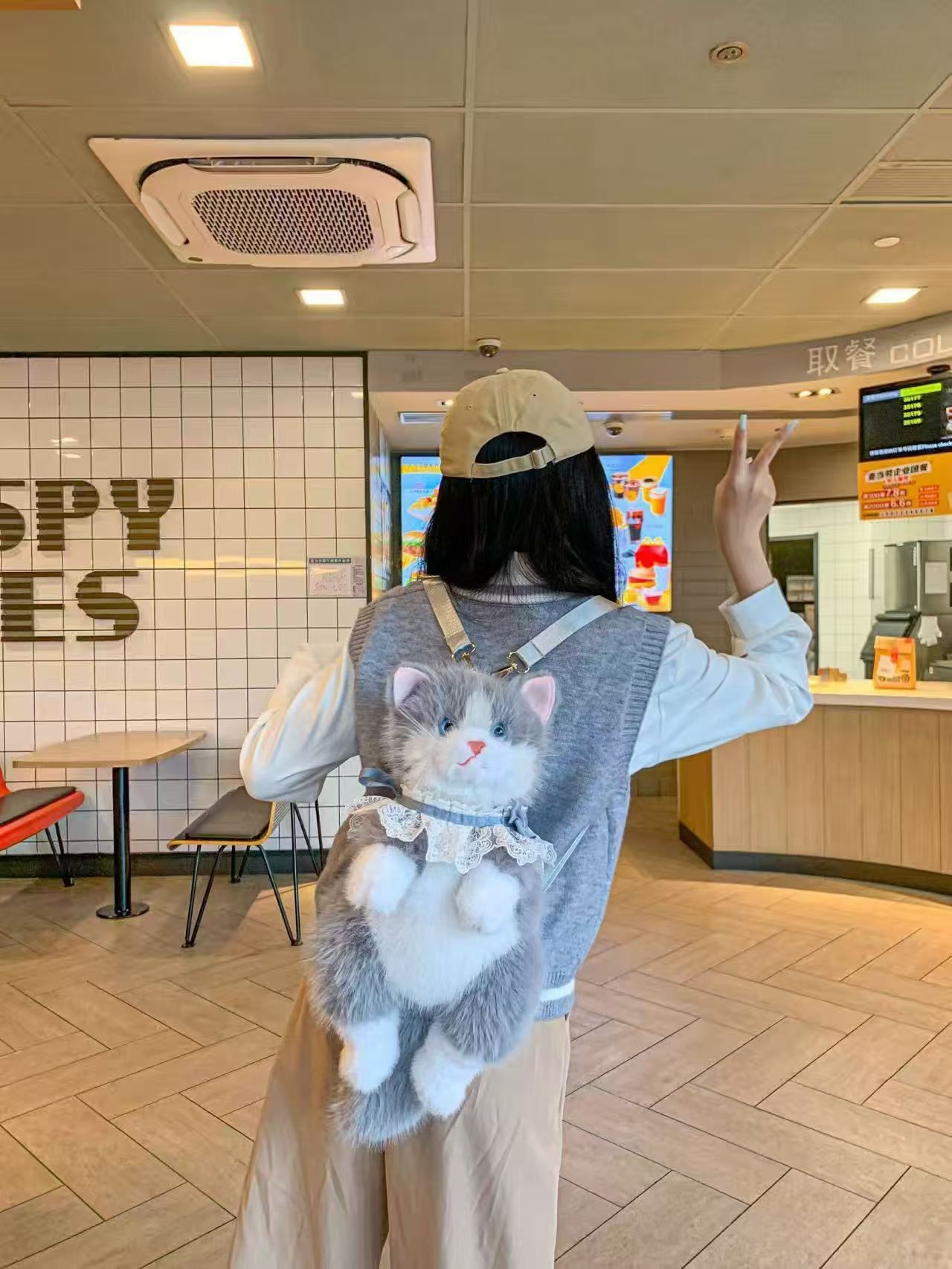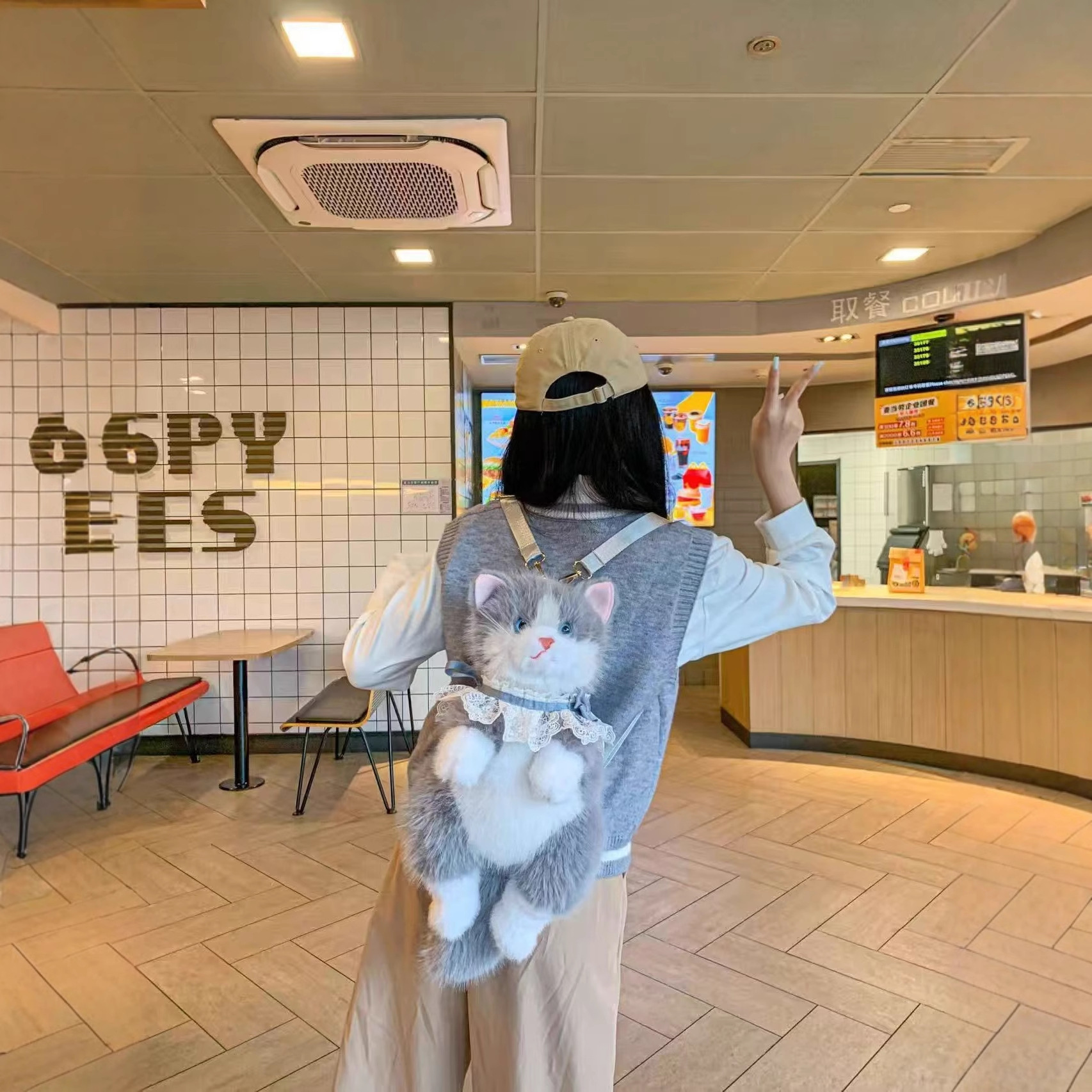 新款毛绒玩具卡通猫咪背包仿真猫咪包女士儿童礼物仿真猫叫