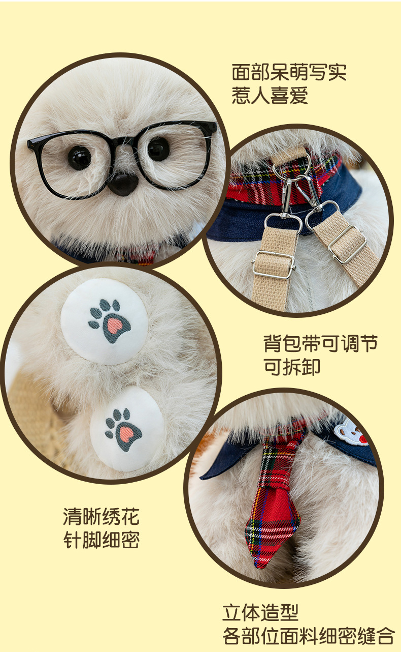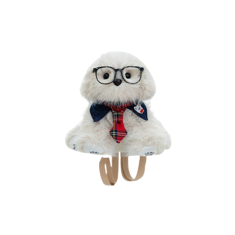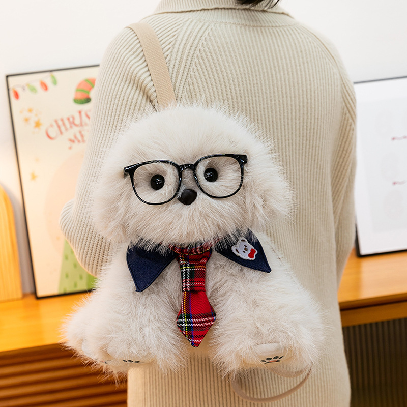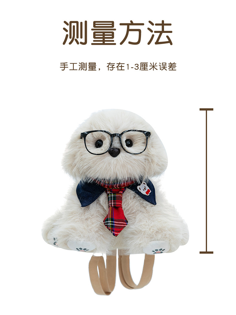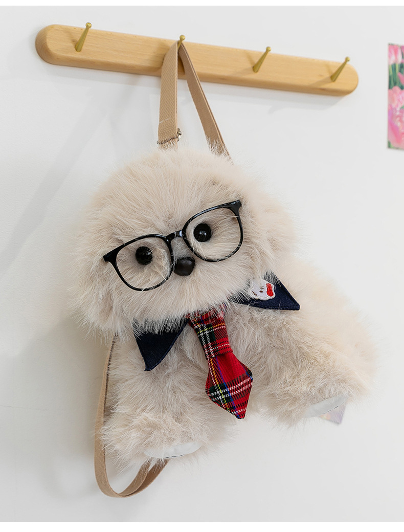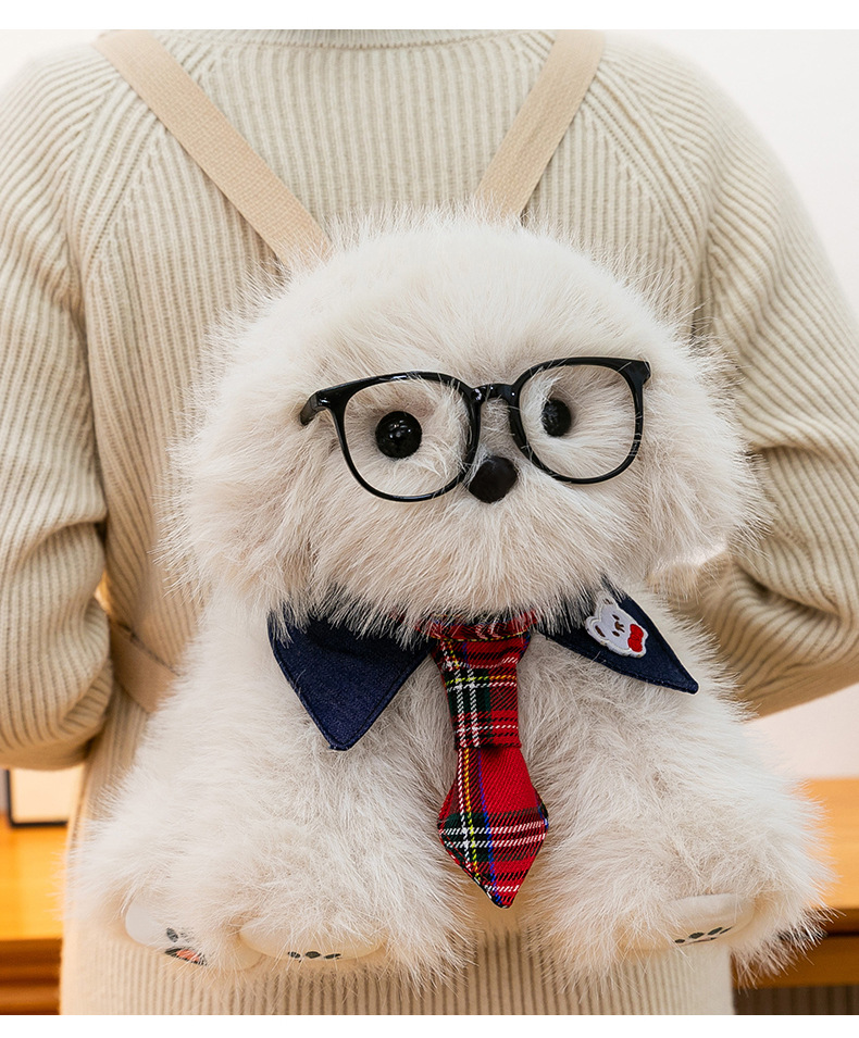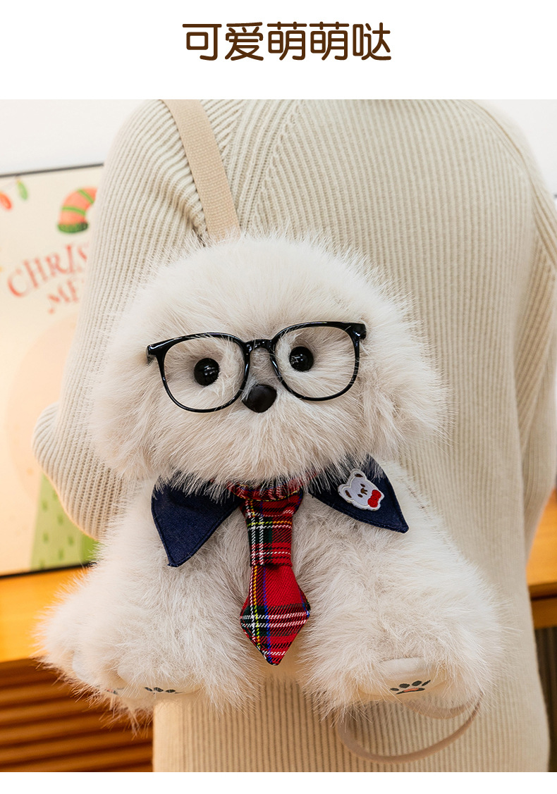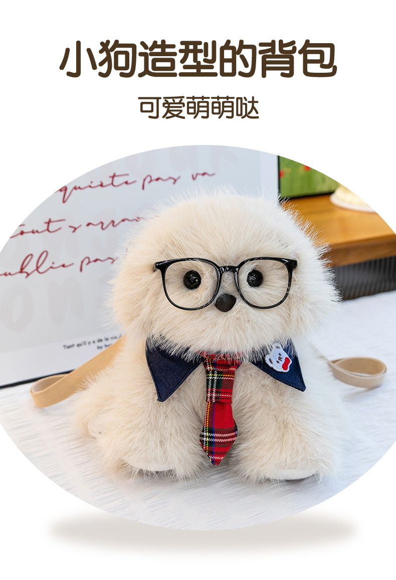 新款仿真个性玩偶背包甜美少女高颜值休闲丑萌眼镜领结小狗双肩包