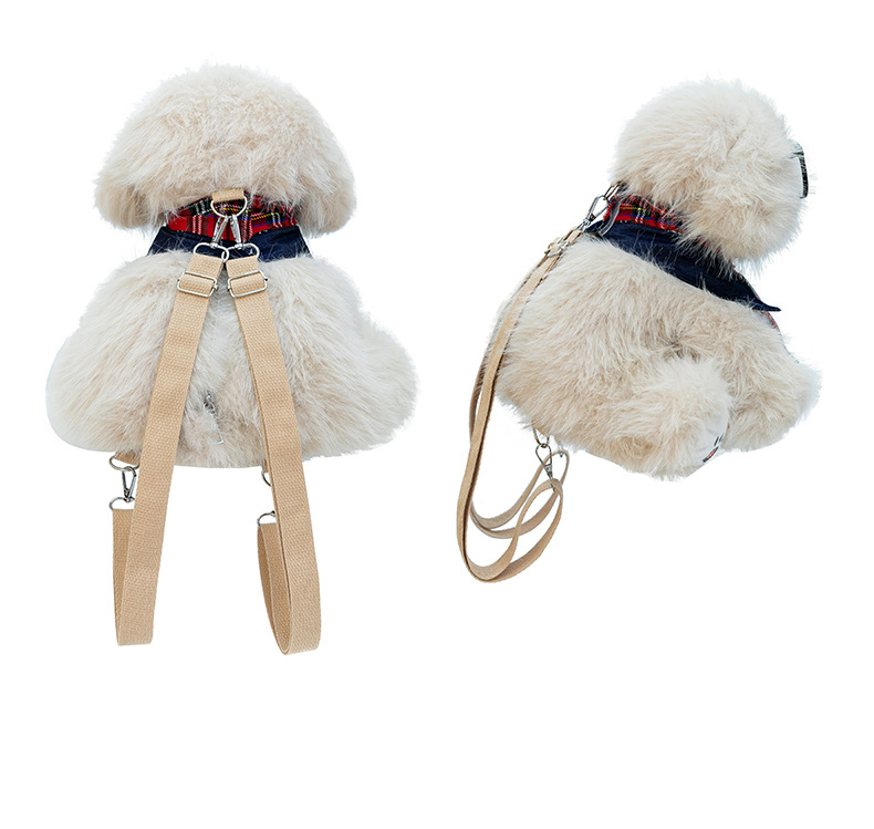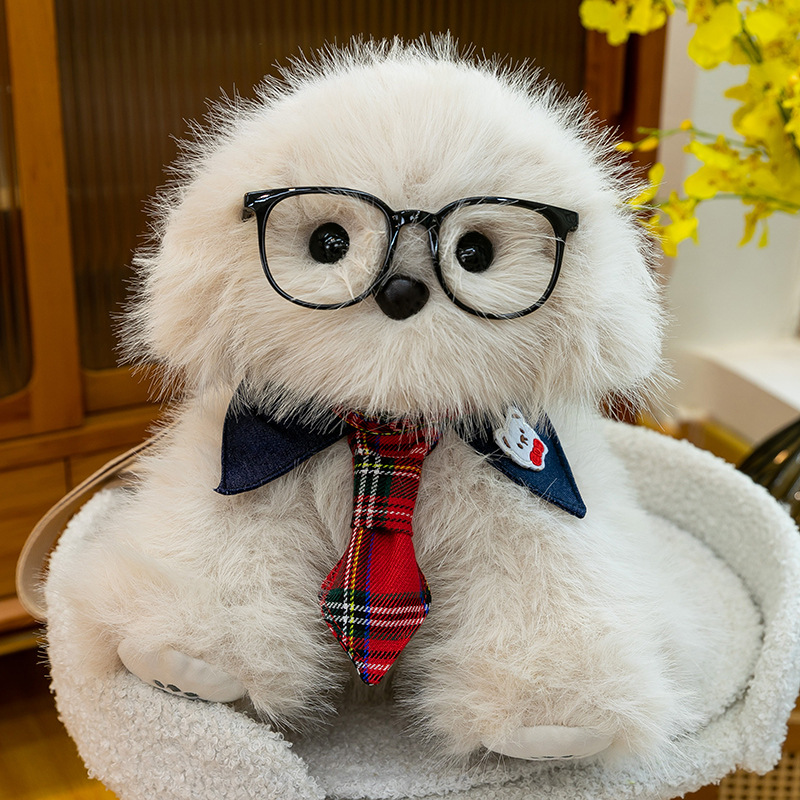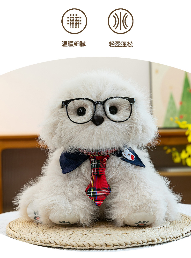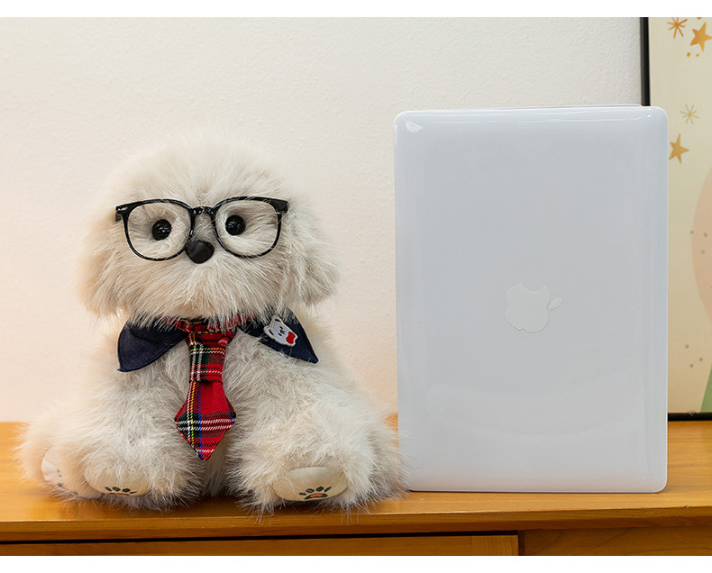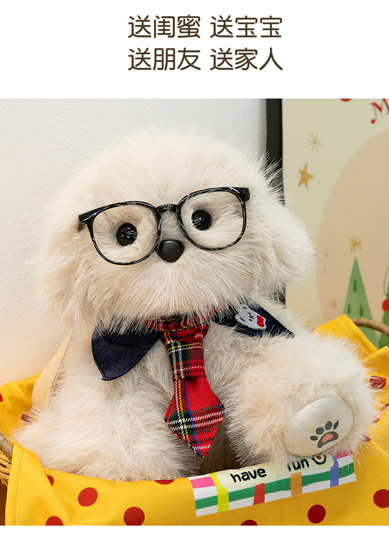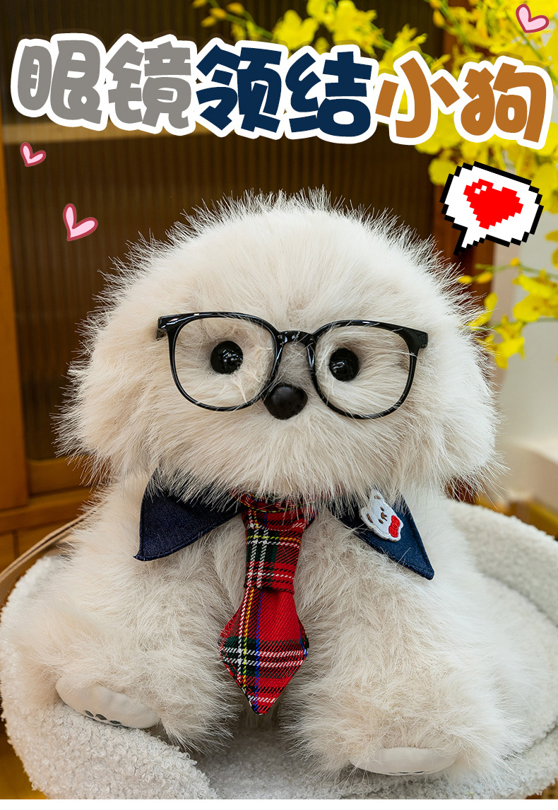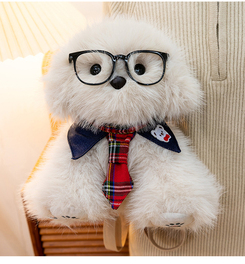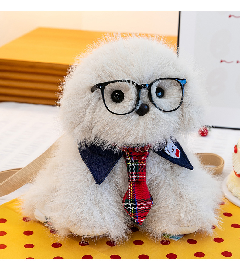 新款仿真个性玩偶背包甜美少女高颜值休闲丑萌眼镜领结小狗双肩包
