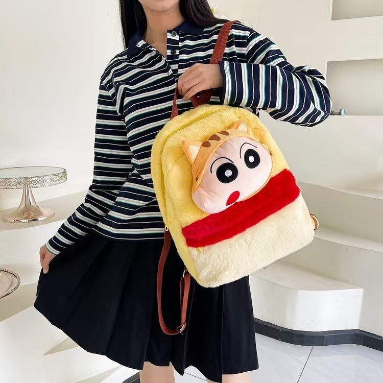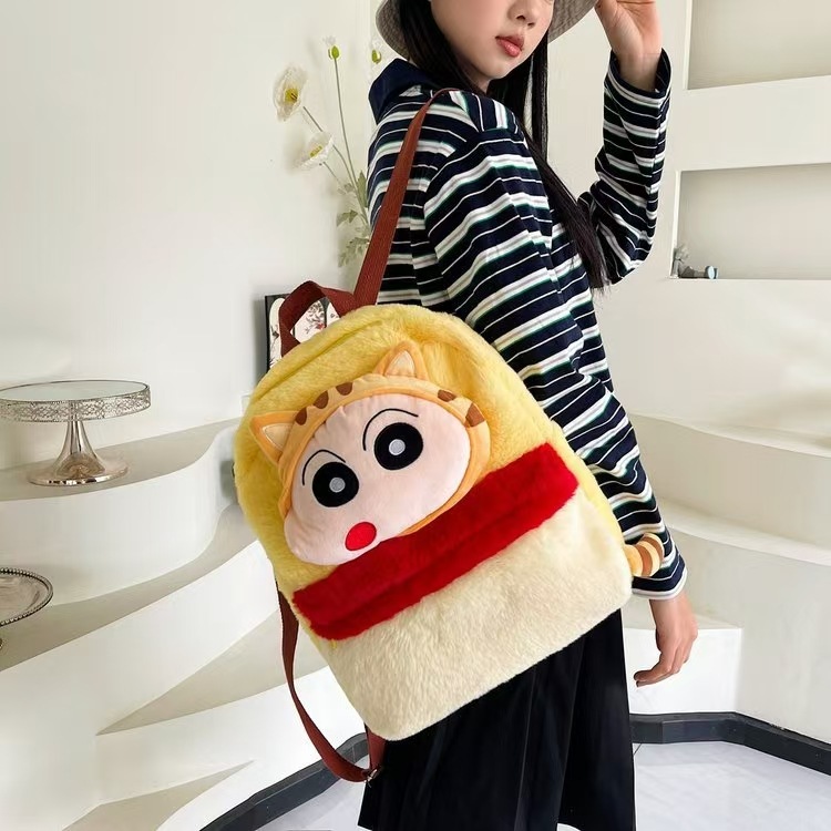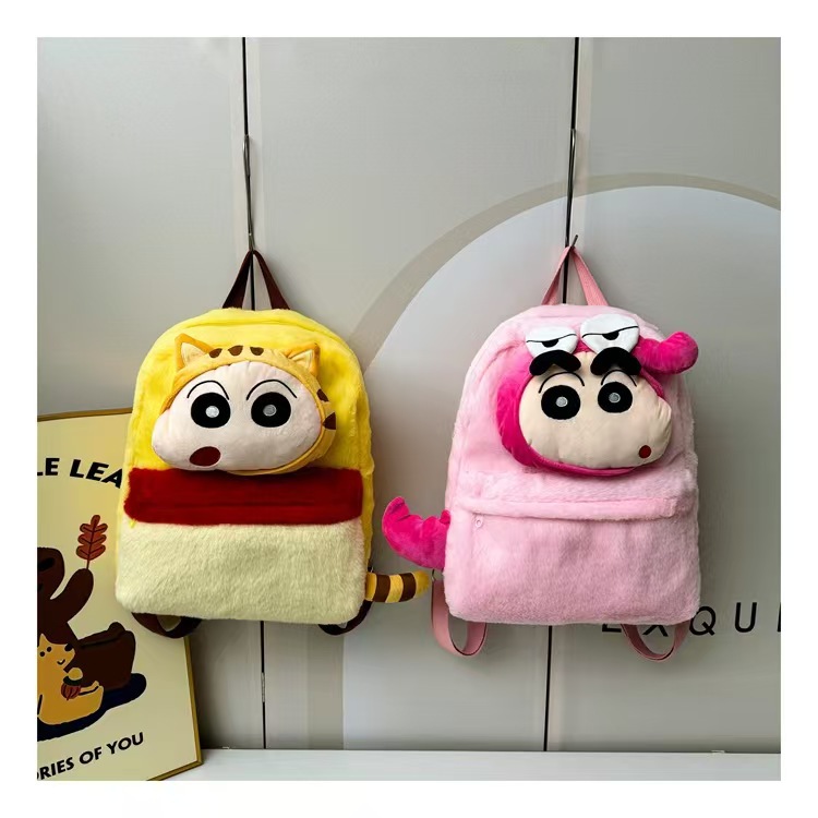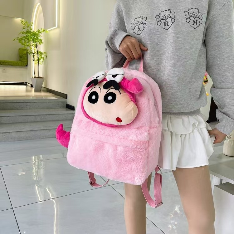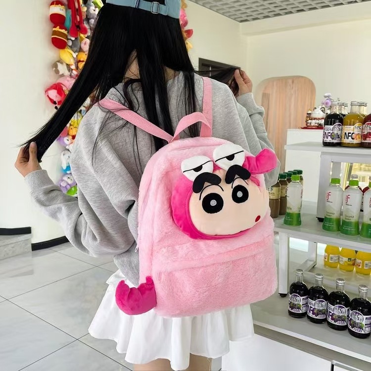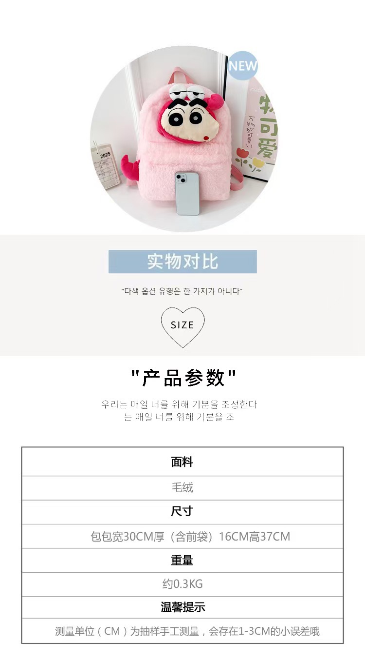 蜡笔小新毛绒公仔双肩包甜美女士可爱书包新款儿童拼色毛绒包