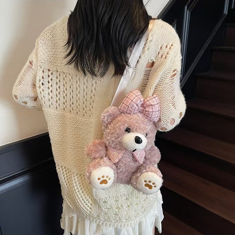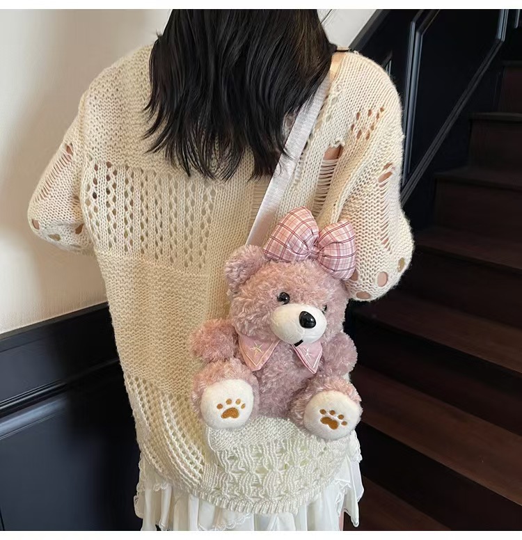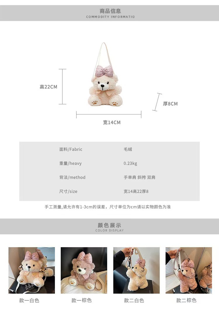 跨境外贸小熊卡通玩偶公仔包可爱女童毛绒玩具包单背斜挎包