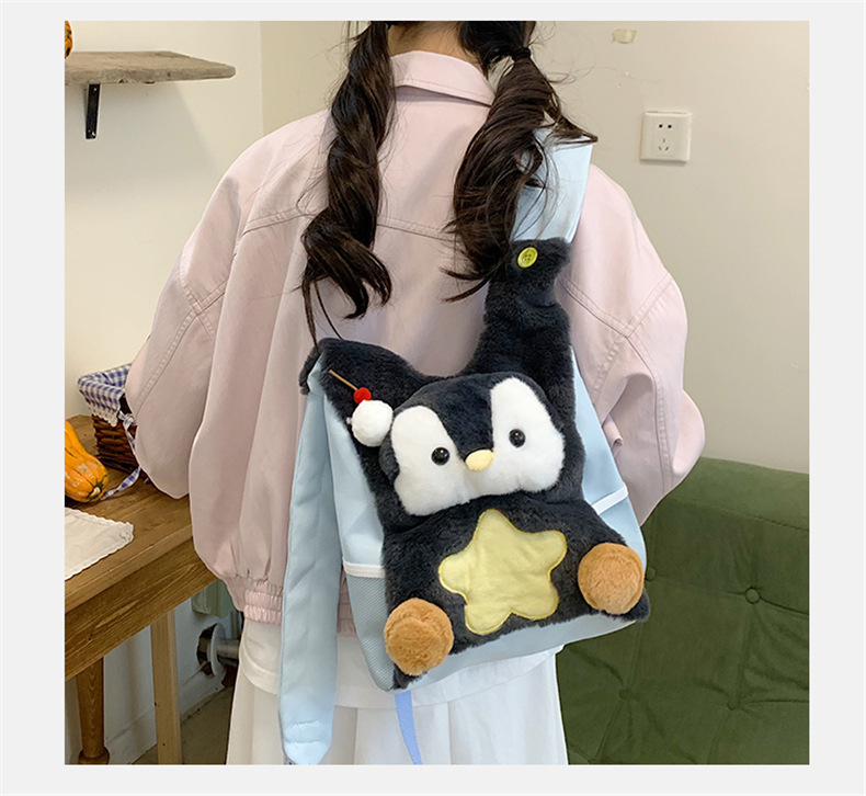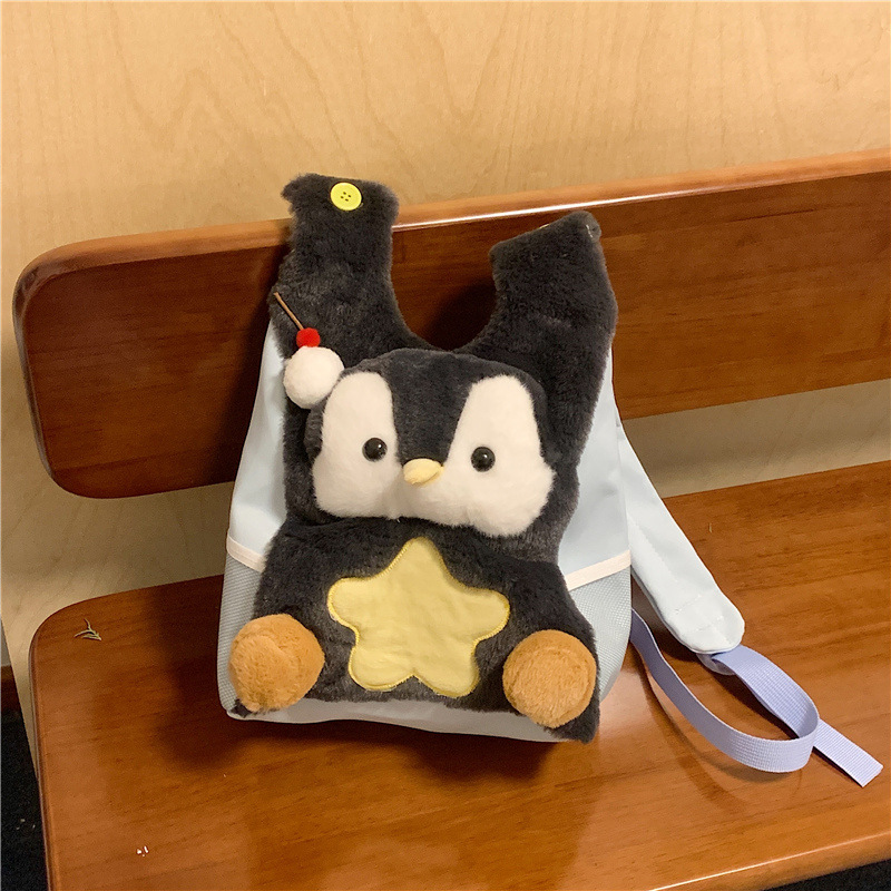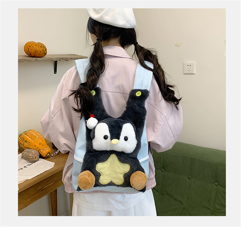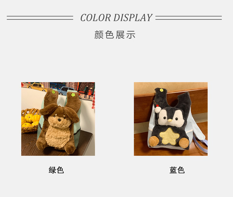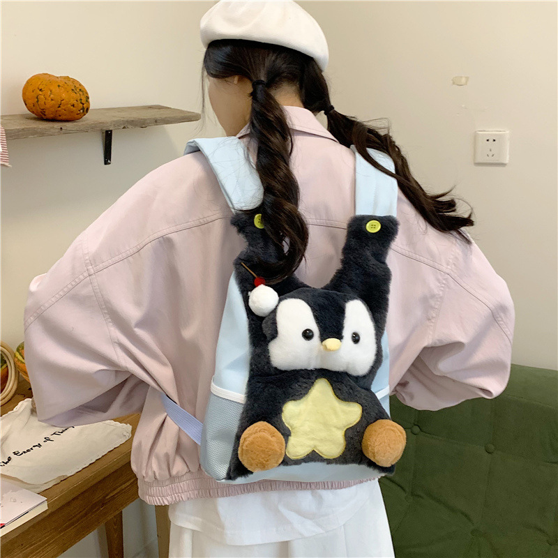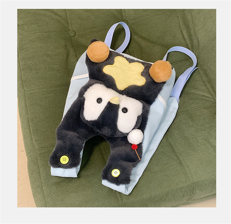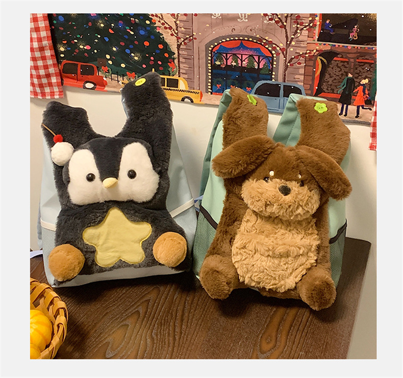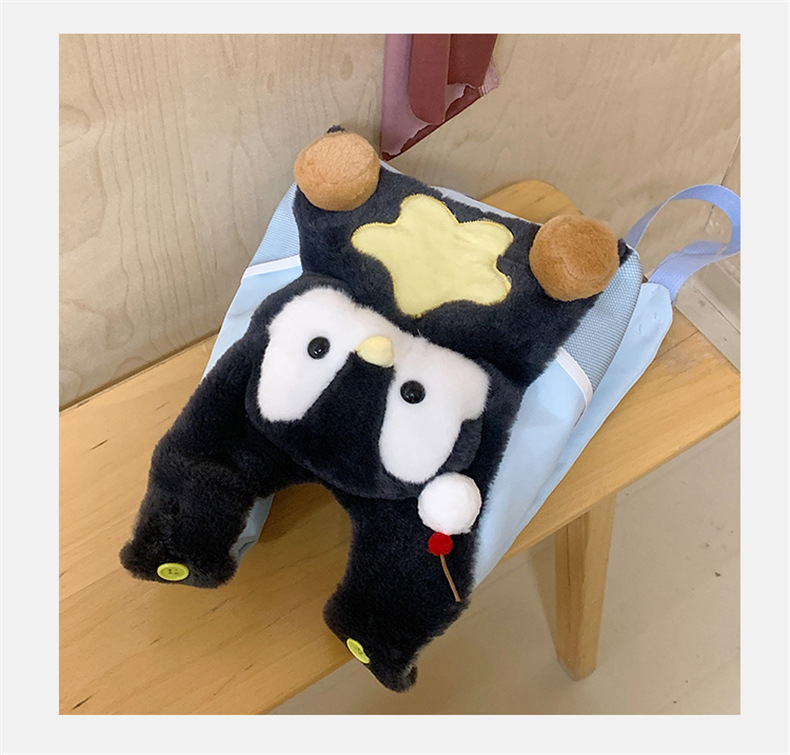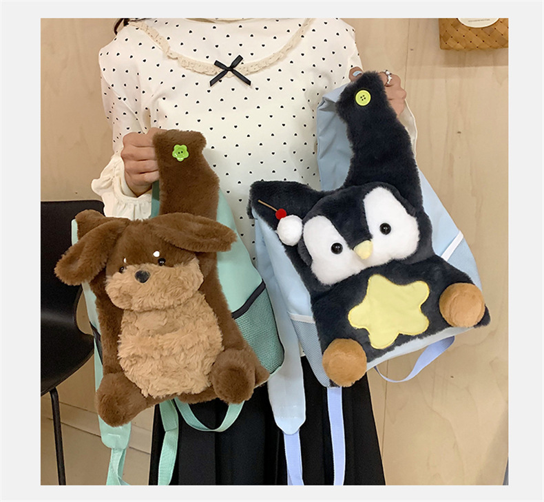 可爱呆萌小企鹅毛绒双肩包女学生上课书包卡通腊肠狗休闲通勤背包