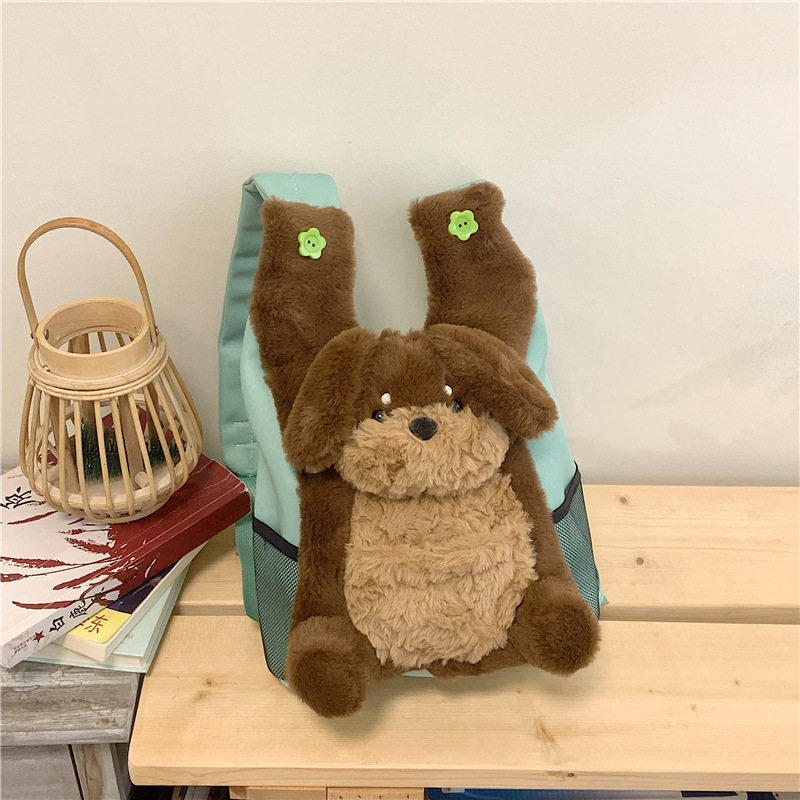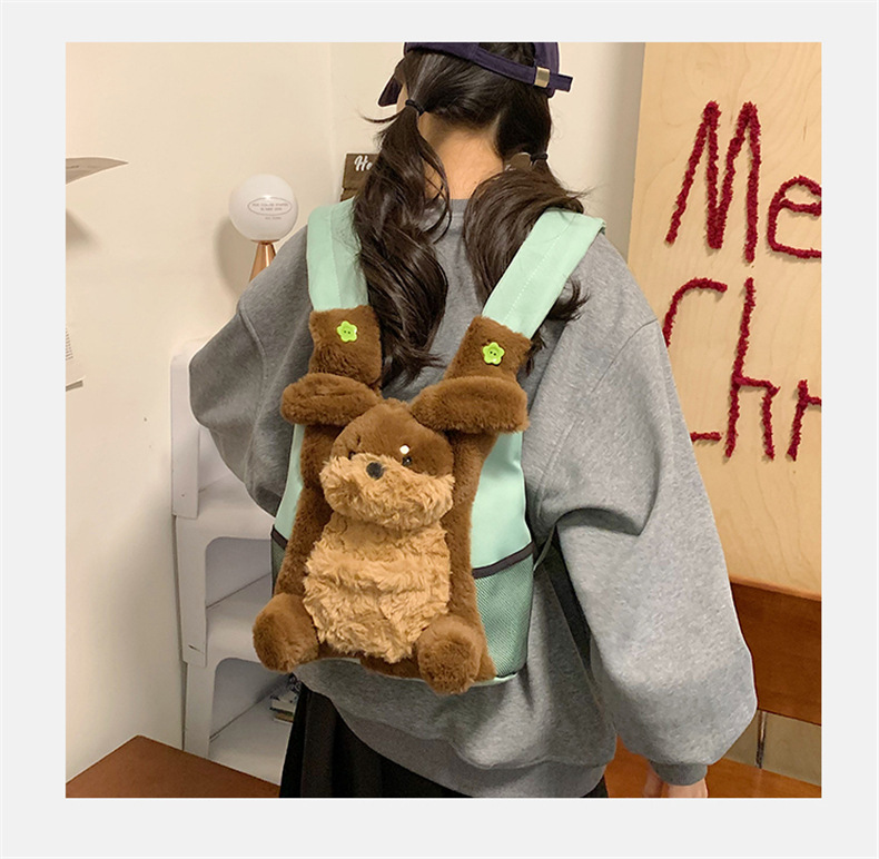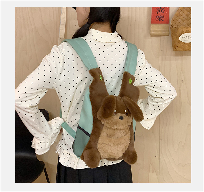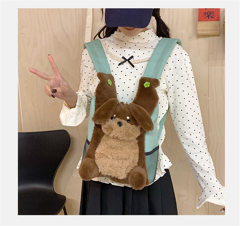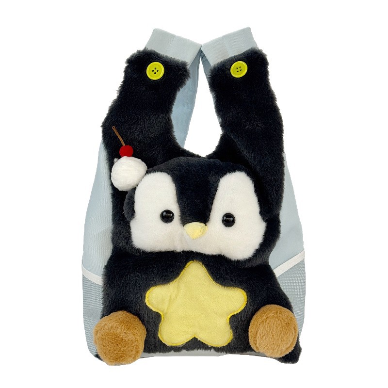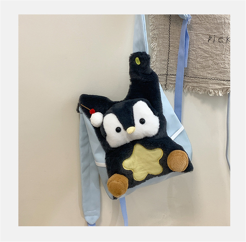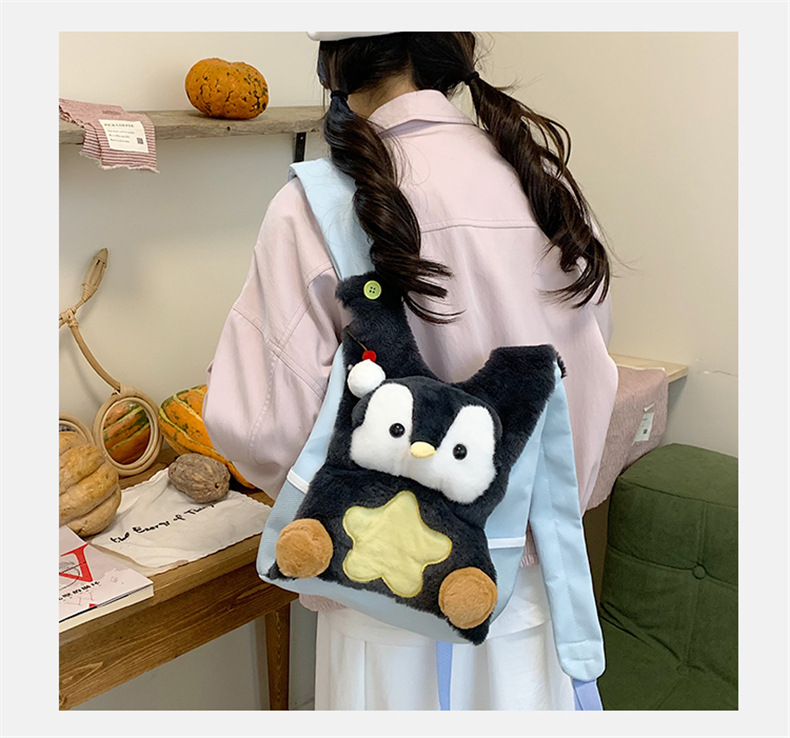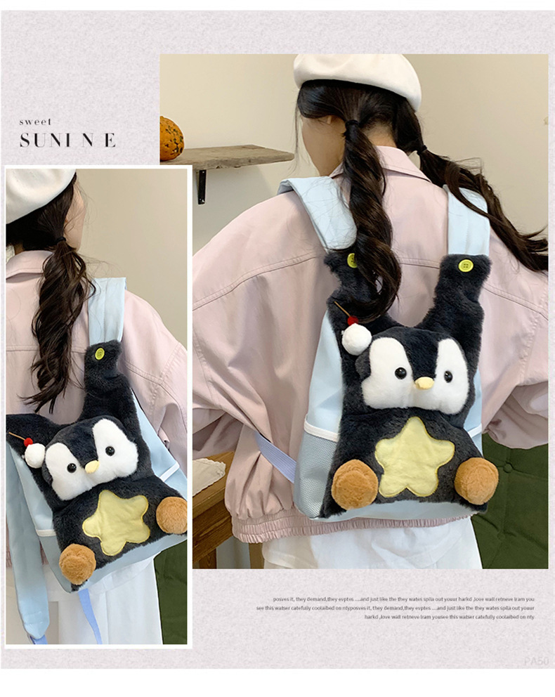 可爱呆萌小企鹅毛绒双肩包女学生上课书包卡通腊肠狗休闲通勤背包