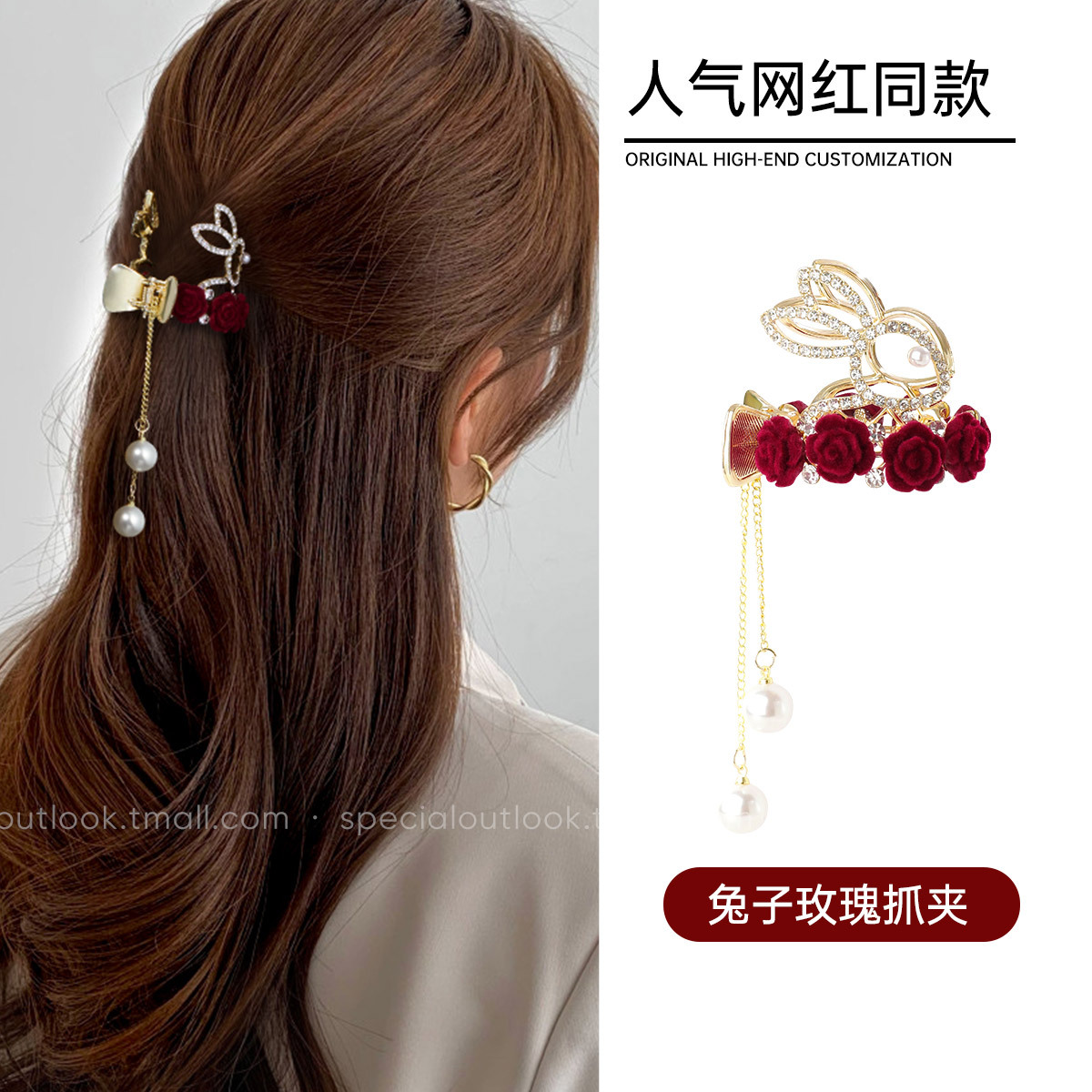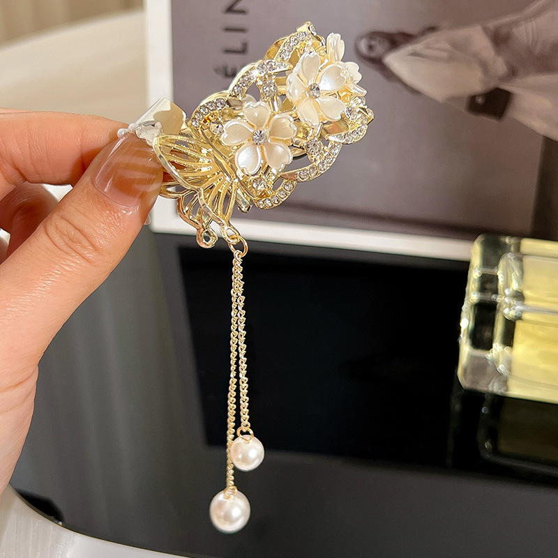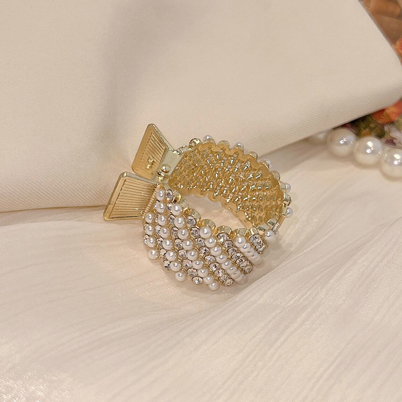 轻奢水钻珍珠高马尾扣抓夹固定神器2024年网红新款鲨鱼夹子发卡