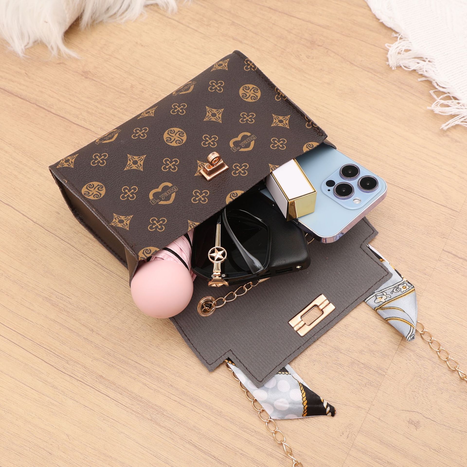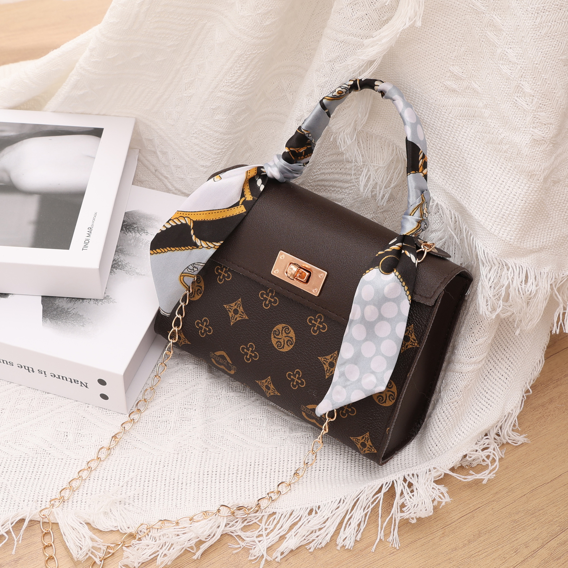 女款时尚百搭简约链条包手提斜挎包小方包
