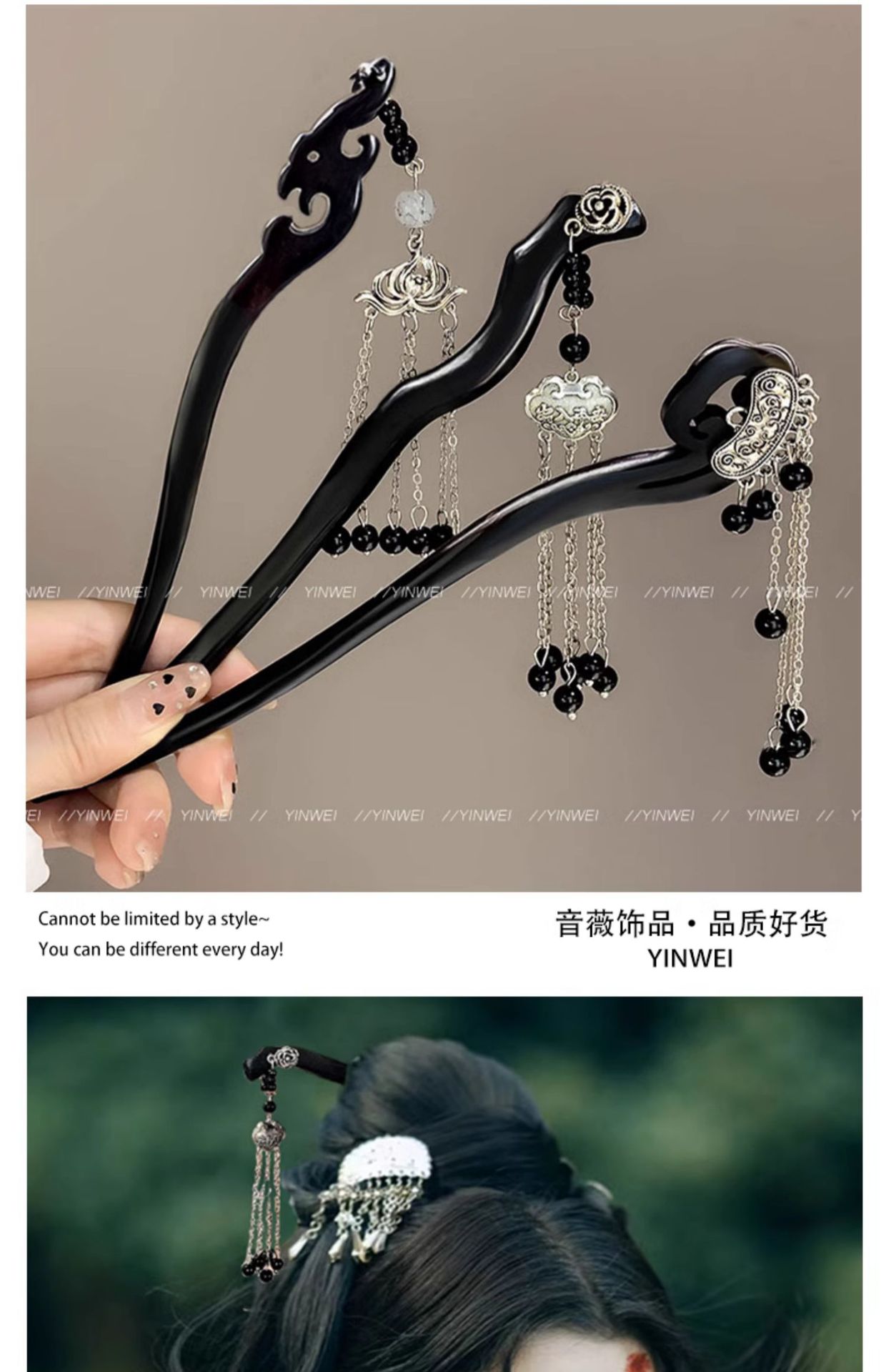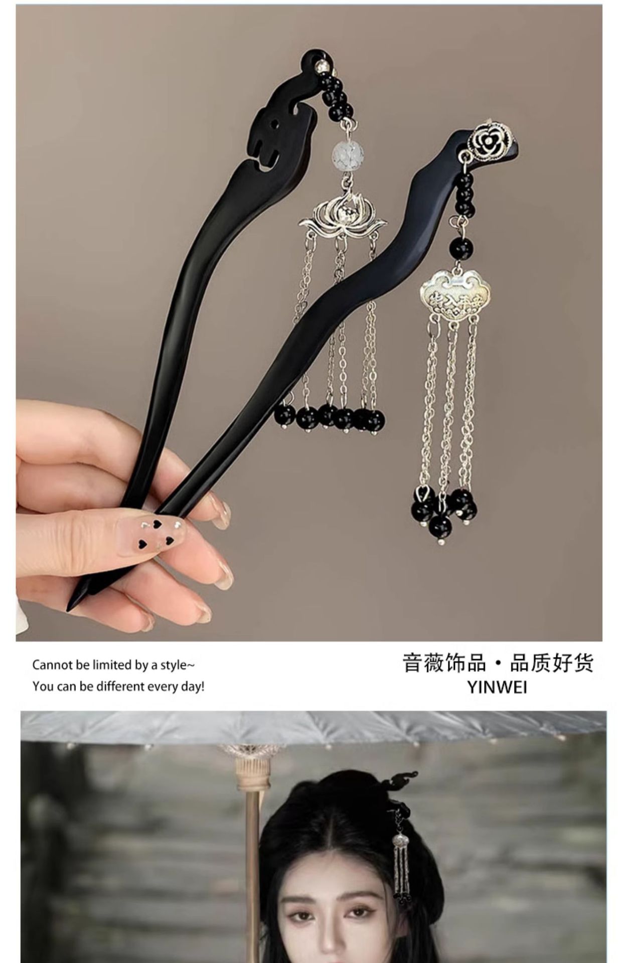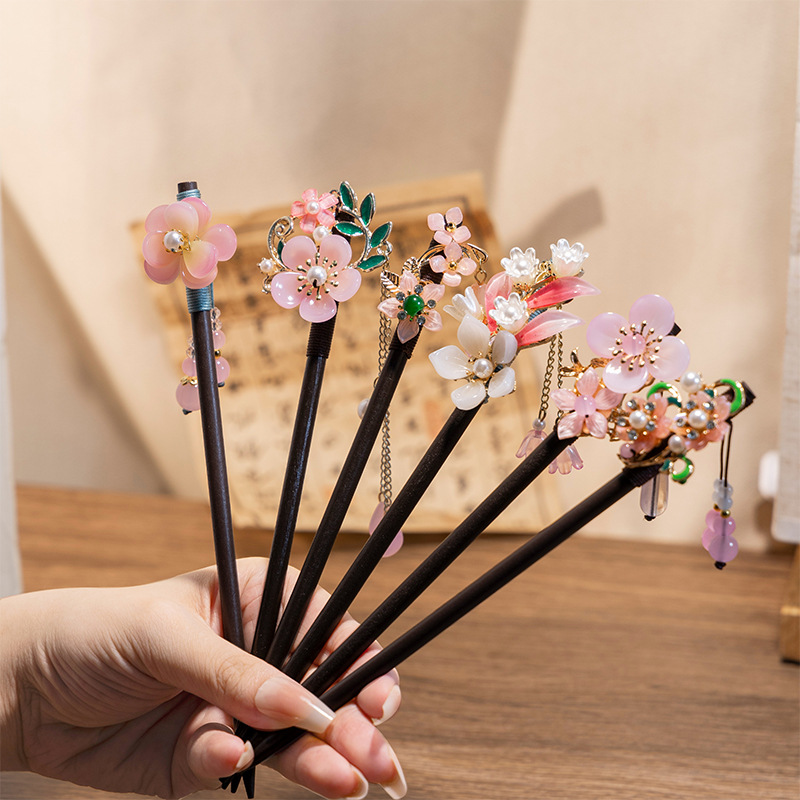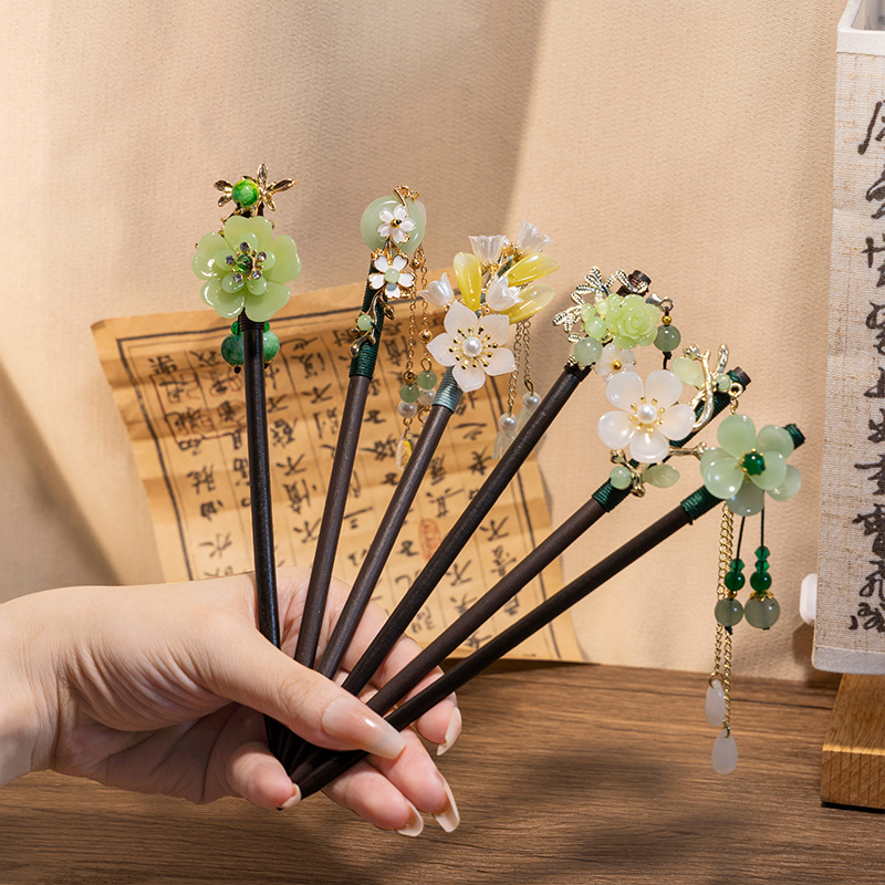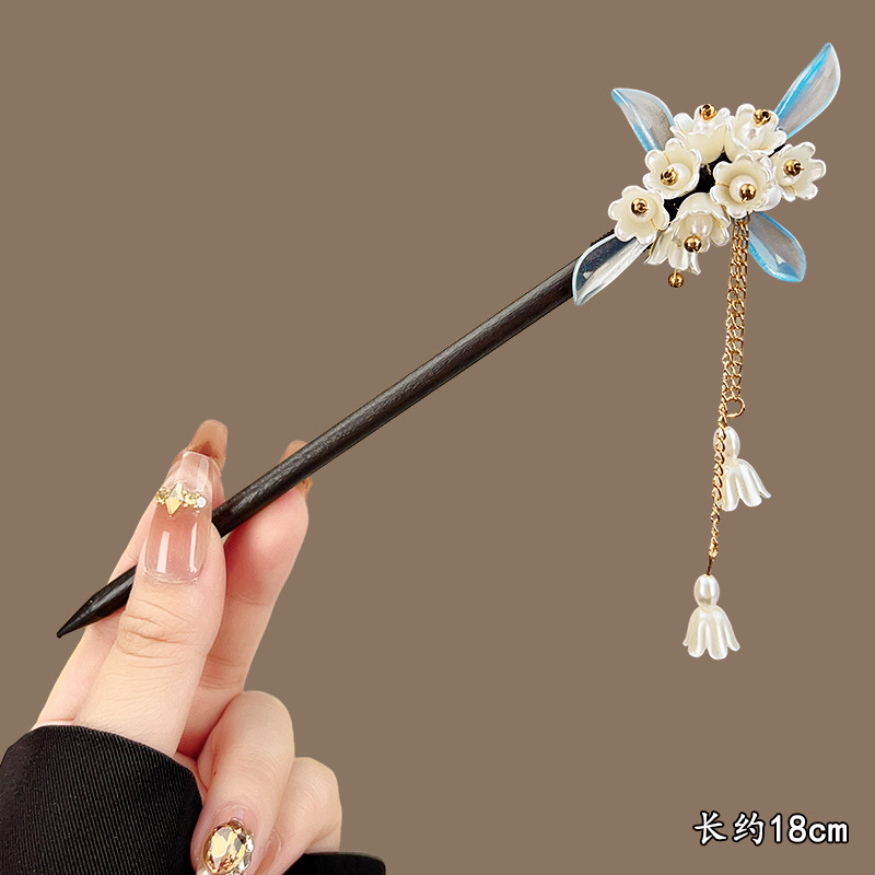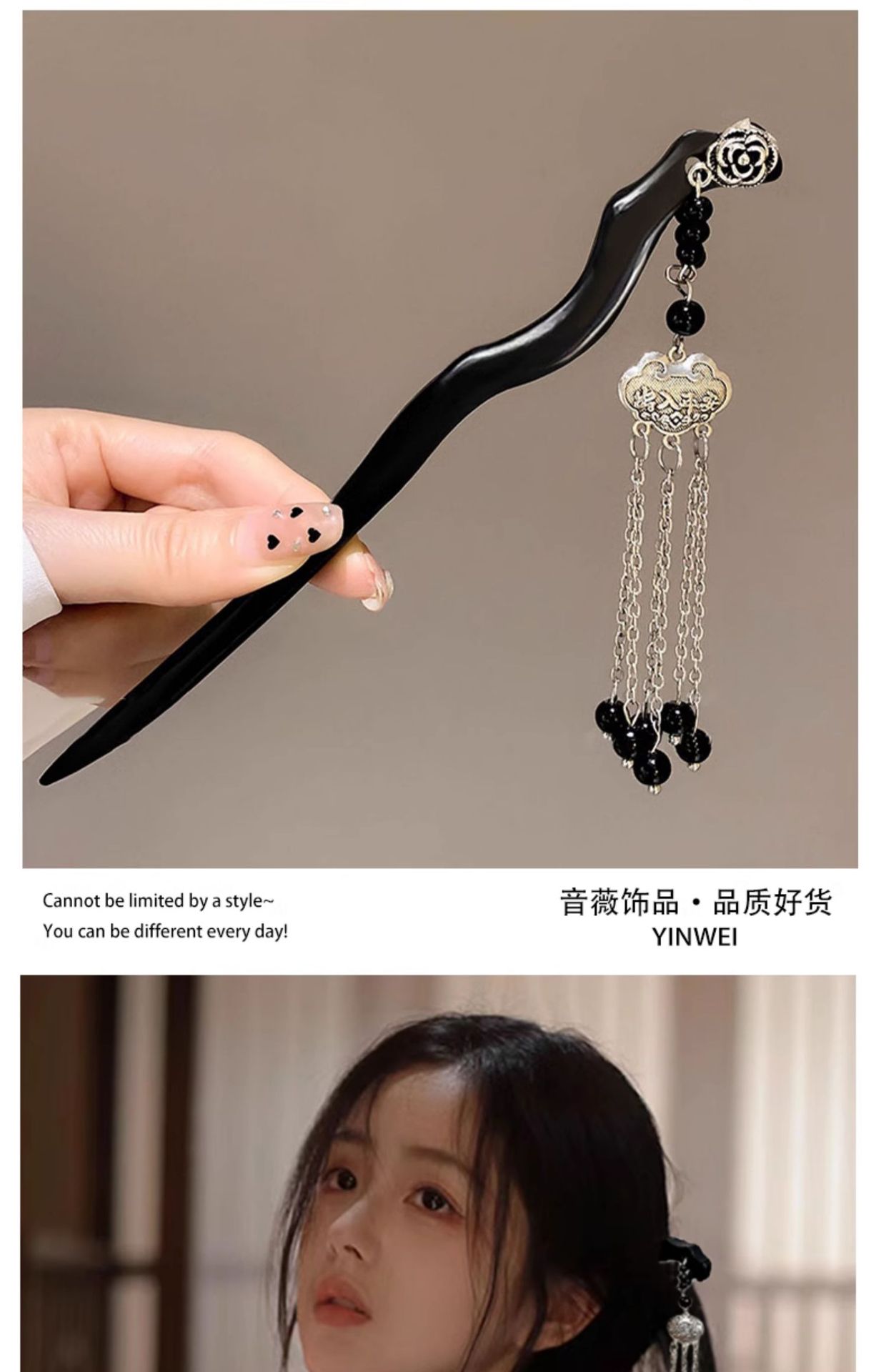 木簪子发簪高级感新中式如意平安锁古风旗袍发钗儿童流苏盘发头饰