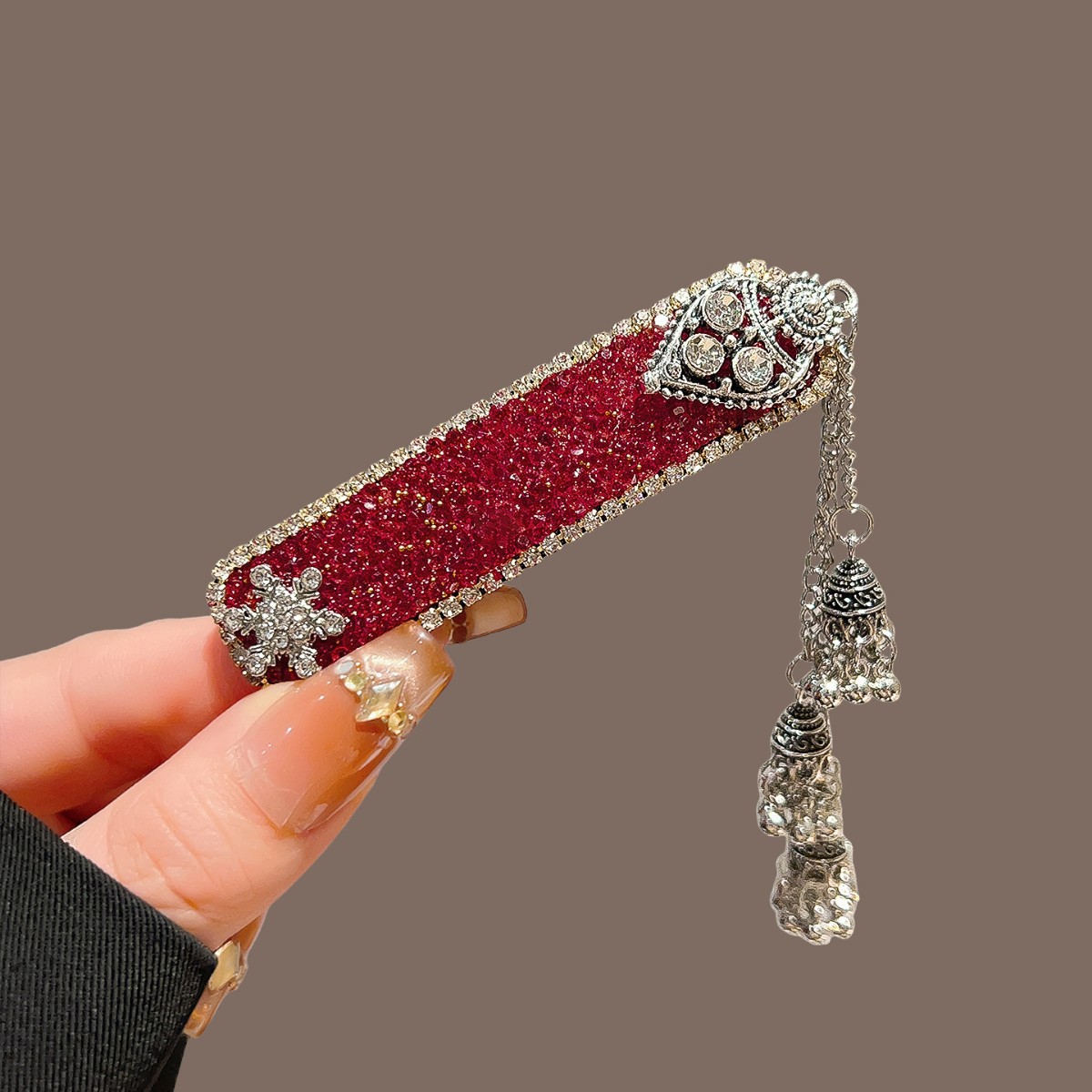 新款重工水晶闪钻铃铛流苏发夹bb夹民族风刘海夹复古侧边夹头饰女