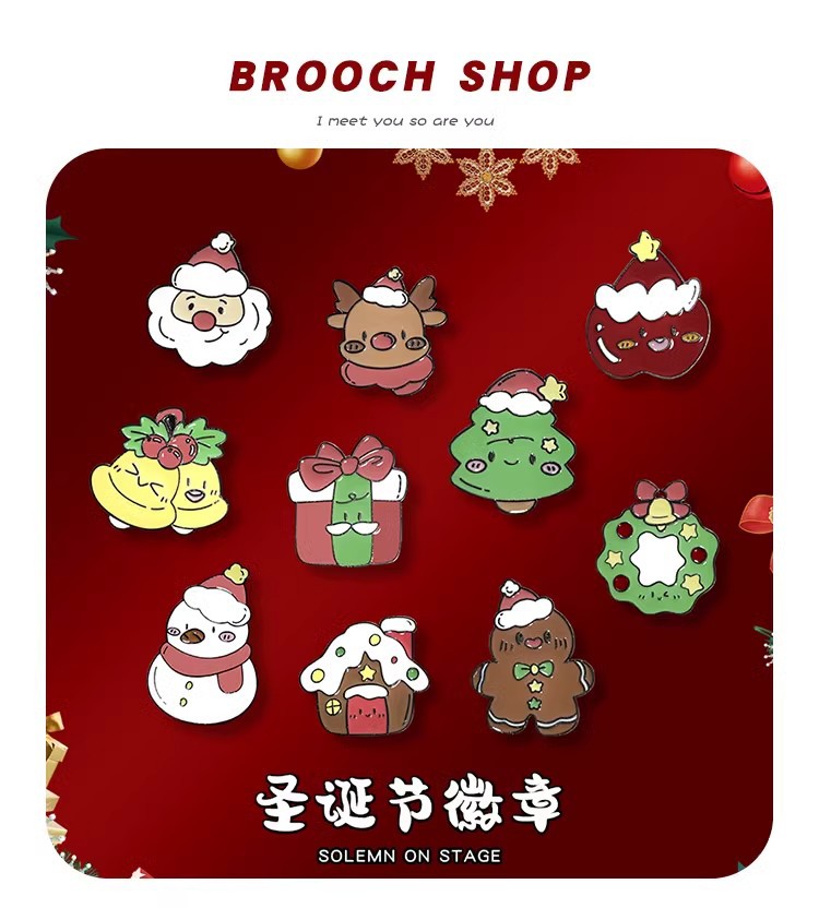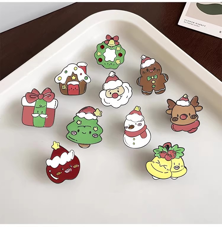 圣诞老人胸针徽章卡通金属个性别针圣诞胸针衣服包姜饼人节日装饰