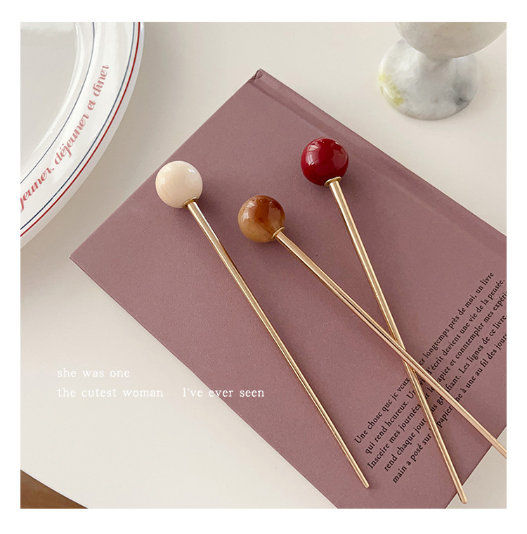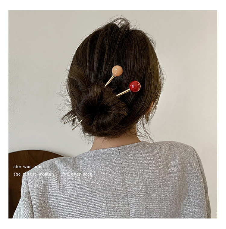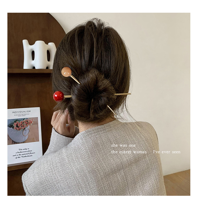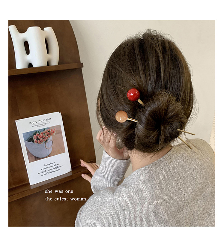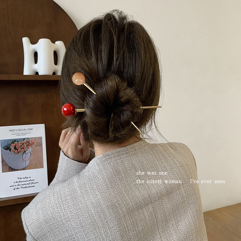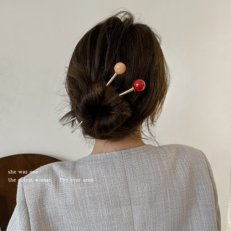 圆球金属发簪女丸子头懒人盘发神器简约现代发钗日常佩戴百搭簪子