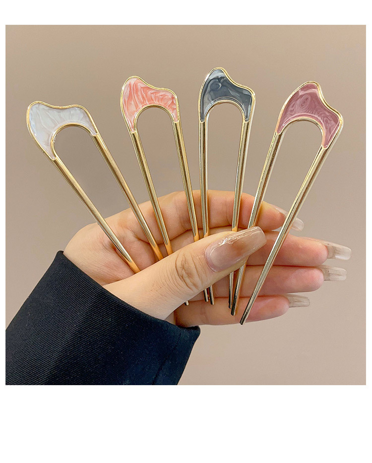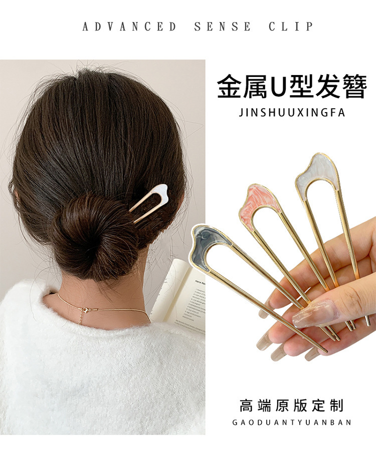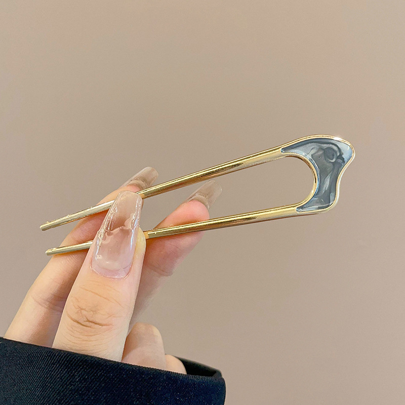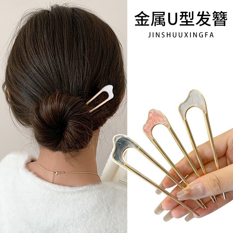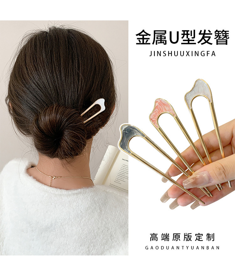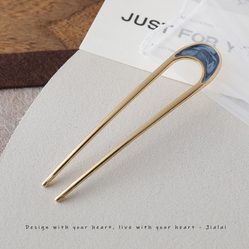 气质简约盘发月牙滴油发簪子简约现代头饰百搭丸子头u型发钗金属