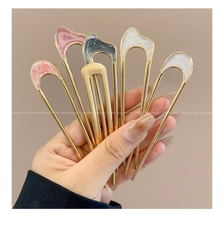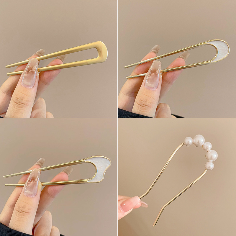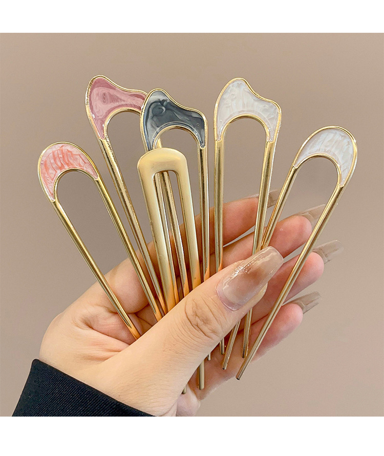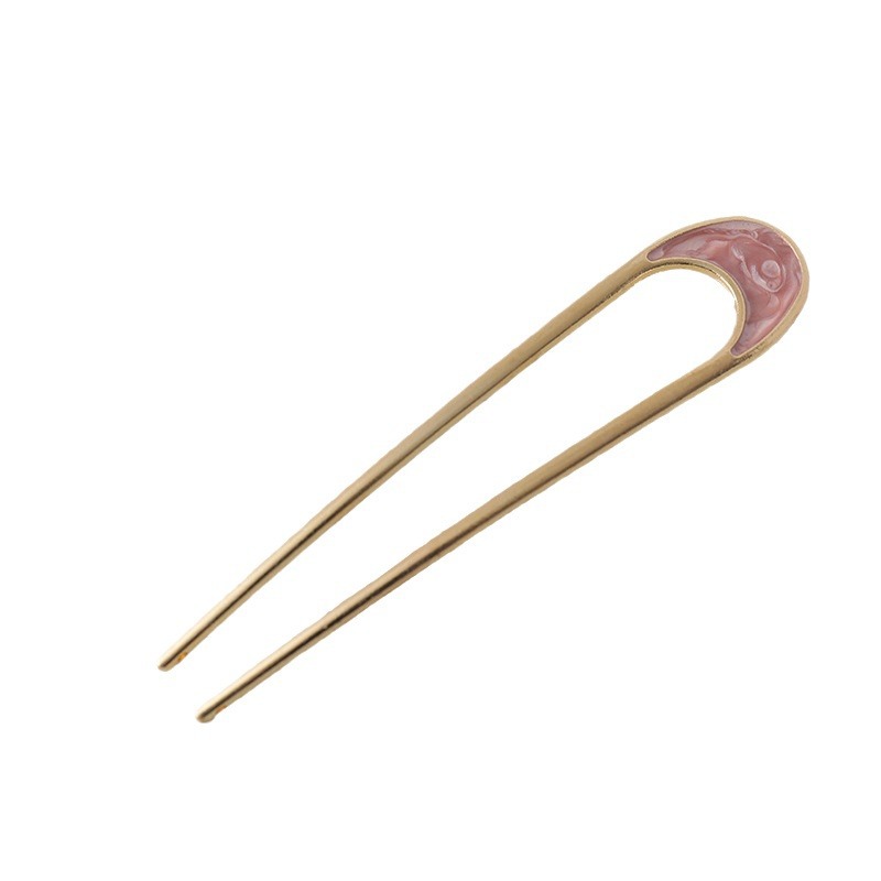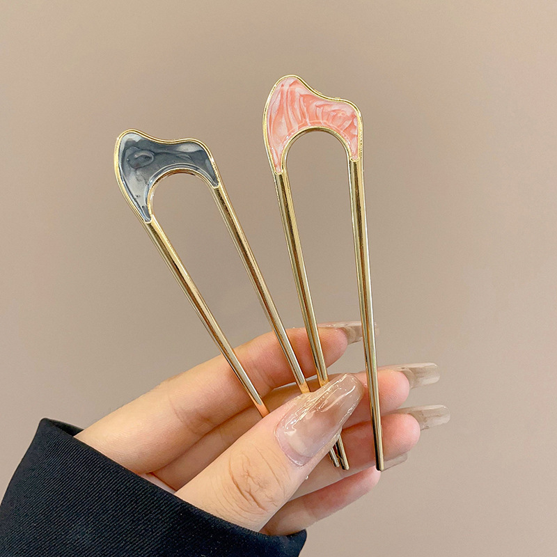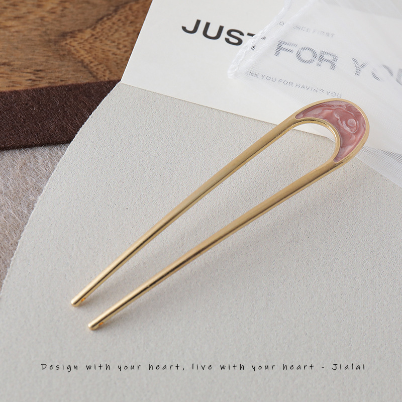 气质简约盘发月牙滴油发簪子简约现代头饰百搭丸子头u型发钗金属