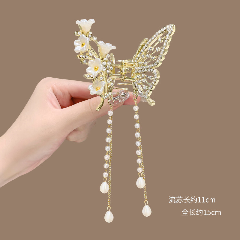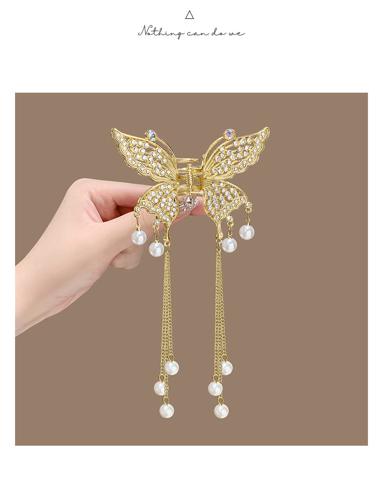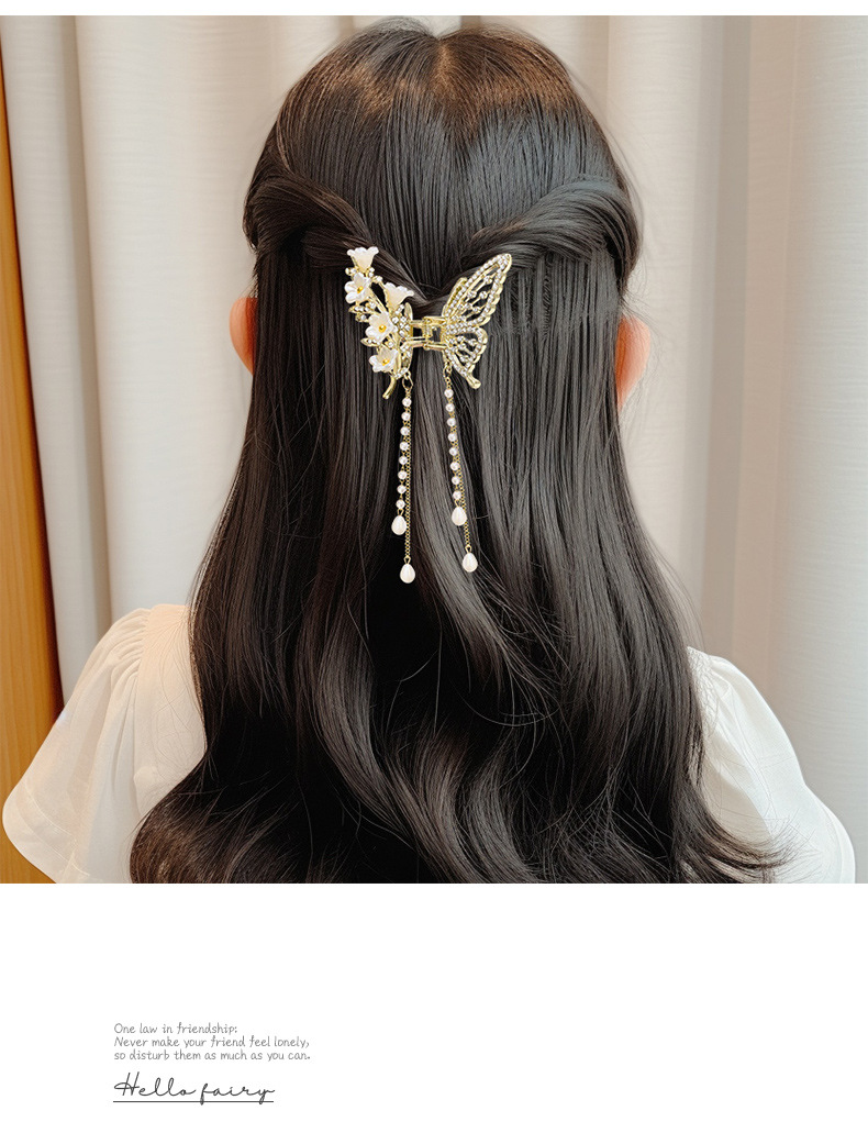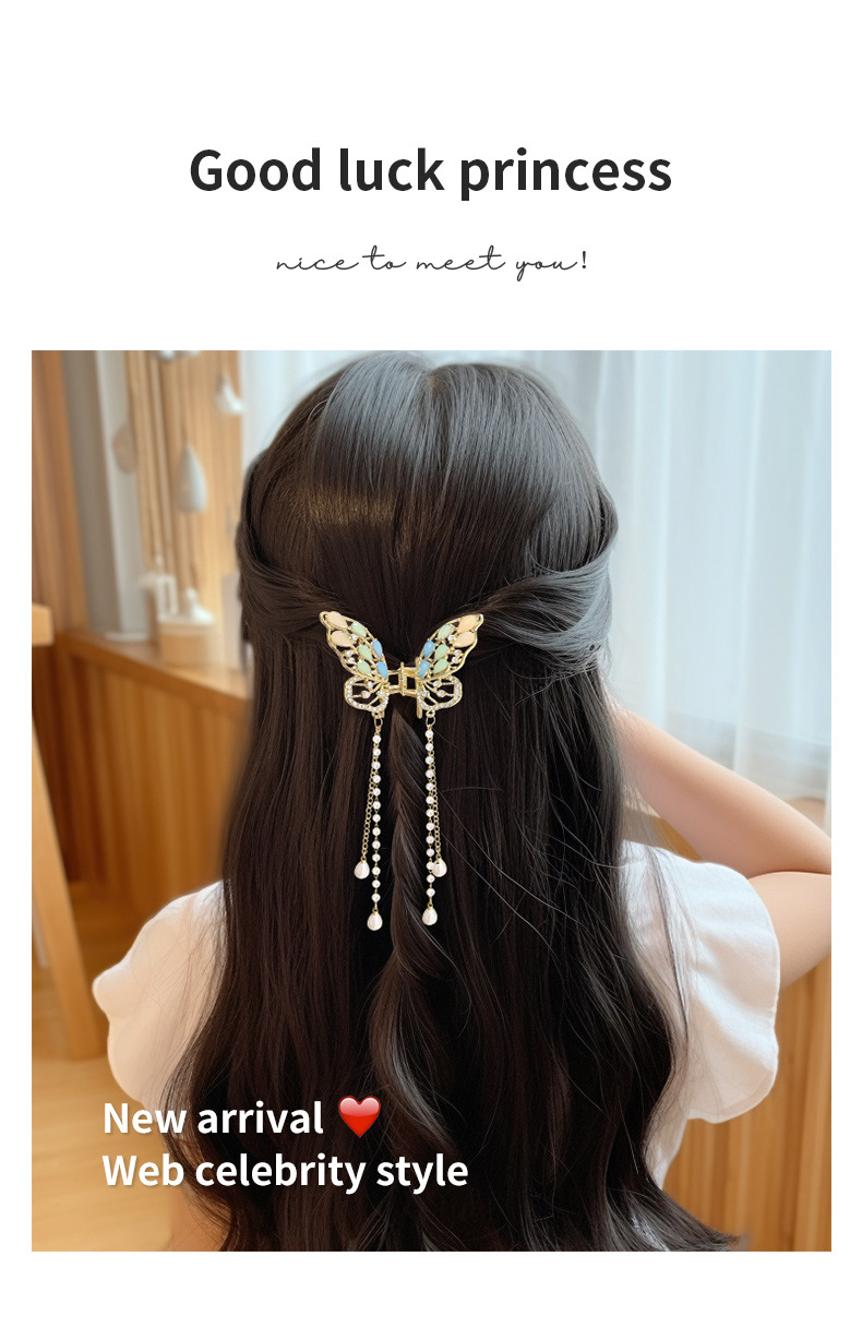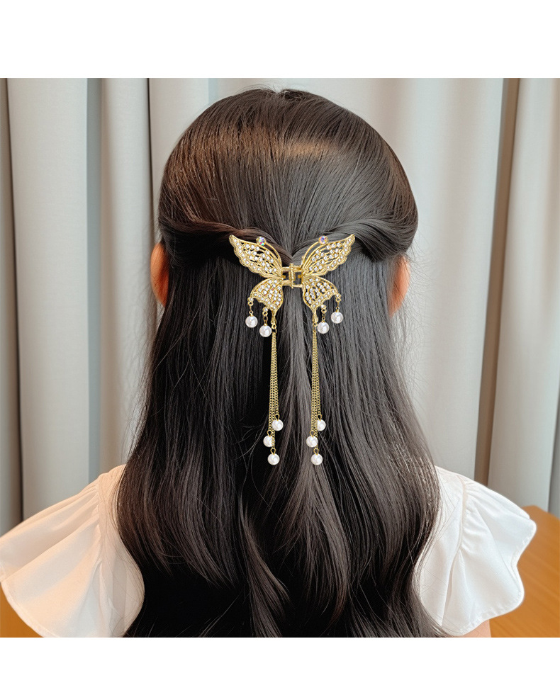 金属蝴蝶发夹女高级感气质半扎发流苏吊坠发饰2025新款后脑勺抓夹