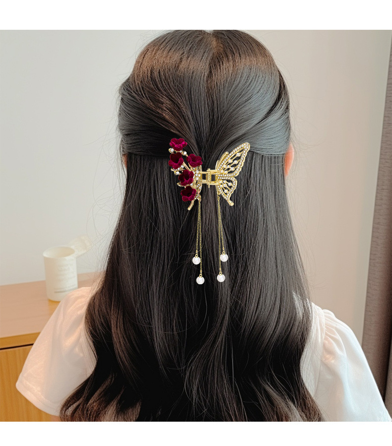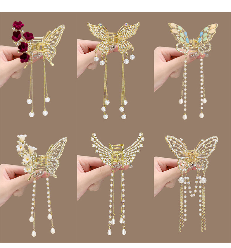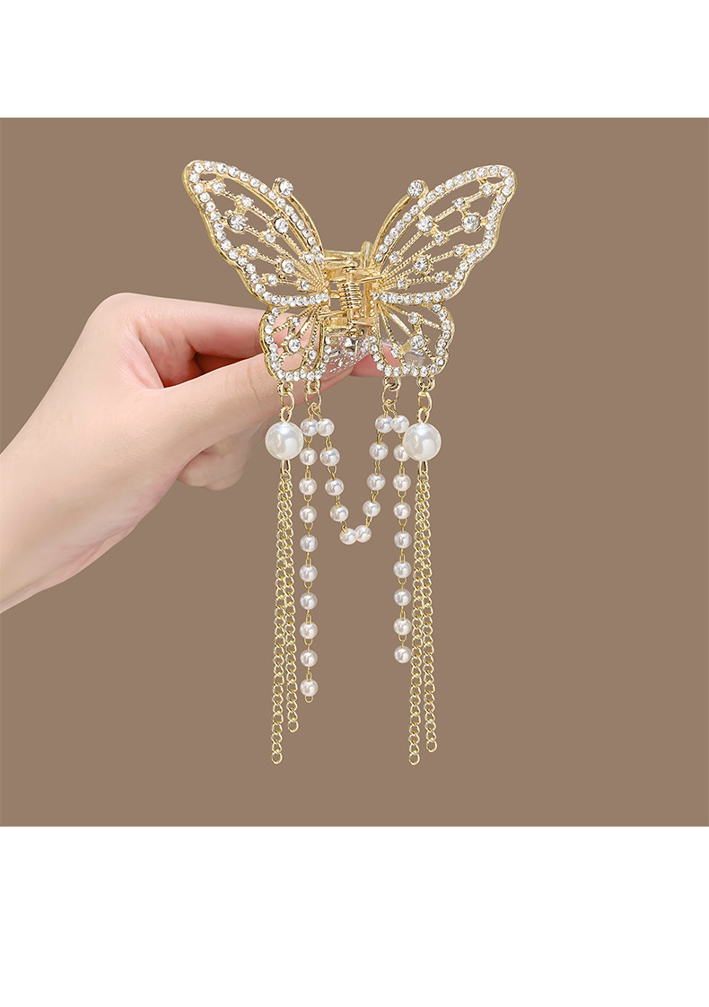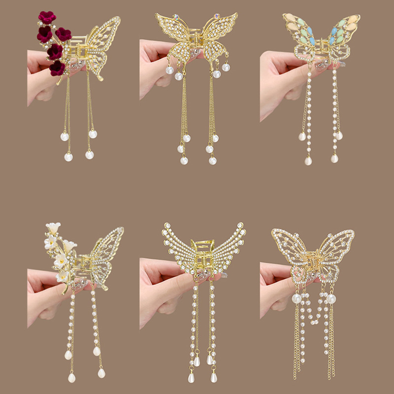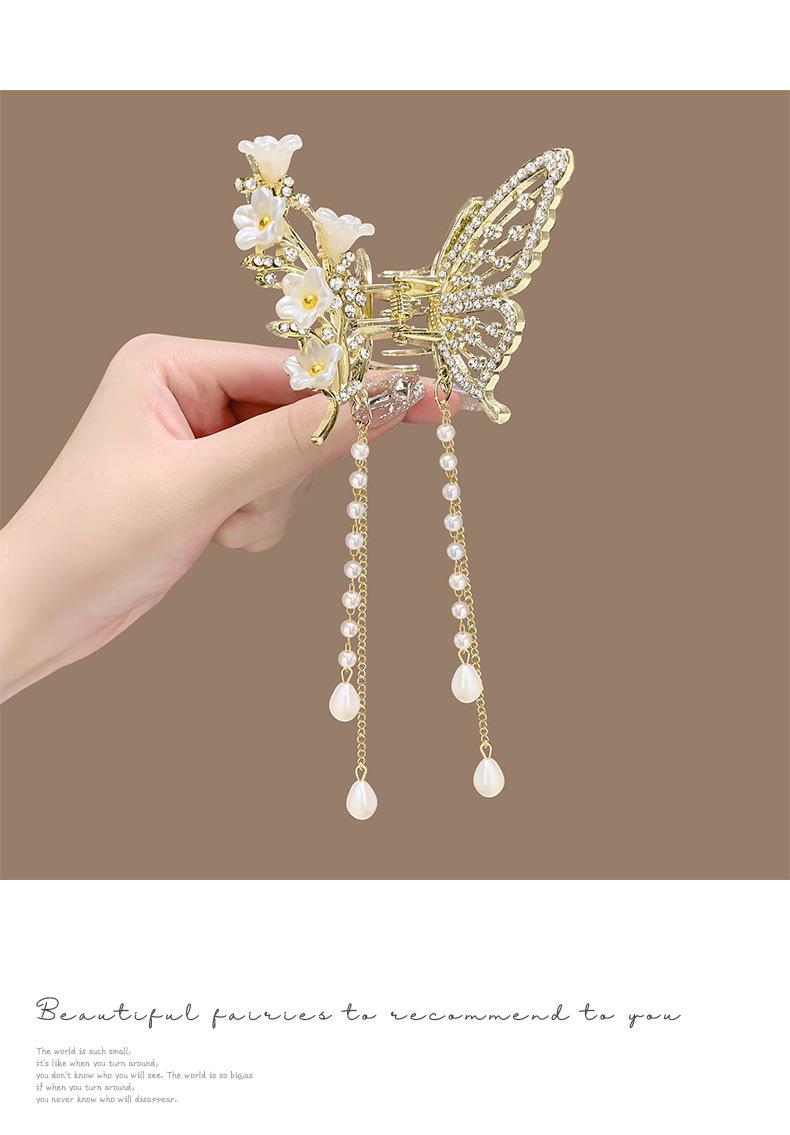 金属蝴蝶发夹女高级感气质半扎发流苏吊坠发饰2025新款后脑勺抓夹