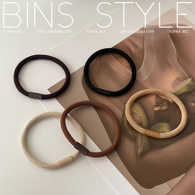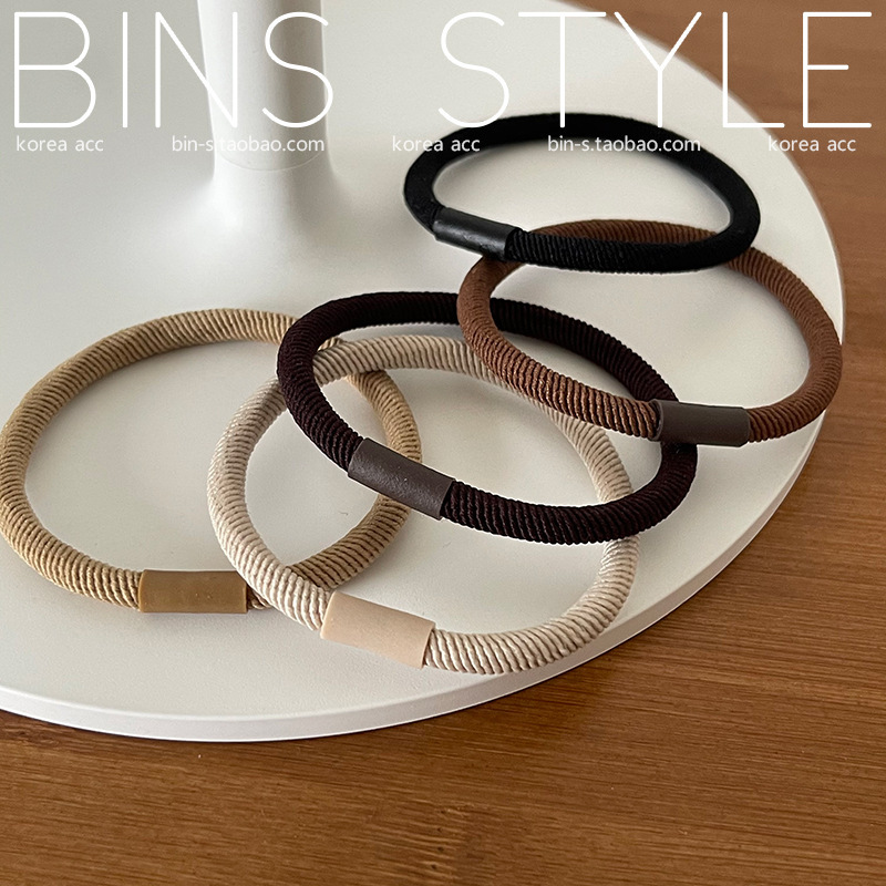 韩版高品质基础好用皮筋棕色系大地色斜纹扎发头绳打底发圈素圈