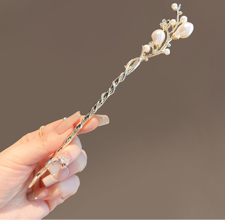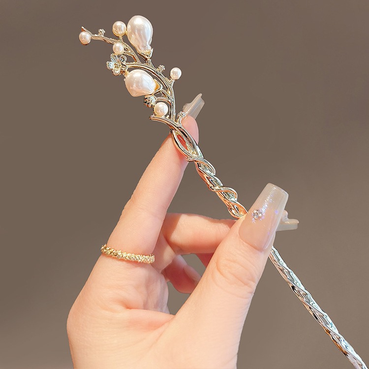 铃兰花古风步摇发簪高级感珍珠汉服树枝簪子发钗流苏旗袍盘发头饰