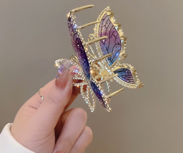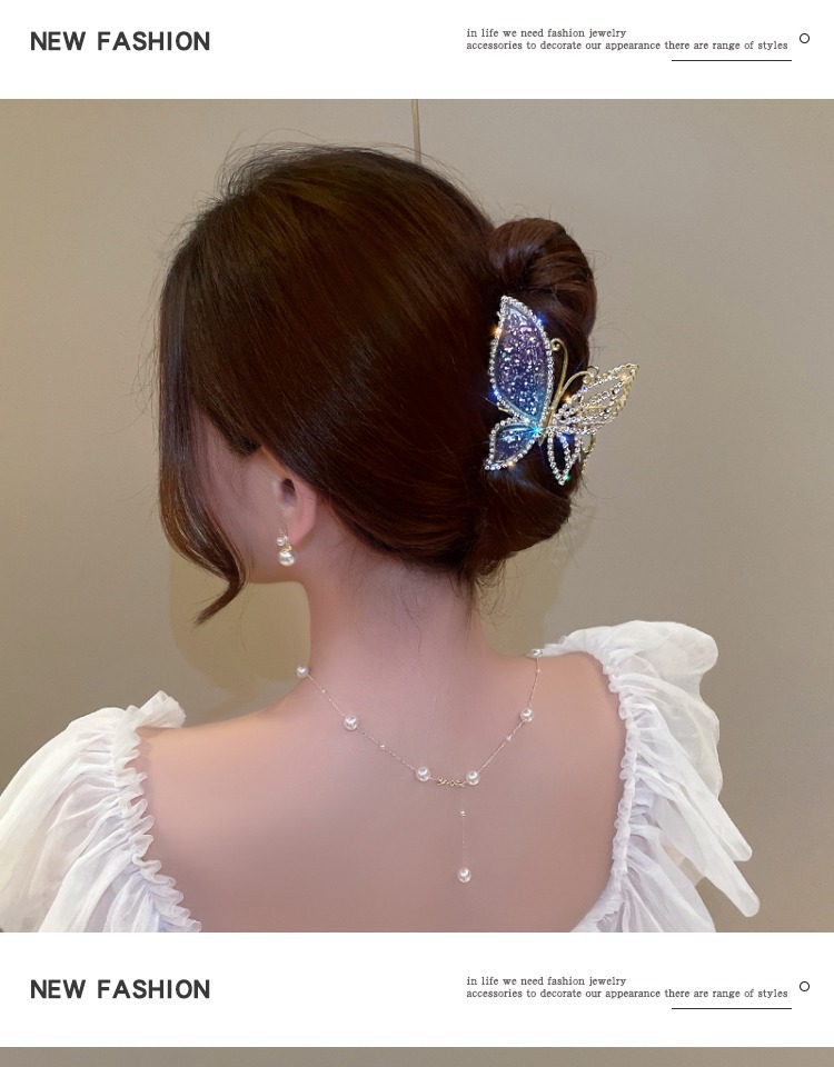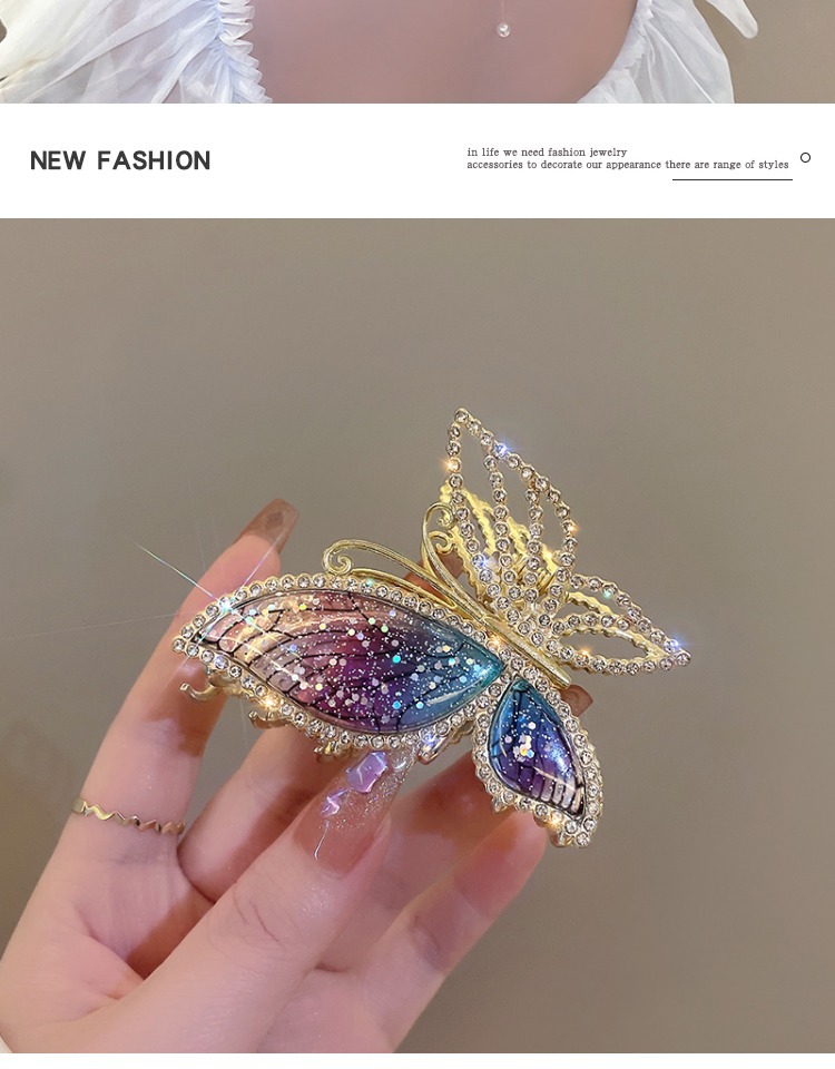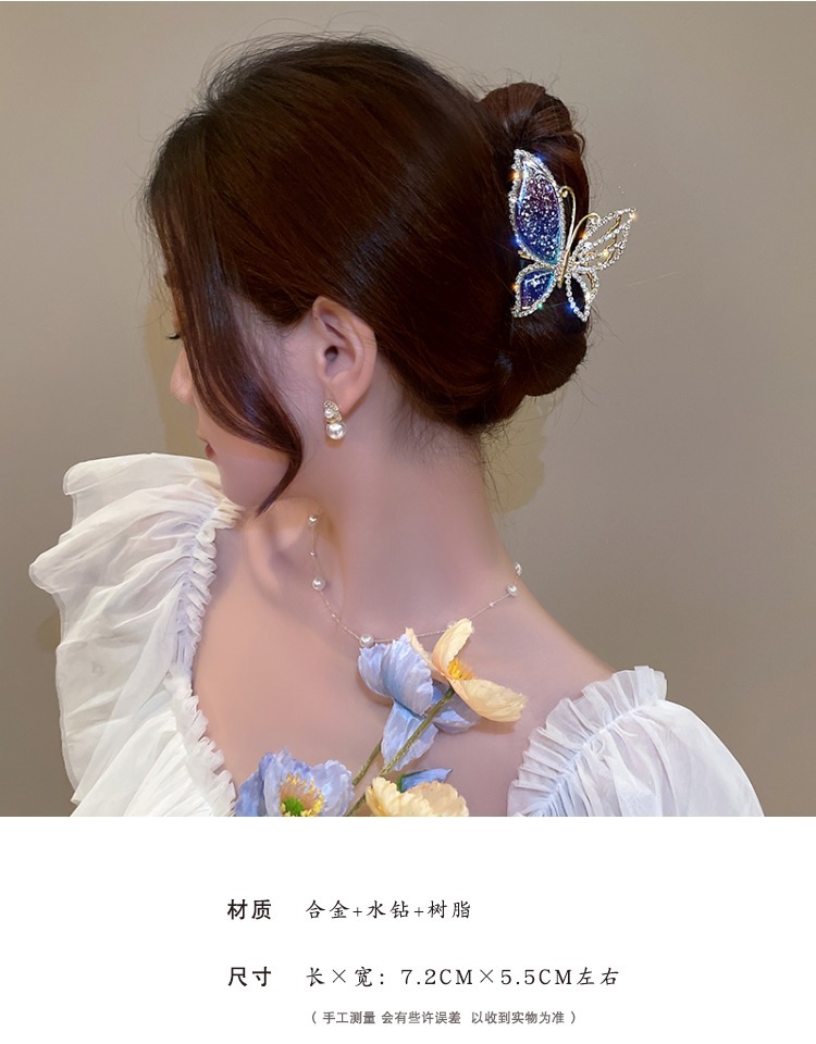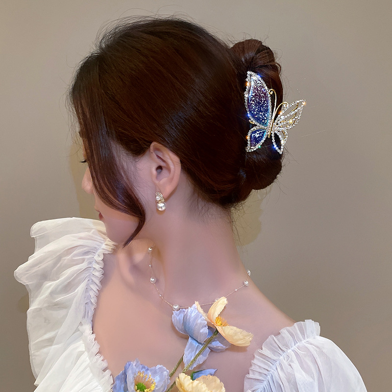 新款闪钻水晶蝴蝶公主头小抓夹女夏季高级感精致发夹后脑勺鲨鱼夹