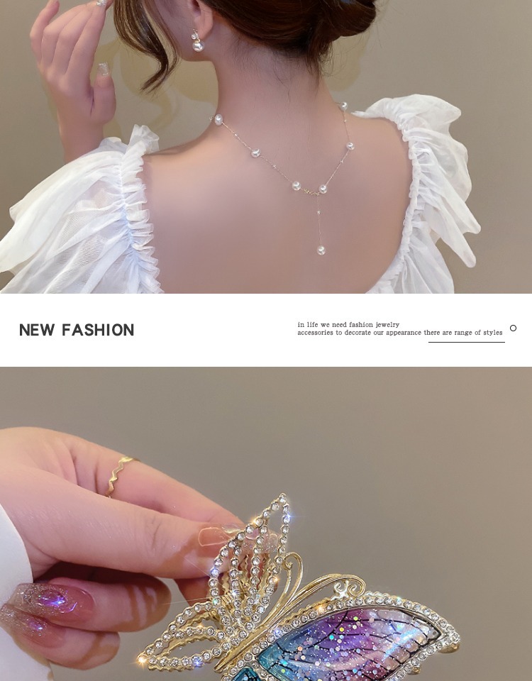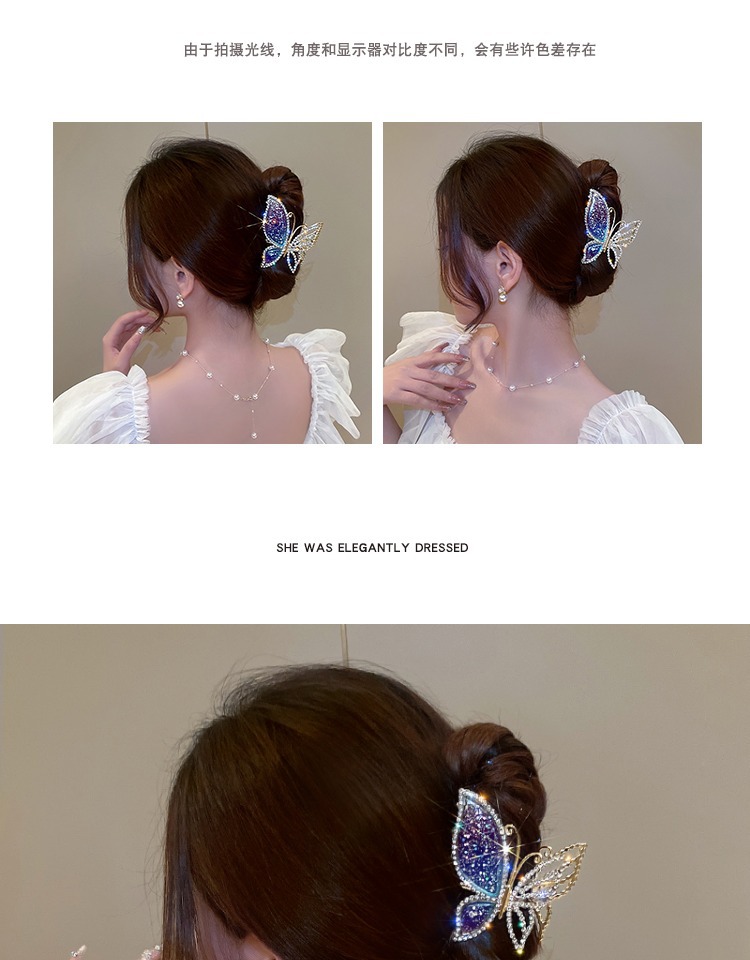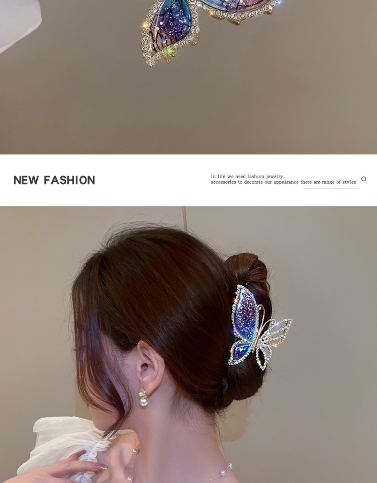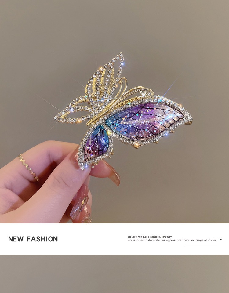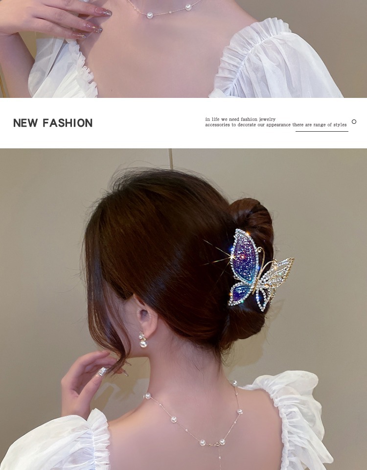 新款闪钻水晶蝴蝶公主头小抓夹女夏季高级感精致发夹后脑勺鲨鱼夹
