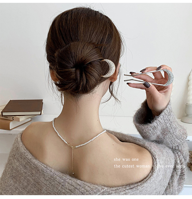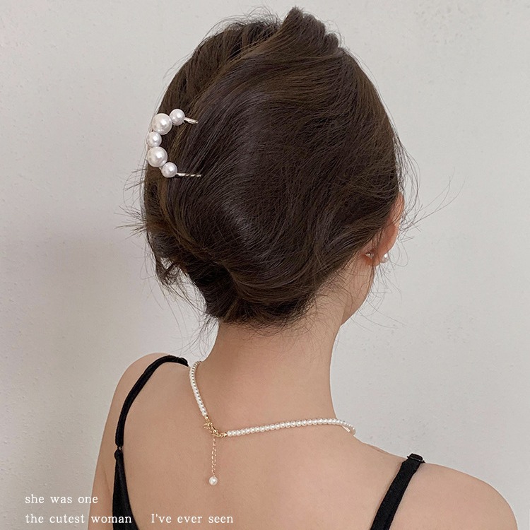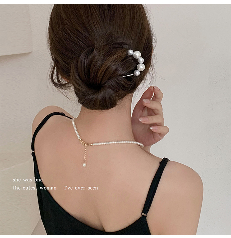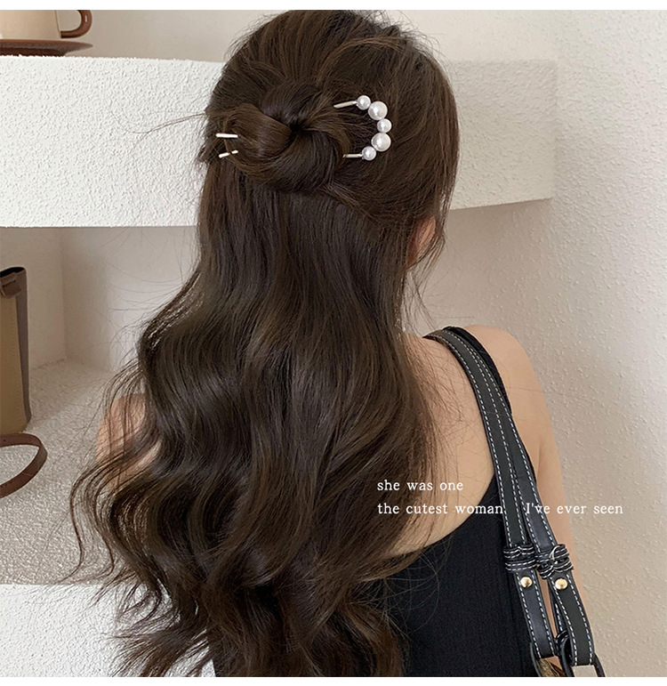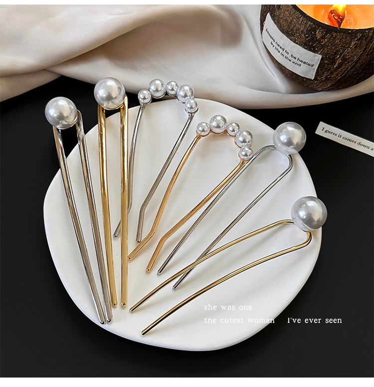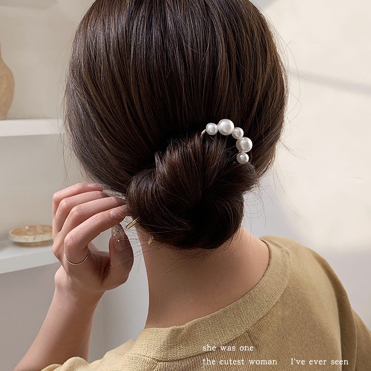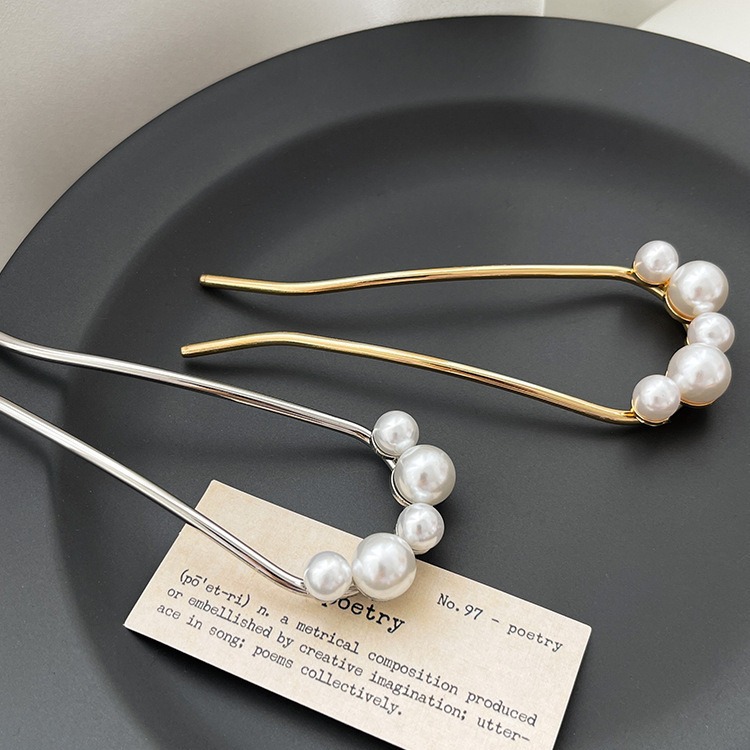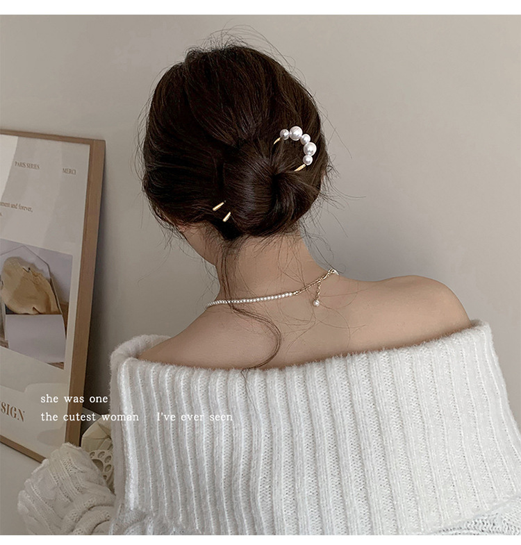 2025新款u型珍珠发簪低丸子头发夹盘发神器固定簪子高级感发钗女