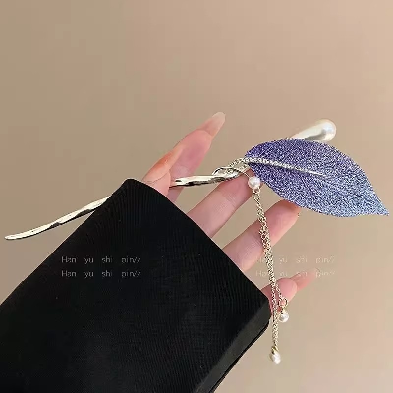 发簪紫色树叶金属发簪女高级感丸子头盘发簪子新中式现代发钗头饰