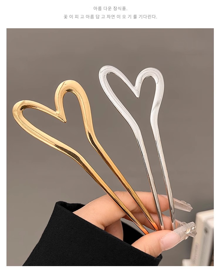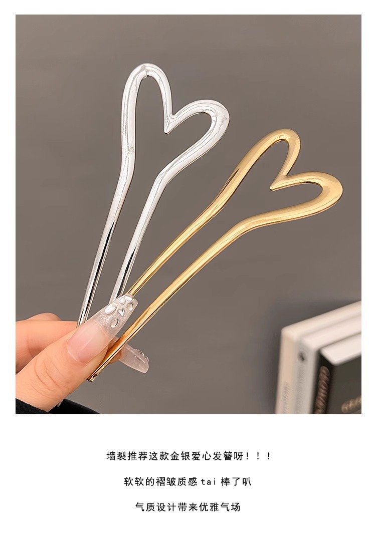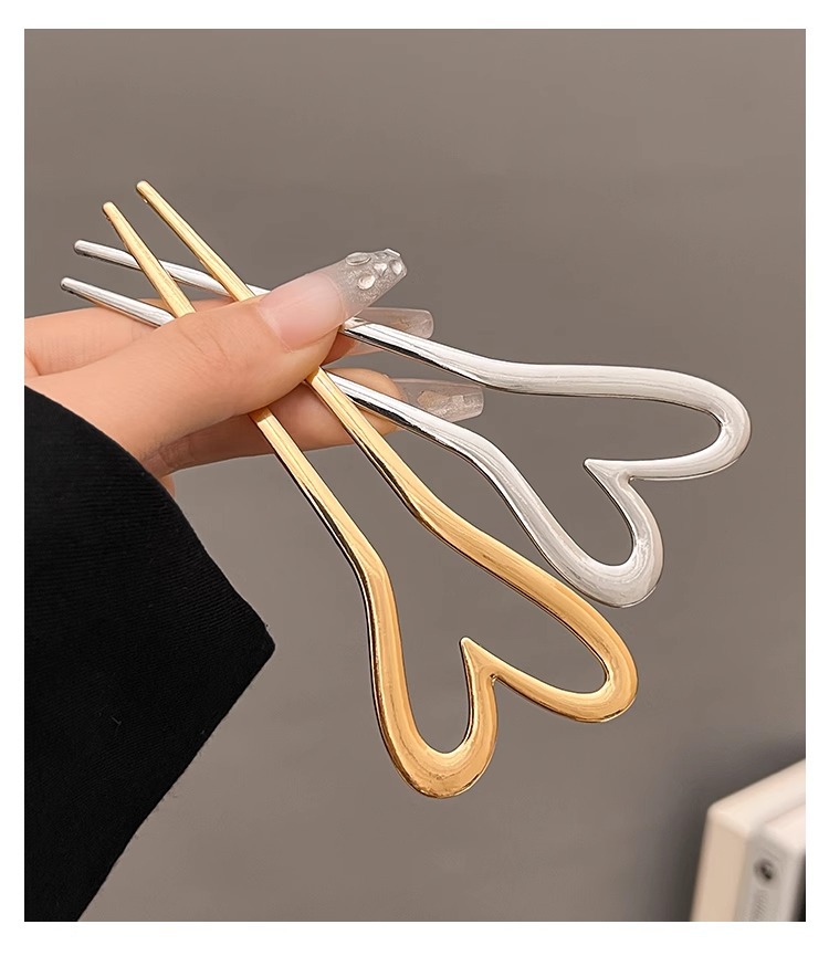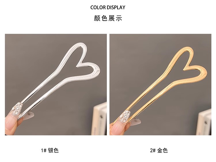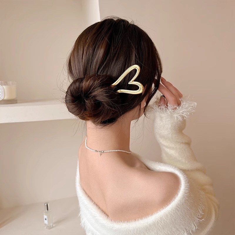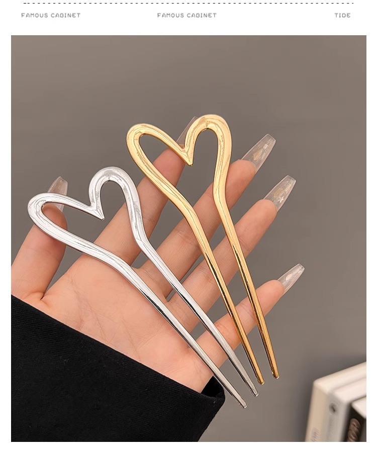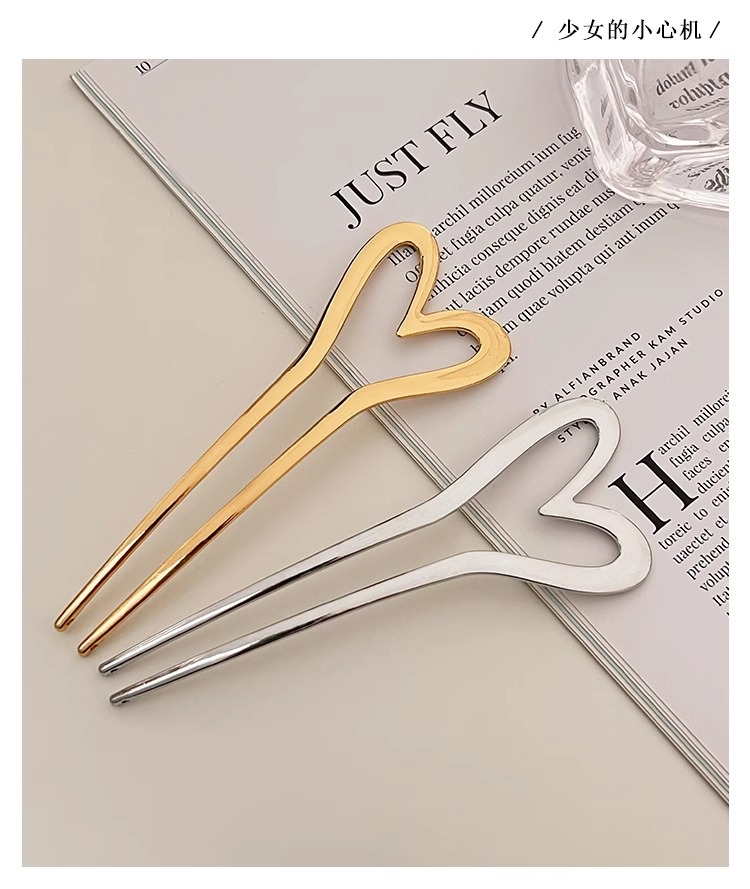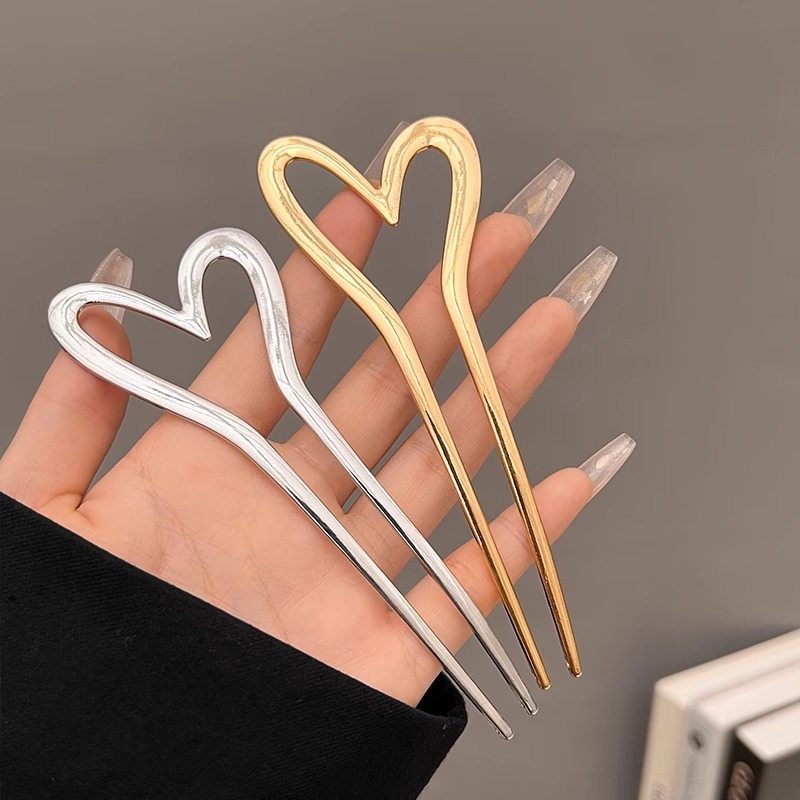 金属爱心u型发簪女简约现代气质盘丸子头簪子旗袍发钗后脑勺头饰
