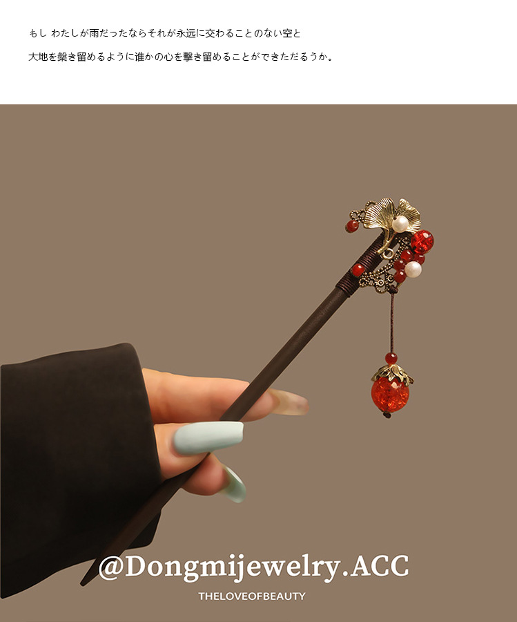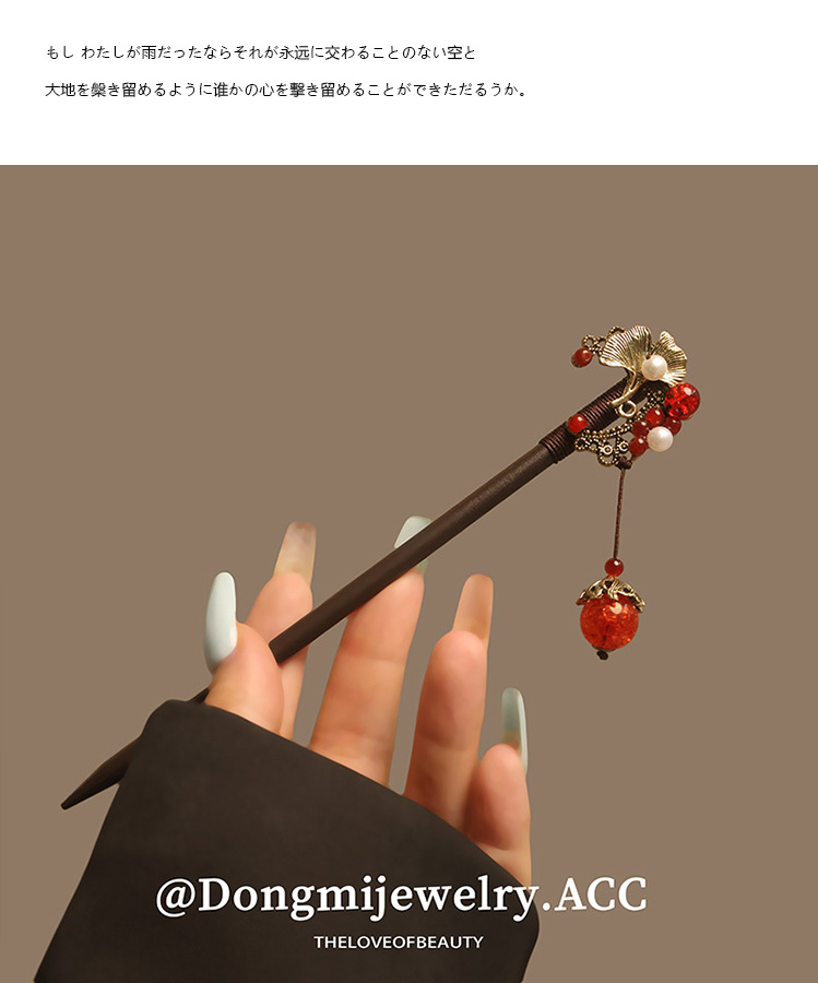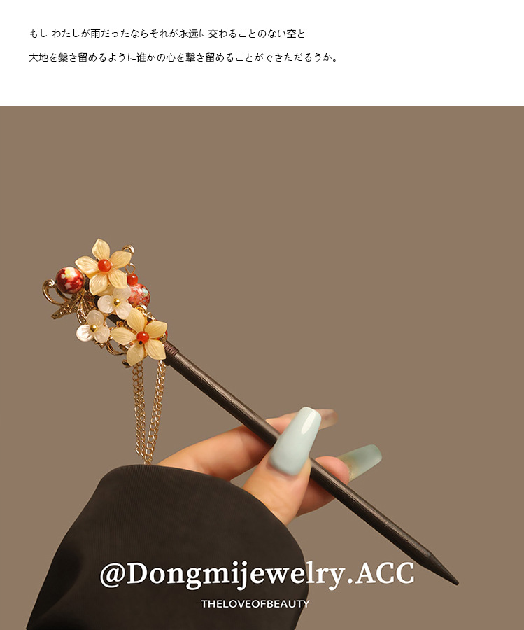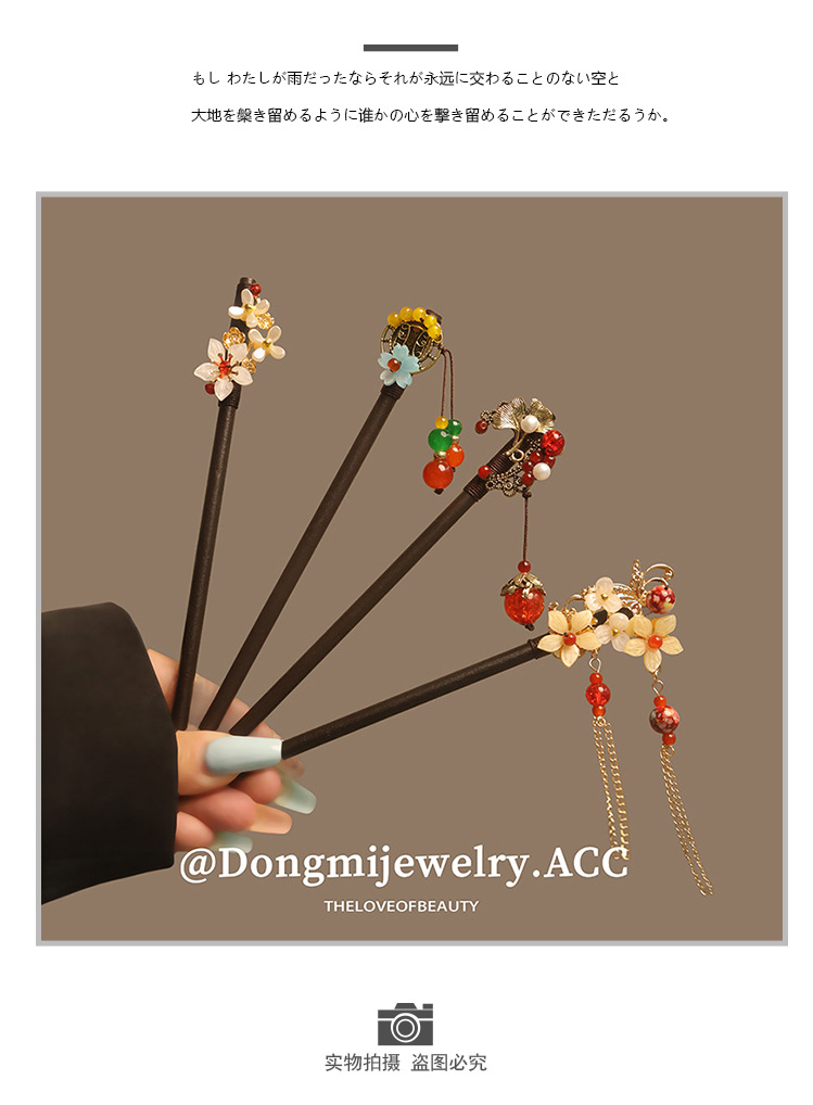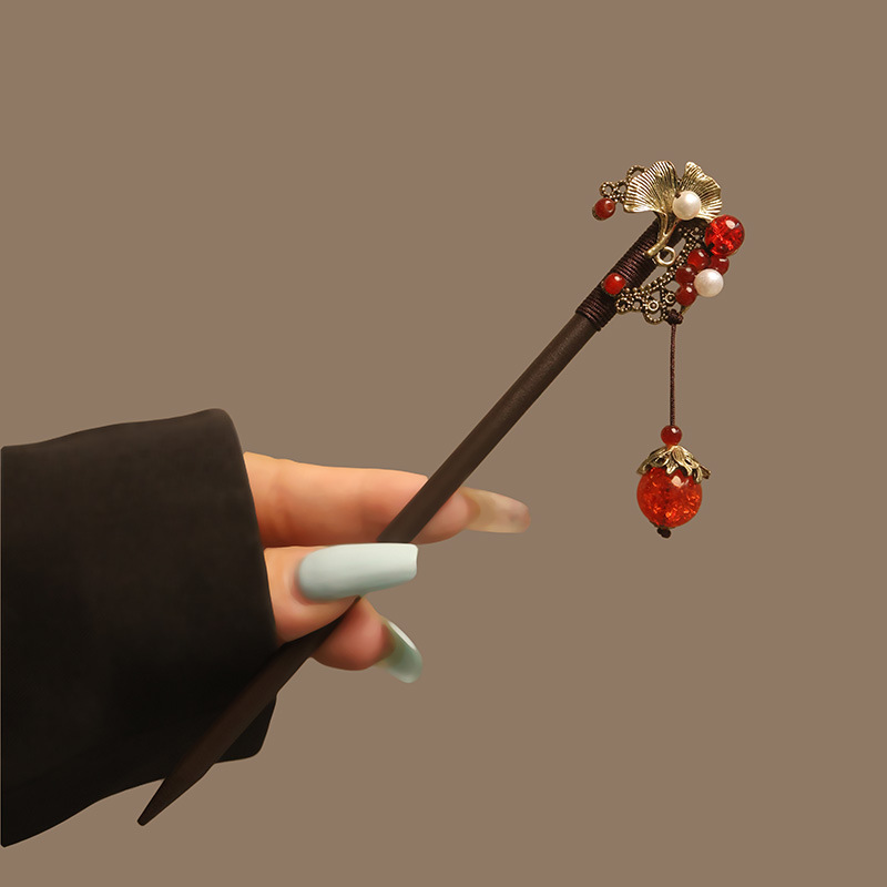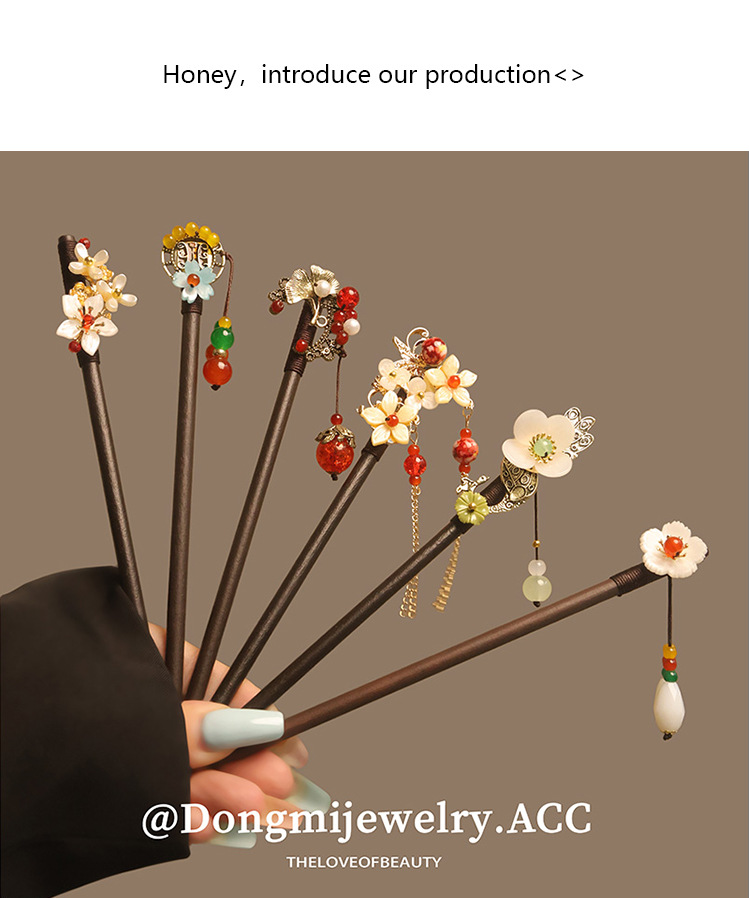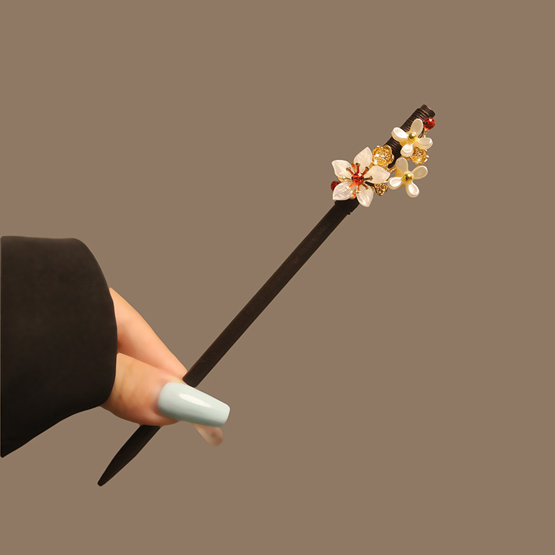 宫廷风木簪黑檀木发簪古风汉服花朵复古流苏步摇簪子古装丸子盘发
