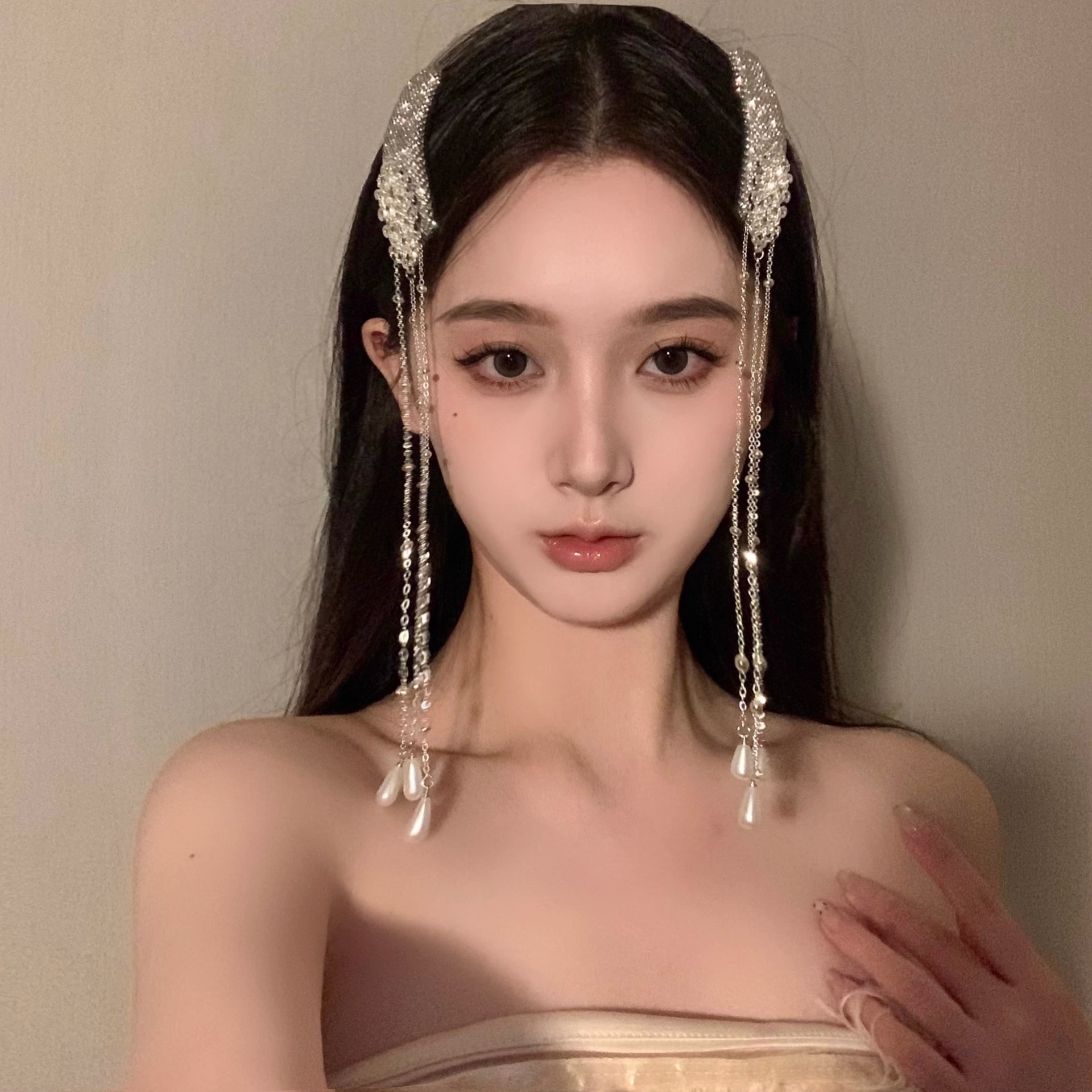 轻奢珍珠瀑布流苏发夹新中式小众民族风头饰装扮侧边刘海夹发卡女