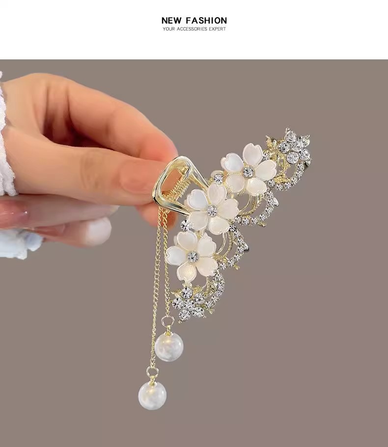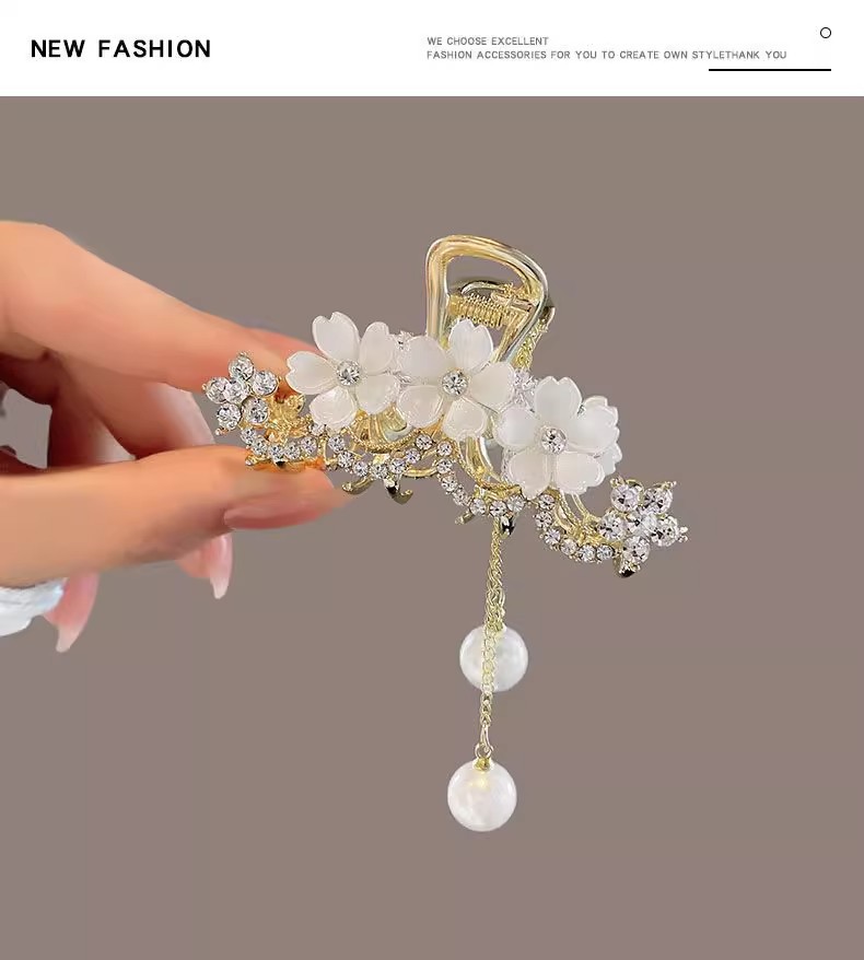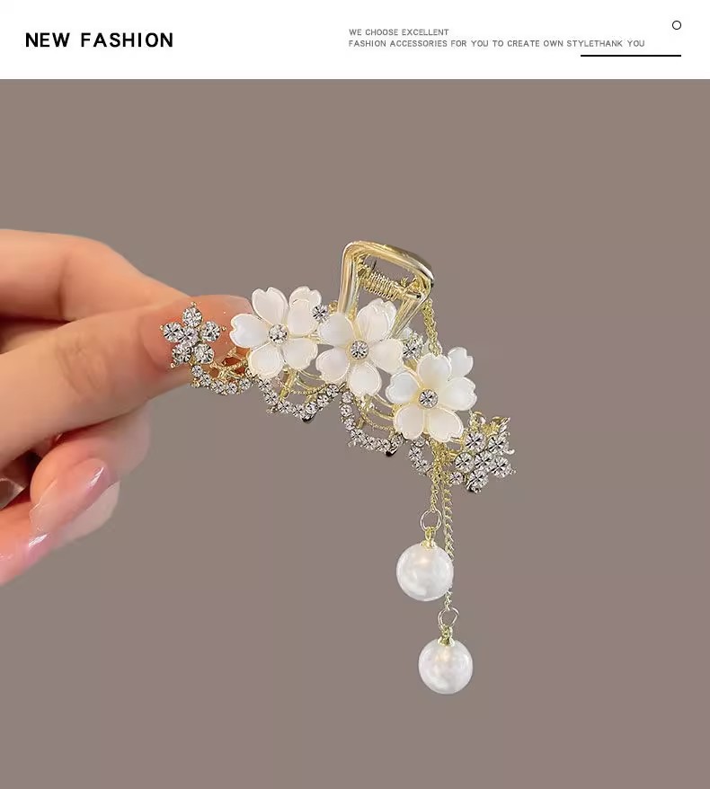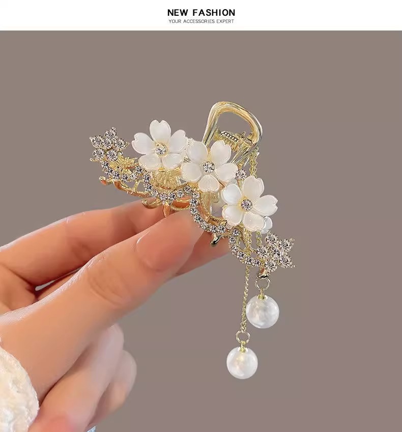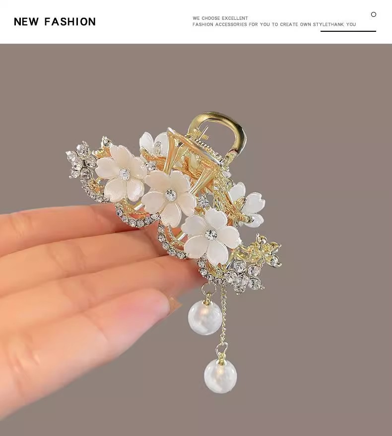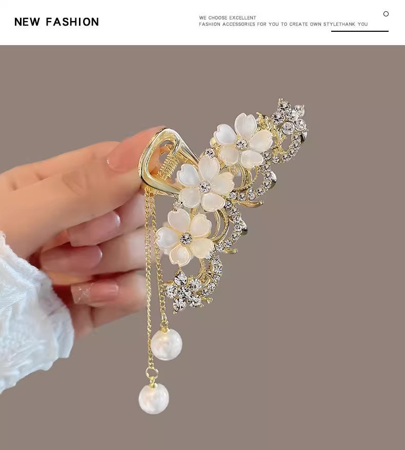 花朵发夹女后脑勺鲨鱼夹子马尾小抓夹半扎发高级感2025新款头发饰