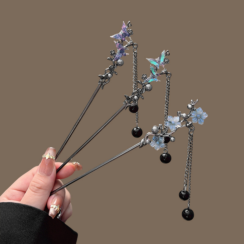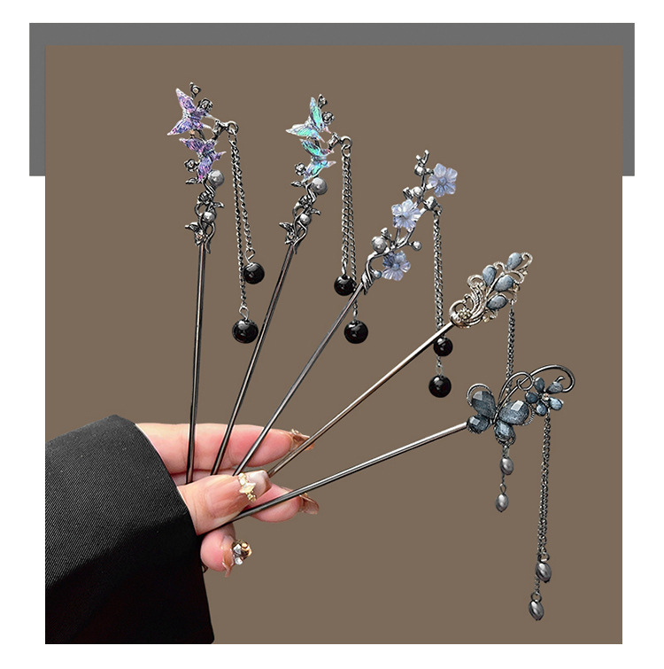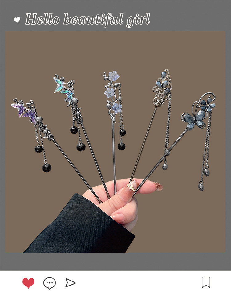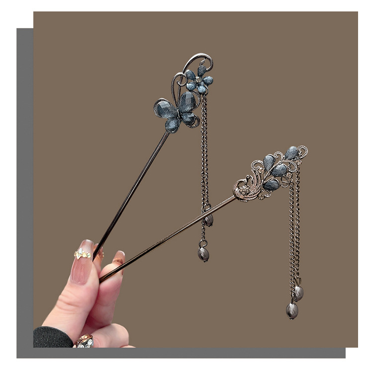 新中式古风流苏花朵发簪女2025新款发钗簪子汉服旗袍配饰发卡头饰