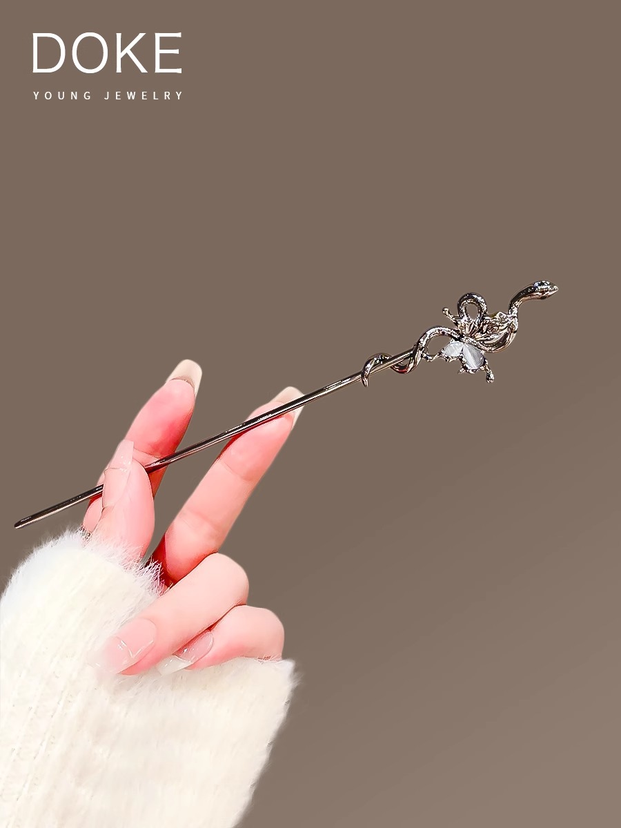 蛇形玫瑰花发簪女小众高级感后脑勺盘发簪子现代简约时尚发钗头饰
