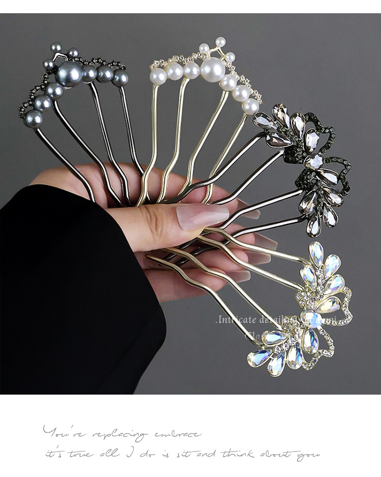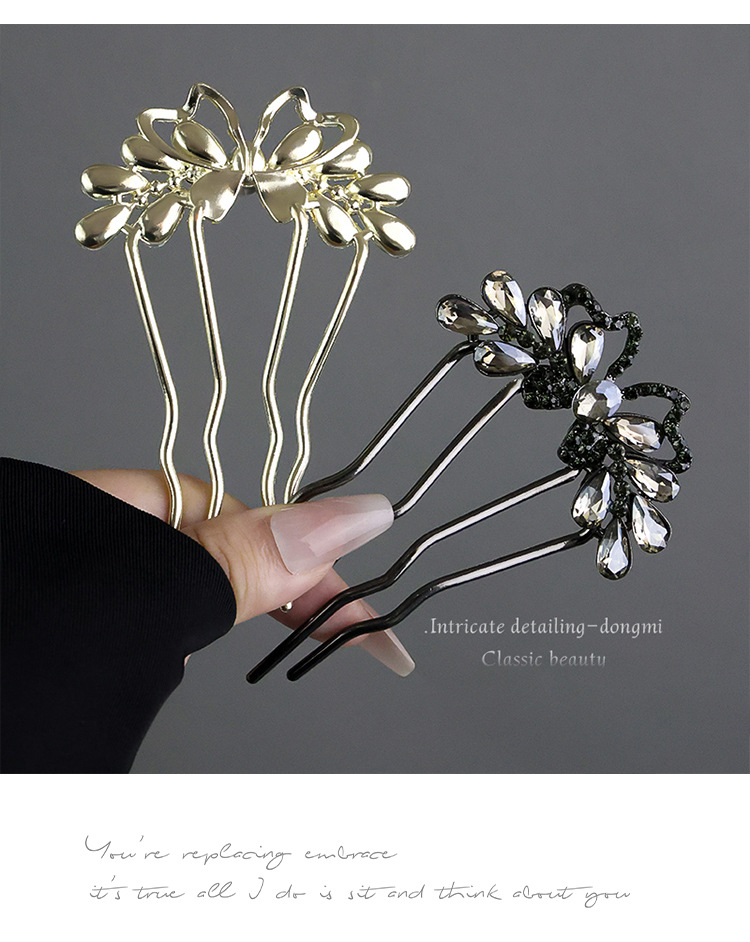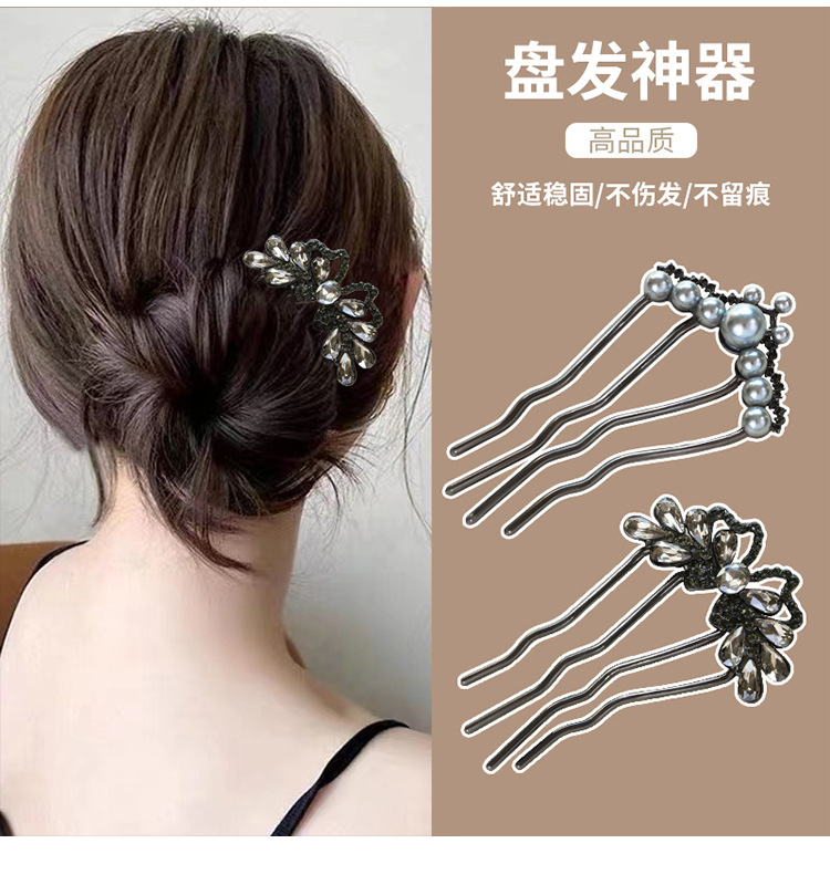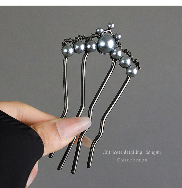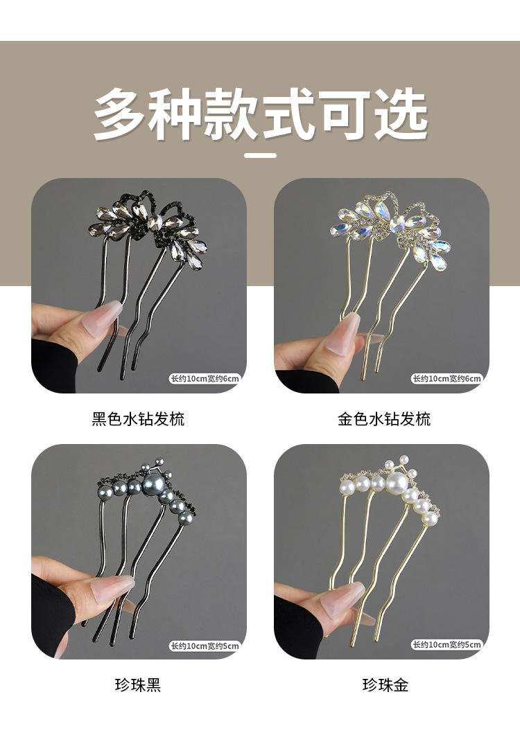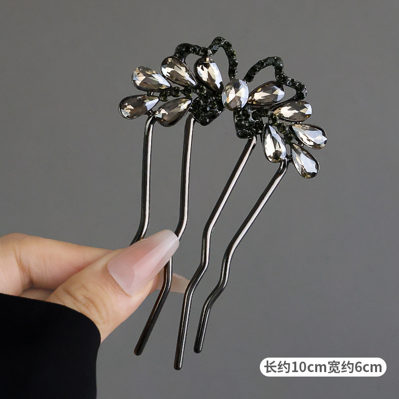 高级感枪黑花朵发簪新中式簪子女古风盘发气质发钗发梳日常簪子女