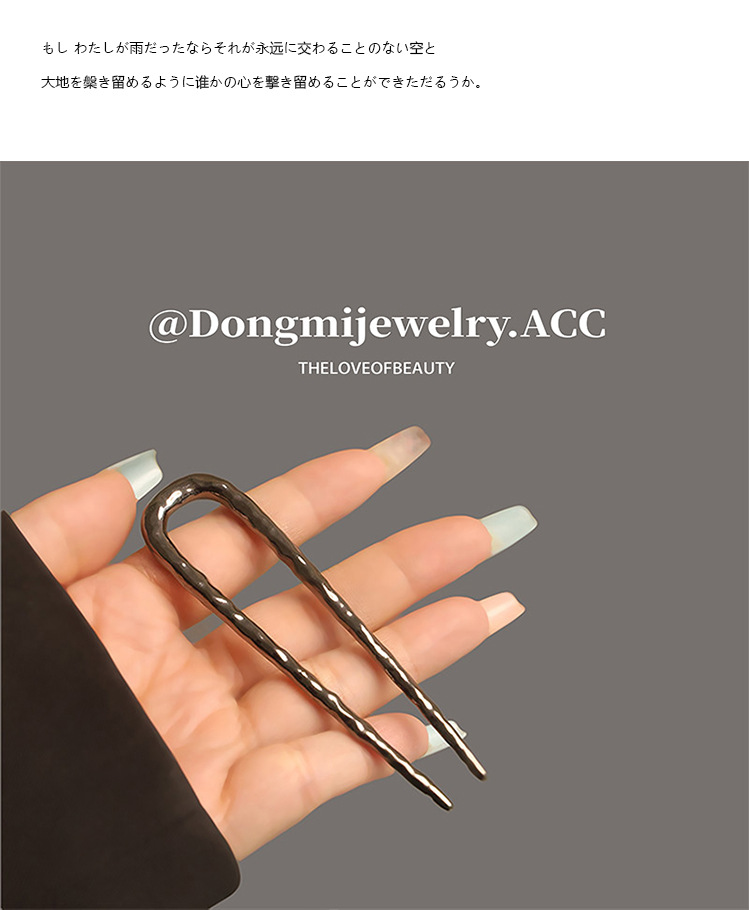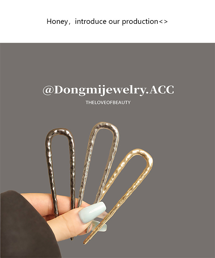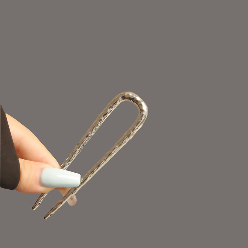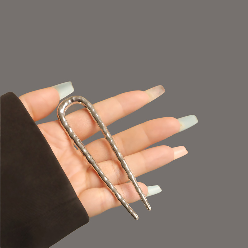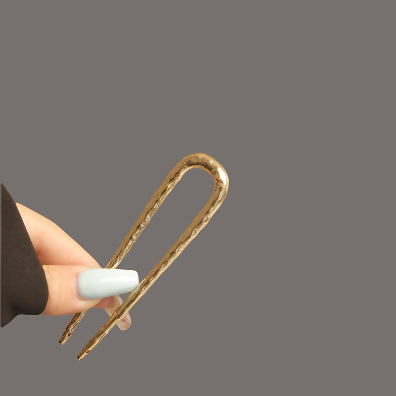 高级感合金u型锤纹发簪子欧美轻奢后脑勺盘发丸子头褶皱发钗发饰