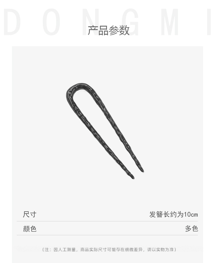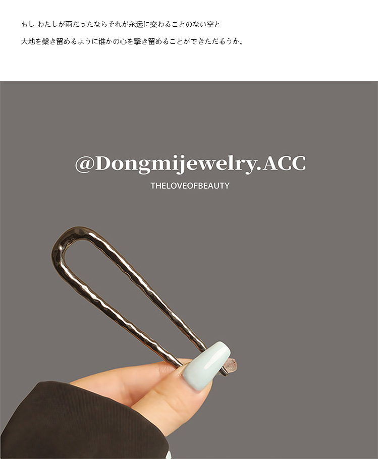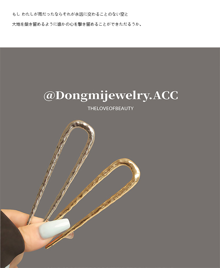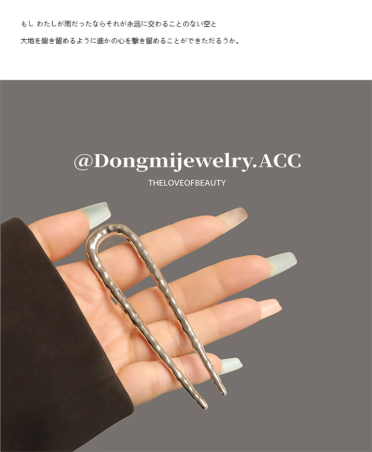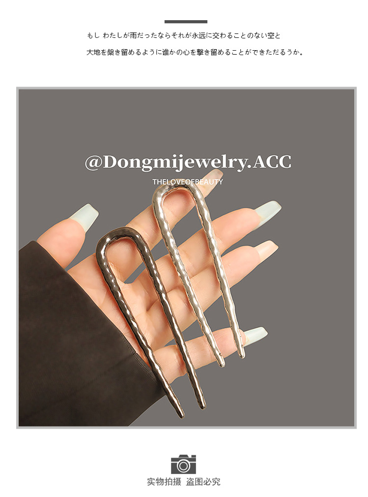 高级感合金u型锤纹发簪子欧美轻奢后脑勺盘发丸子头褶皱发钗发饰