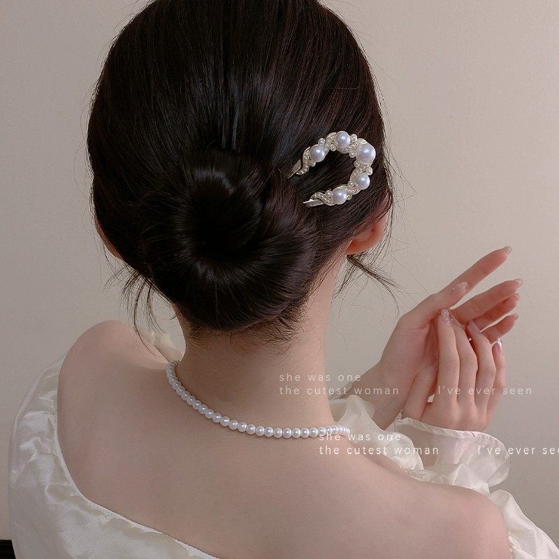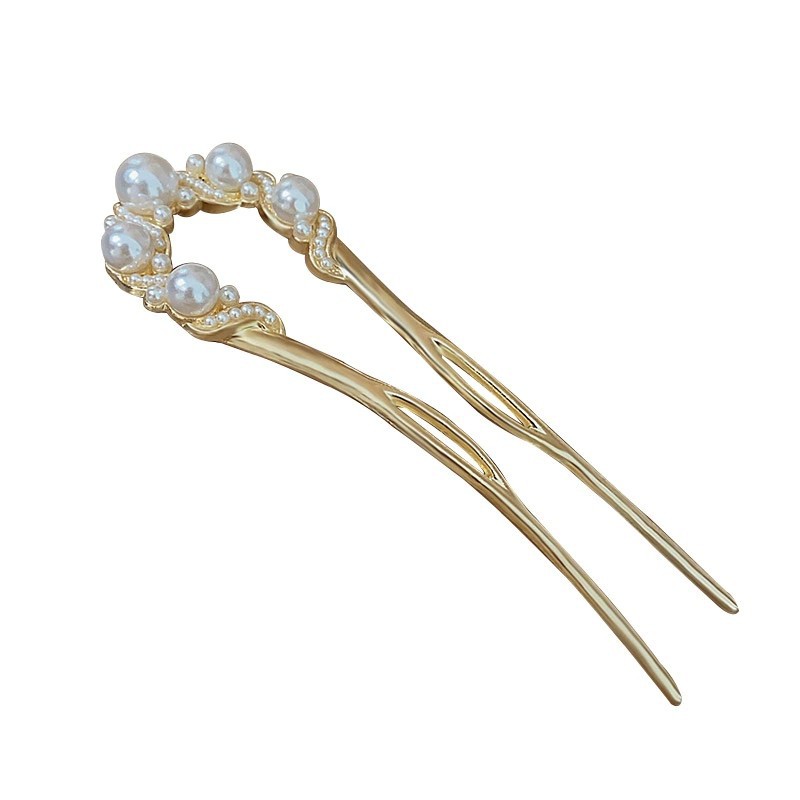 珍珠U型发簪女高级感国风步摇新中式发钗簪子发张马面裙配饰头饰