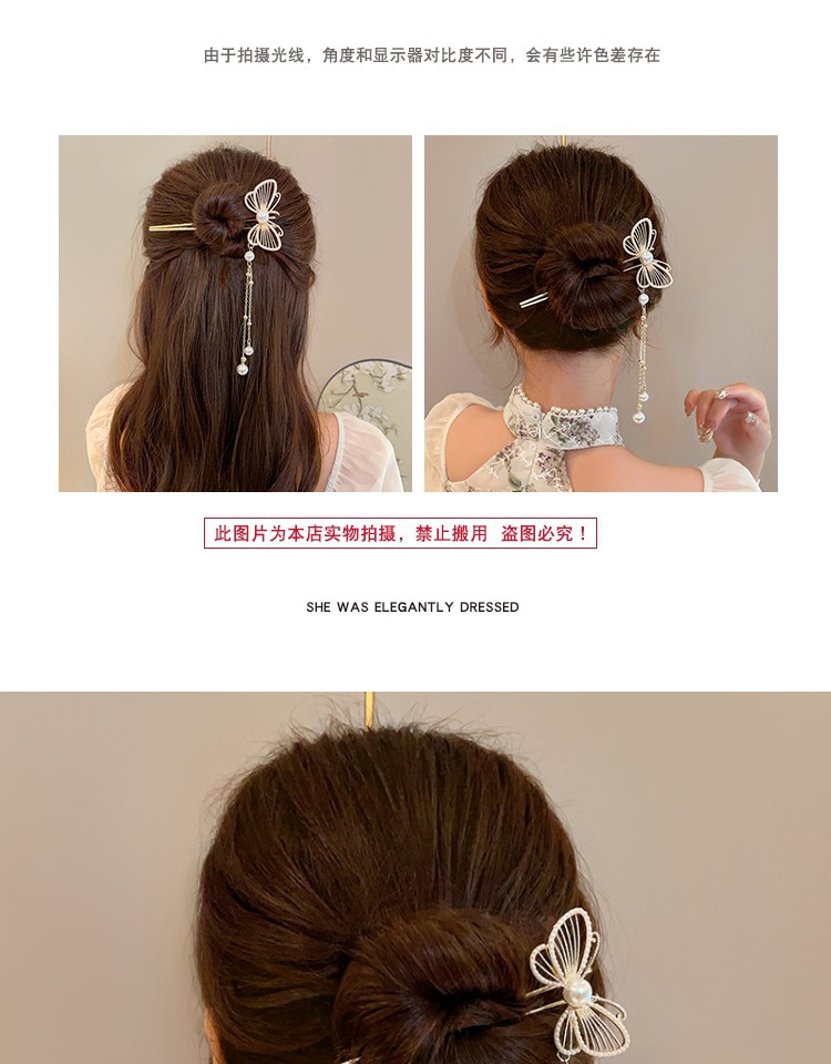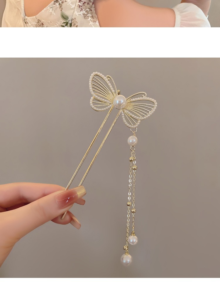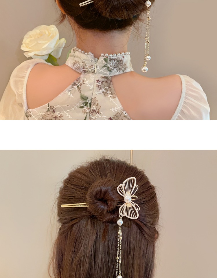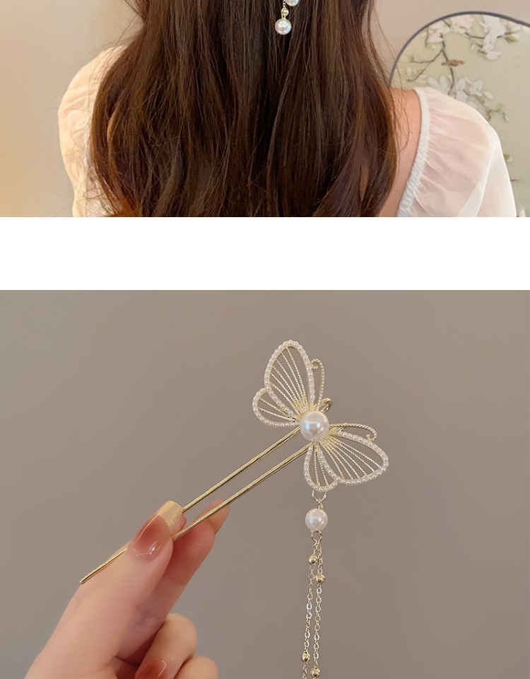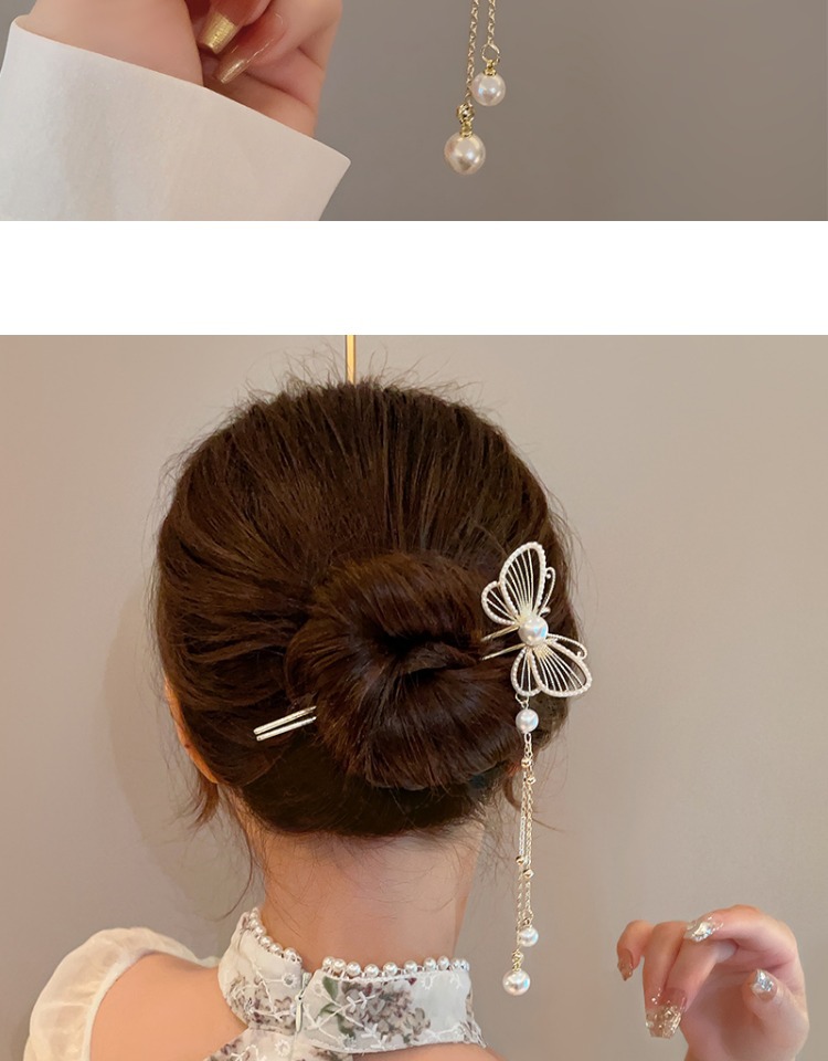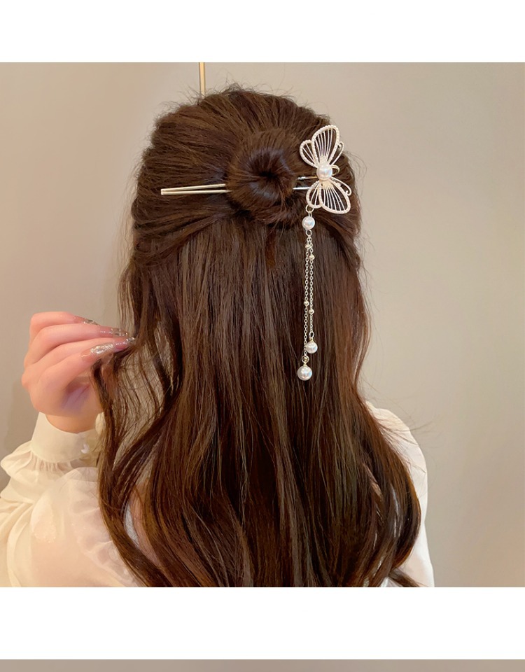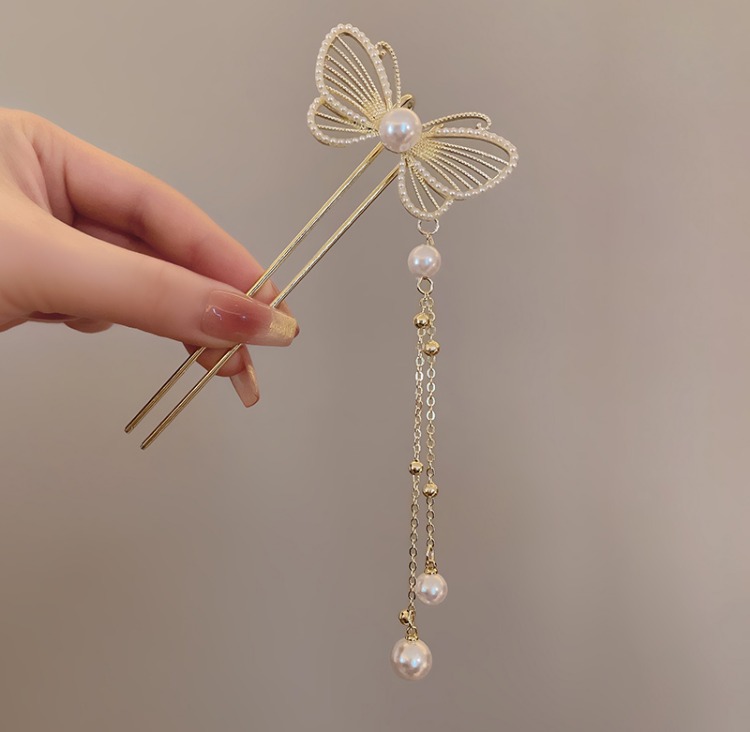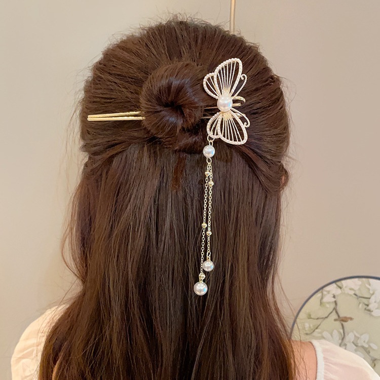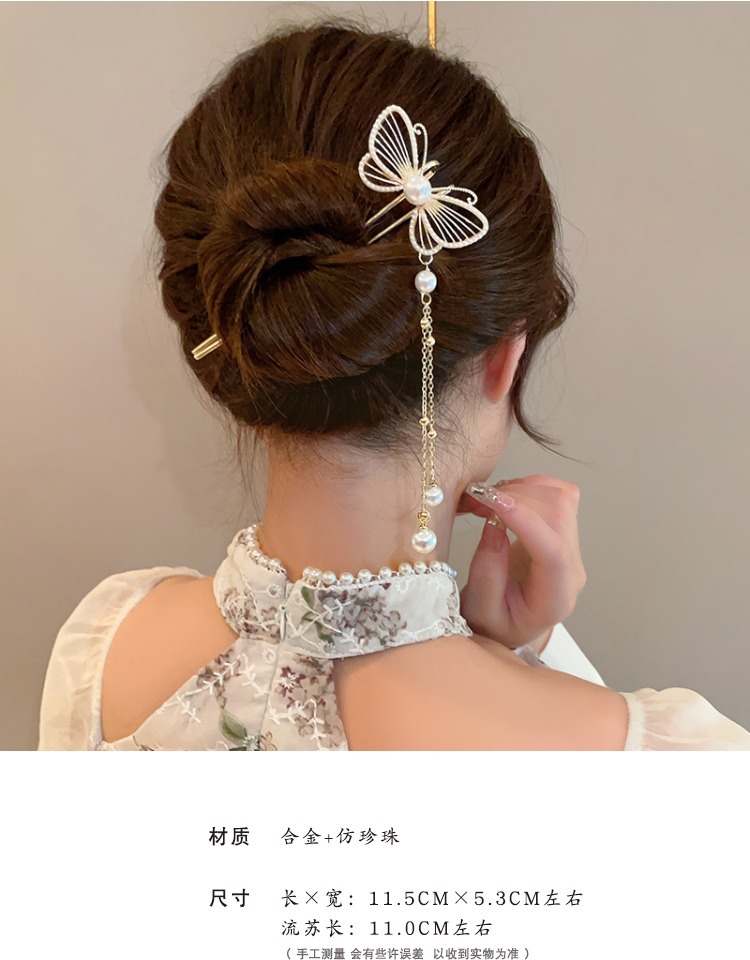 珍珠蝴蝶发簪古风发夹女高级感发钗优雅发卡后脑勺盘发器头饰发饰