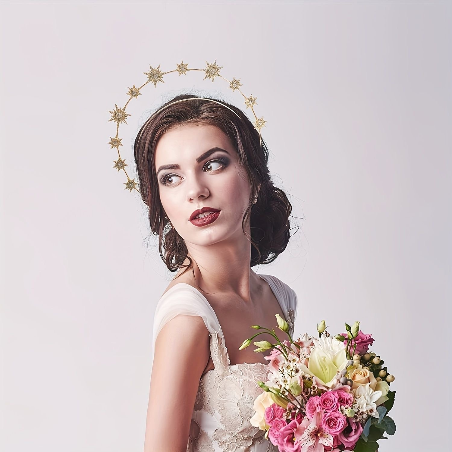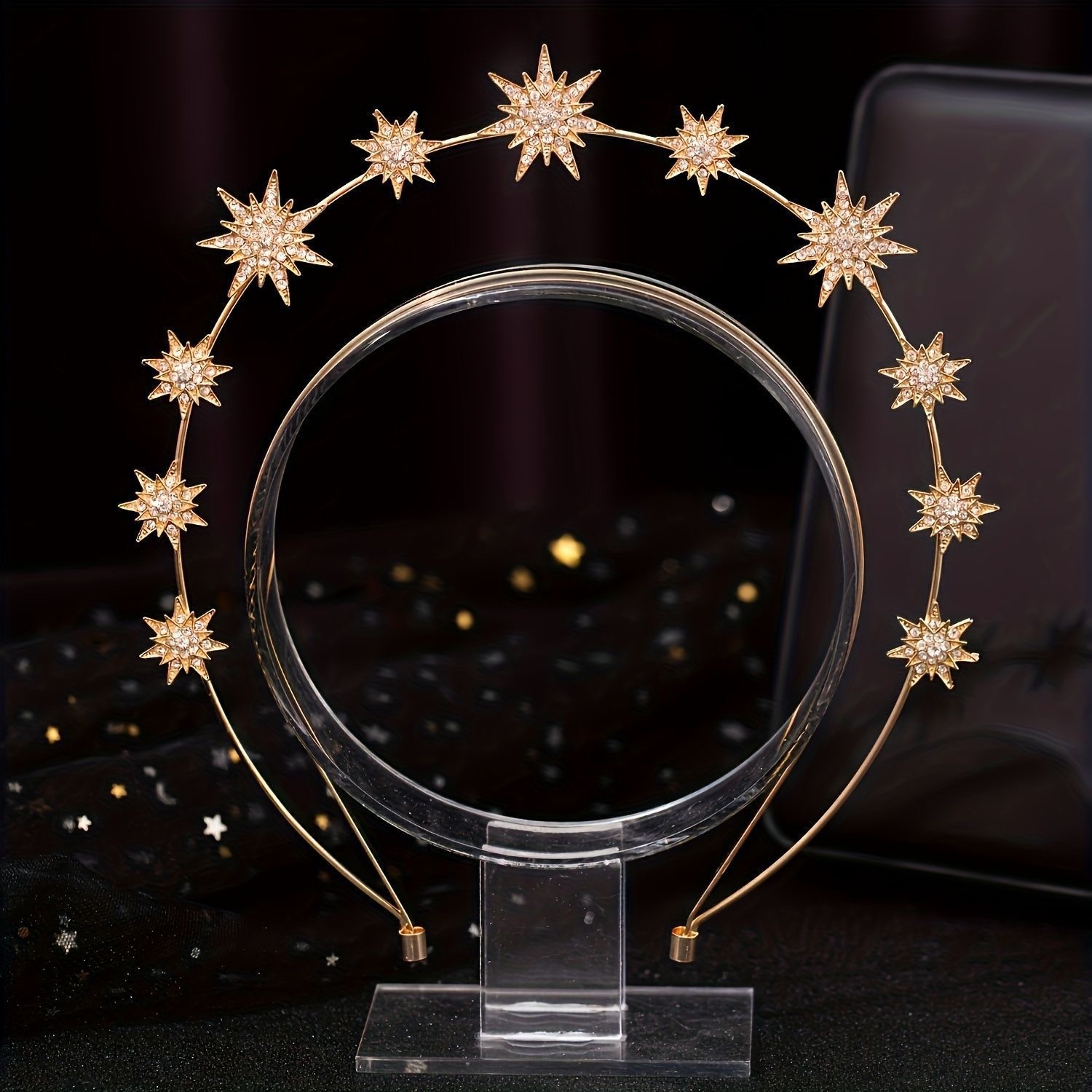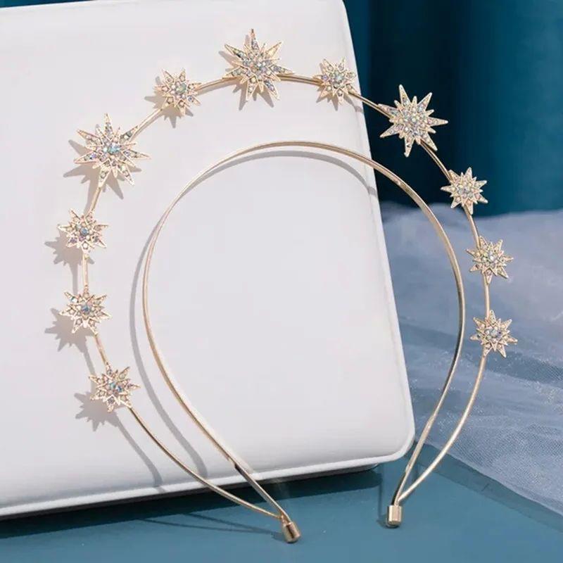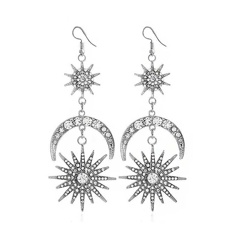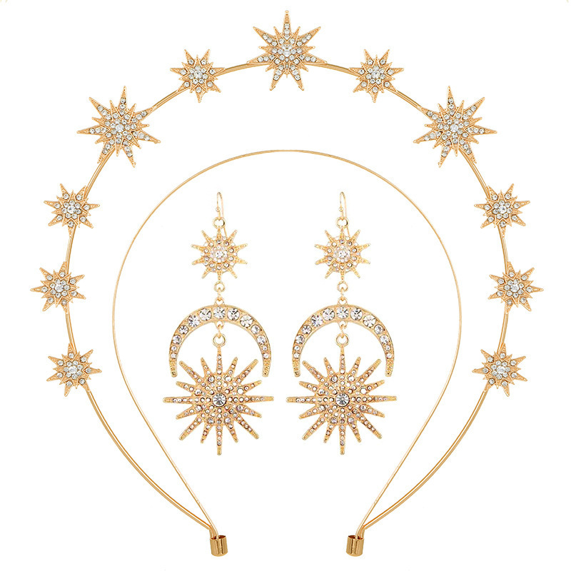 跨境欧美个性巴洛克风太阳月亮耳环双层六芒星发箍组合镶钻闪亮亮