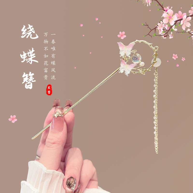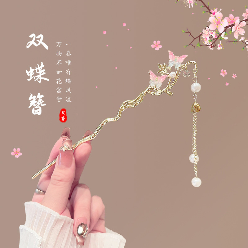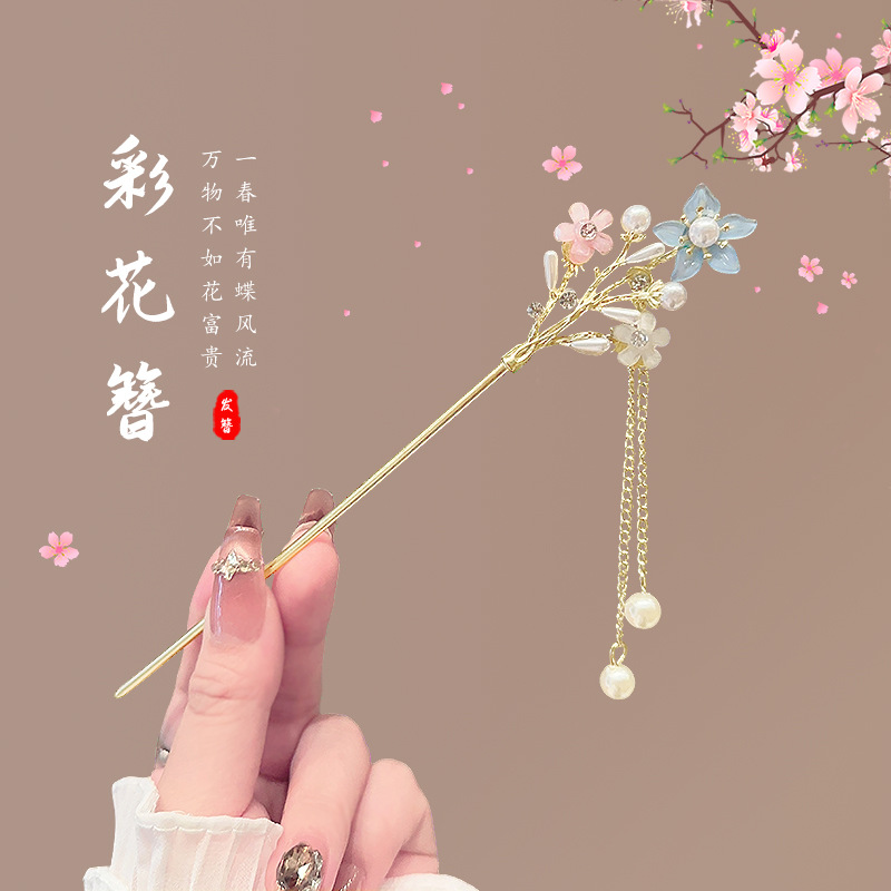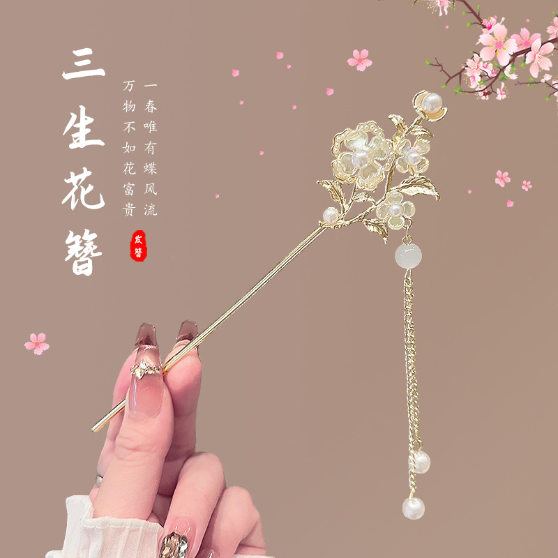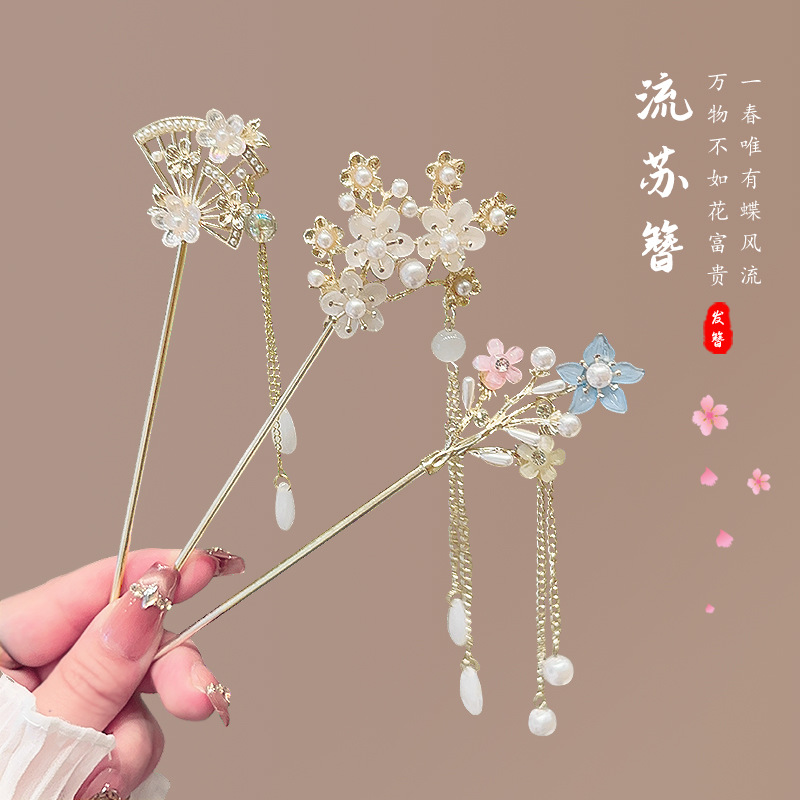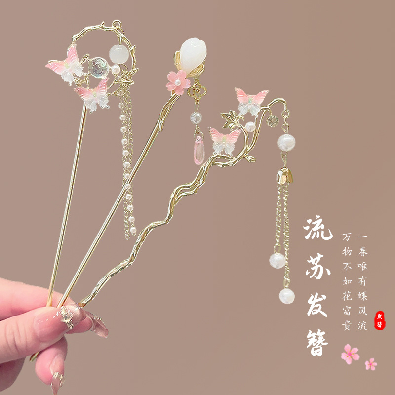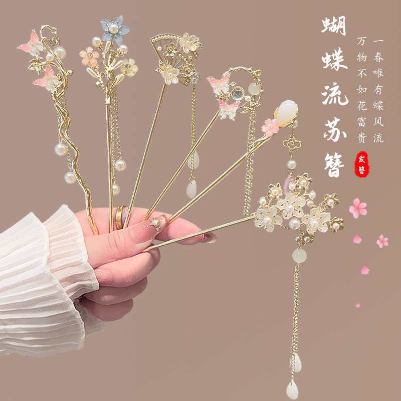 新款古风流苏感发簪女新中式盘发步摇簪子现代旗袍发张发钗子头饰