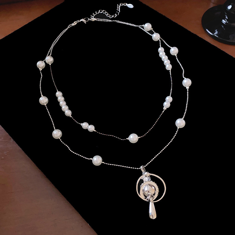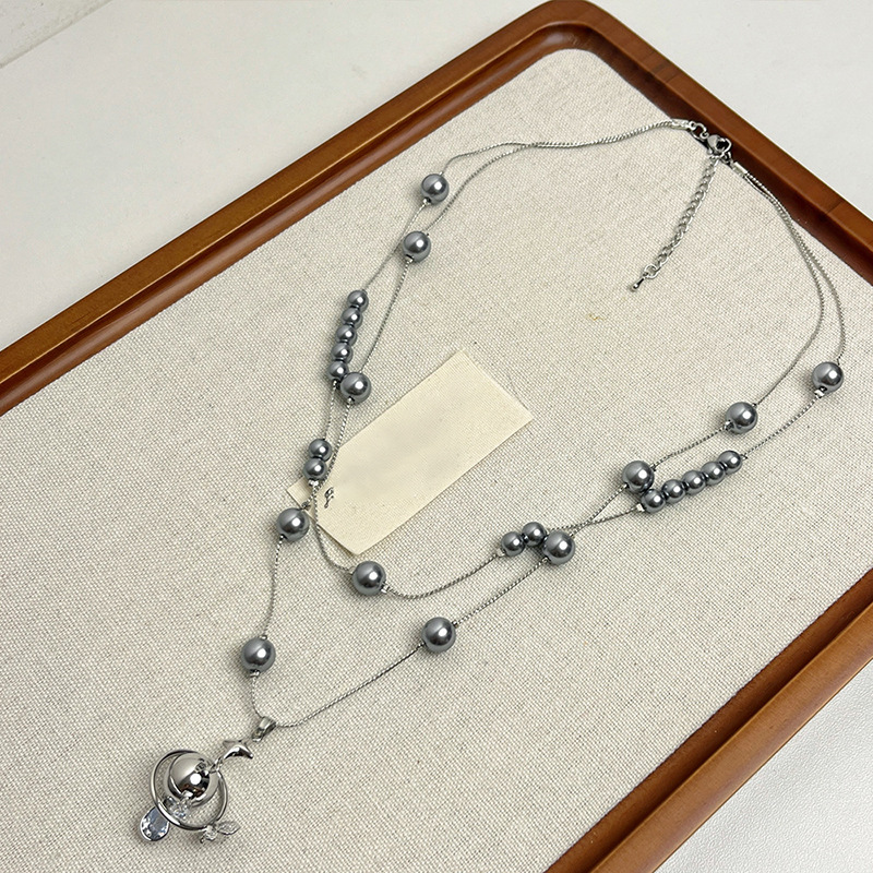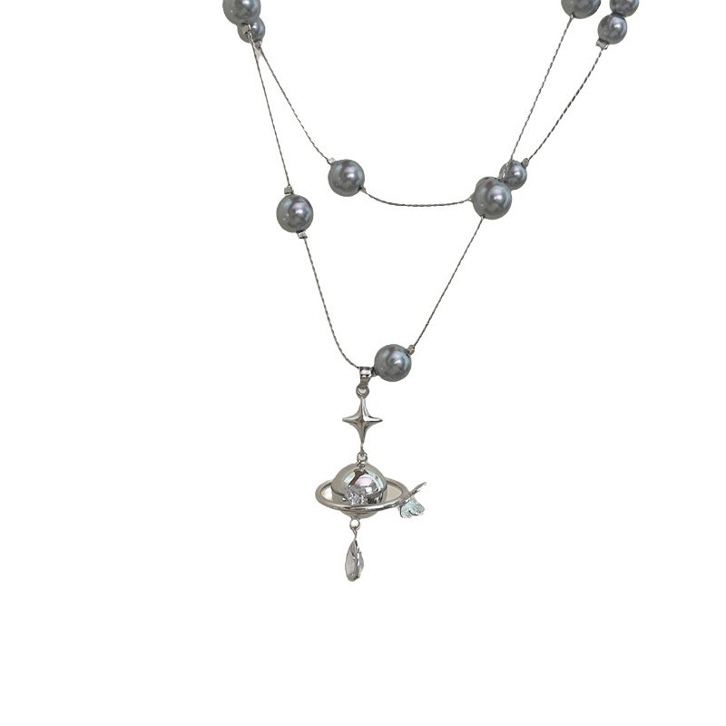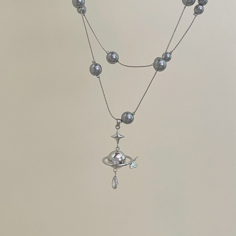 镶钻土星珍珠吊坠项链法式轻奢气质锁骨链小众时尚高级感饰品批发