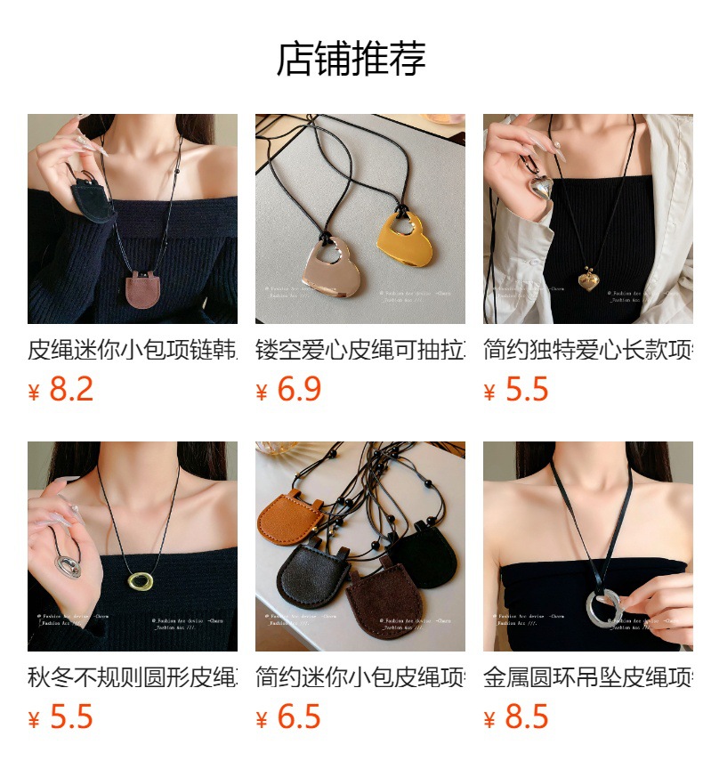 简约几何树脂渲染皮绳项链秋冬复古高级感毛衣链时尚潮流饰品批发