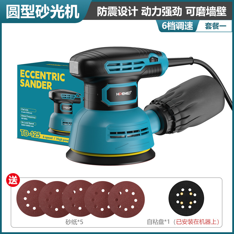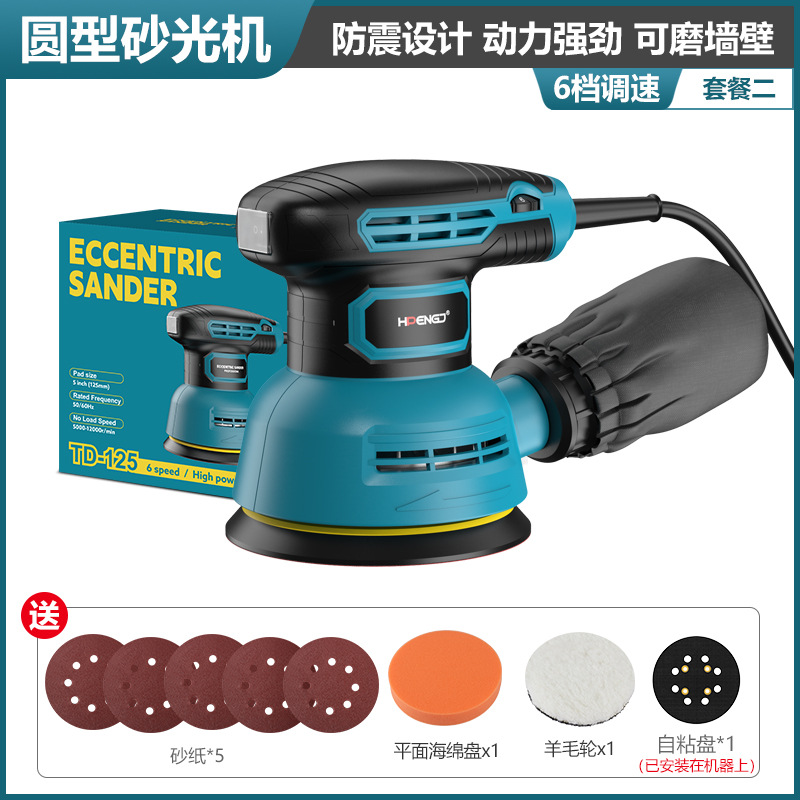 5寸125圆盘砂纸机6档调速打磨机偏心油漆抛光机木工电动木材家具